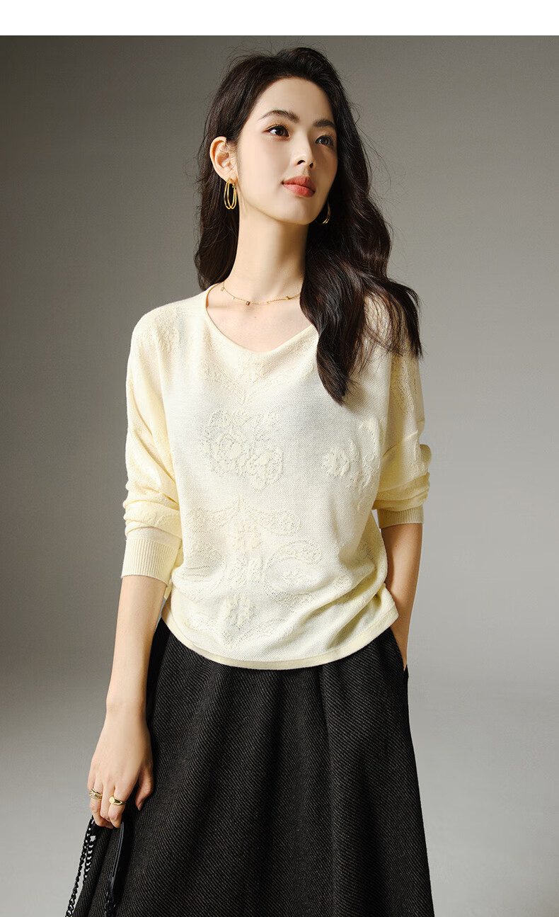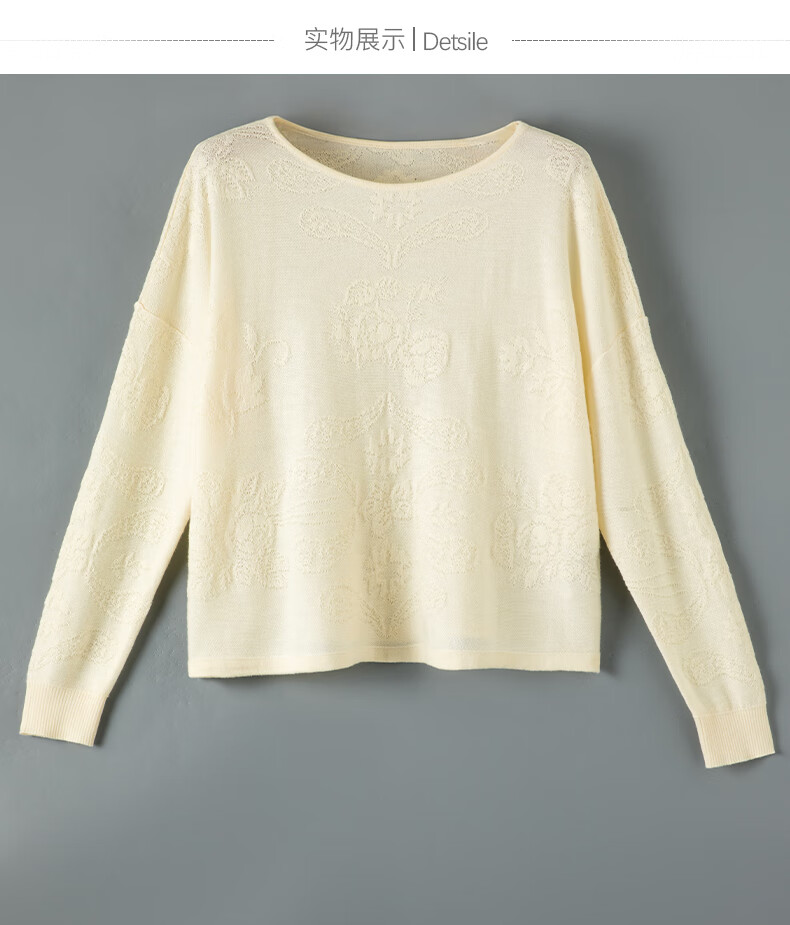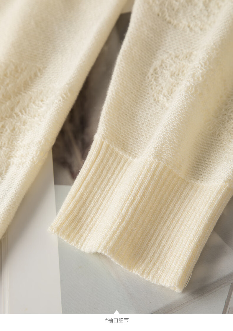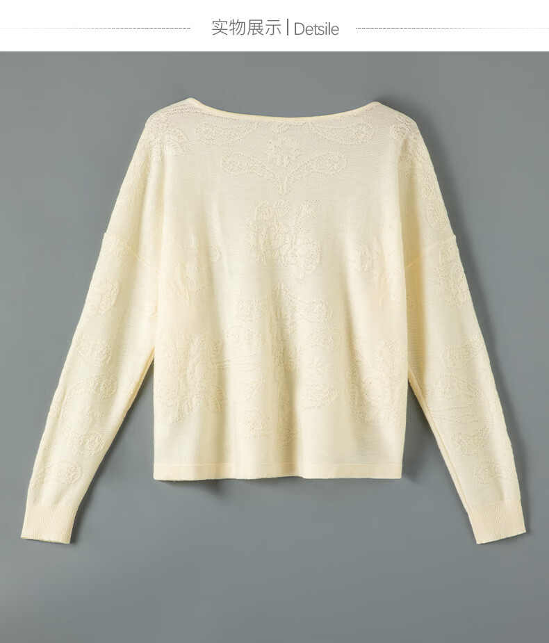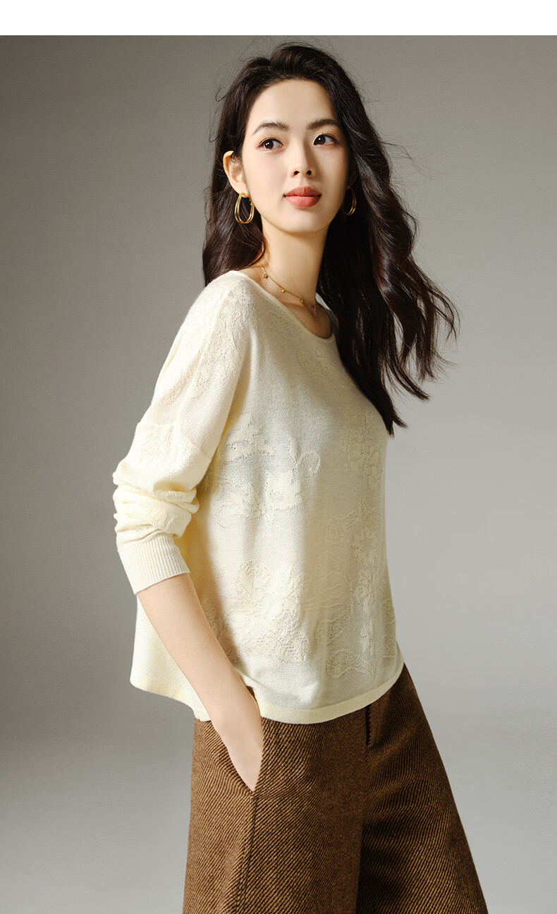 晚白【新品】含绵羊毛百搭针织衫女2026春季气质弹力修身显瘦上衣 米杏色 M