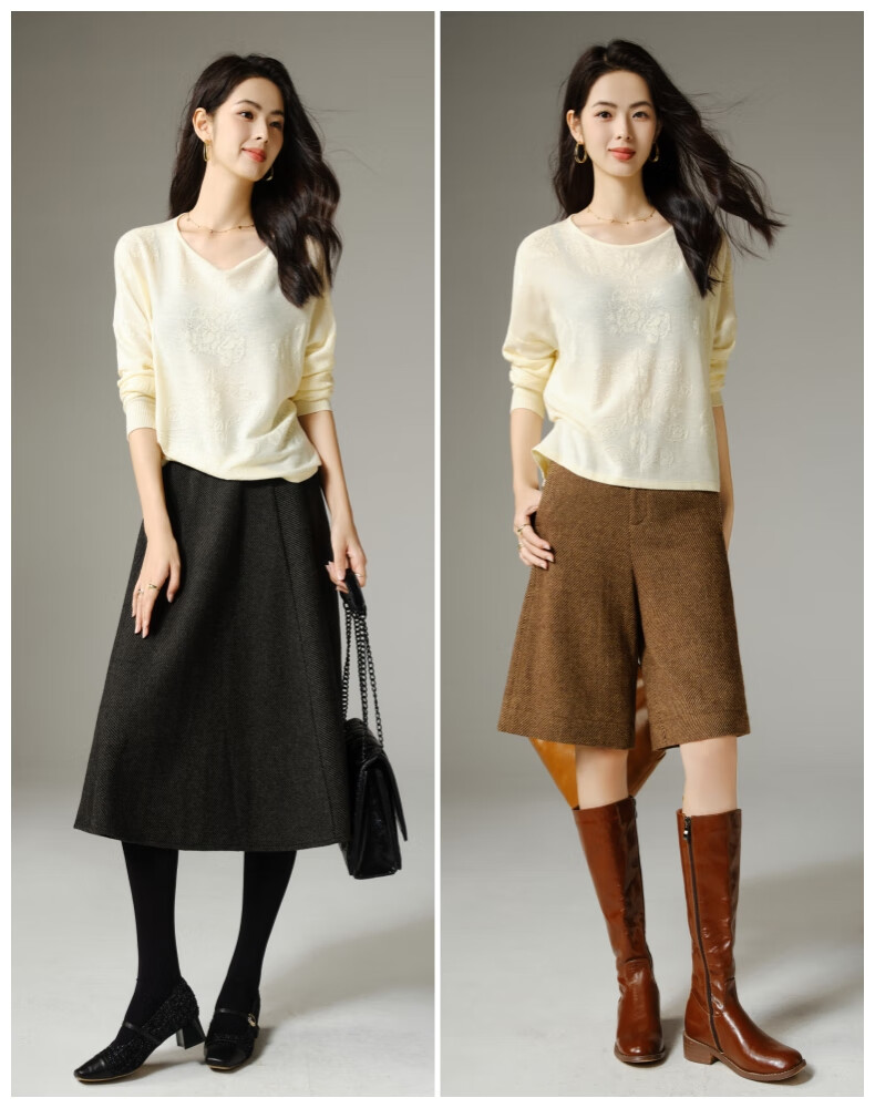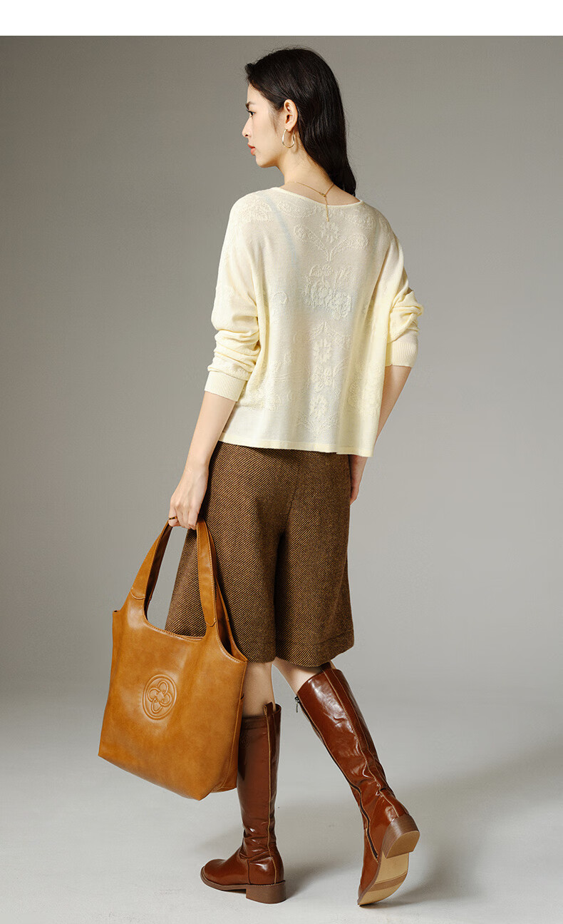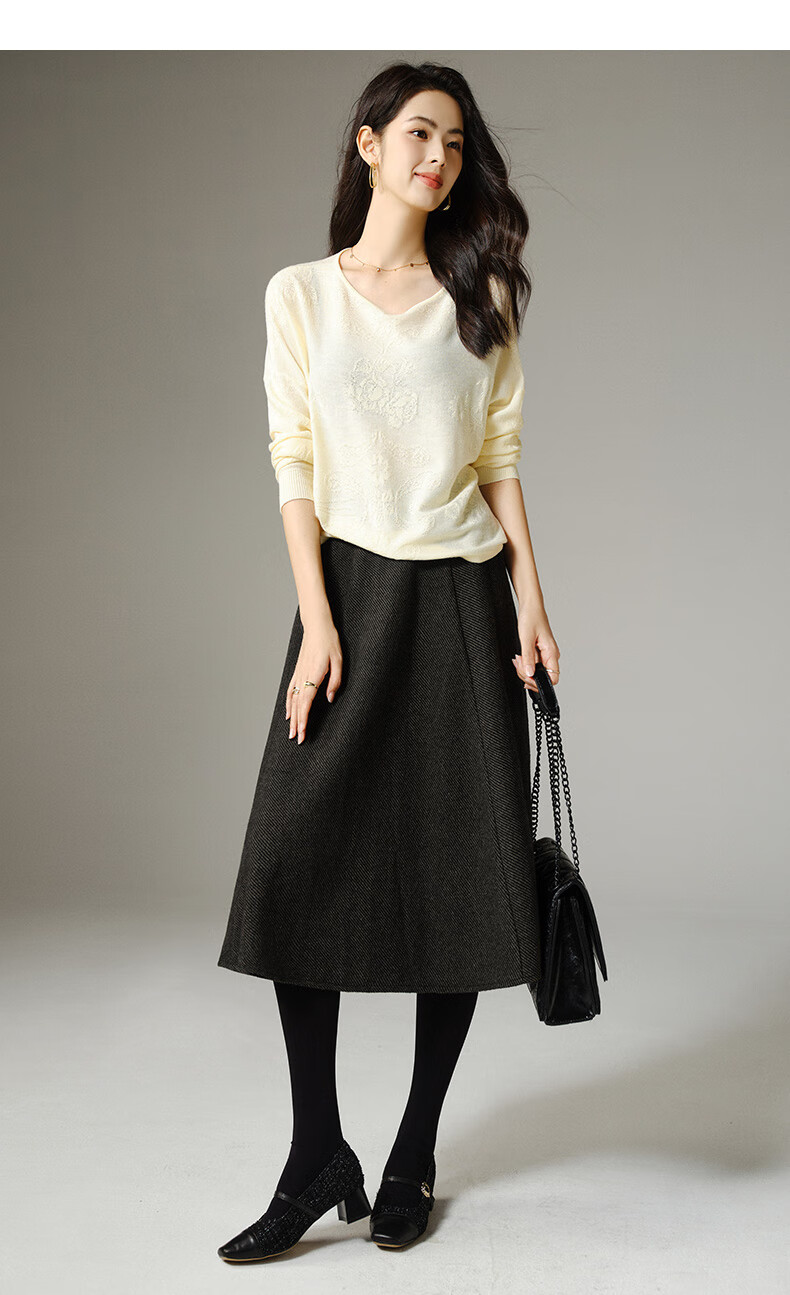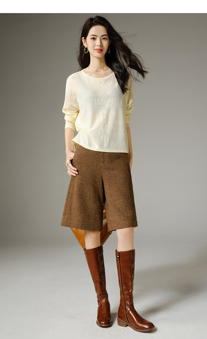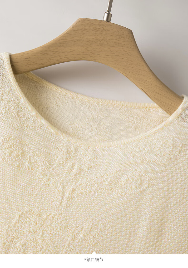 晚白【新品】含绵羊毛百搭针织衫女2026春季气质弹力修身显瘦上衣 米杏色 M