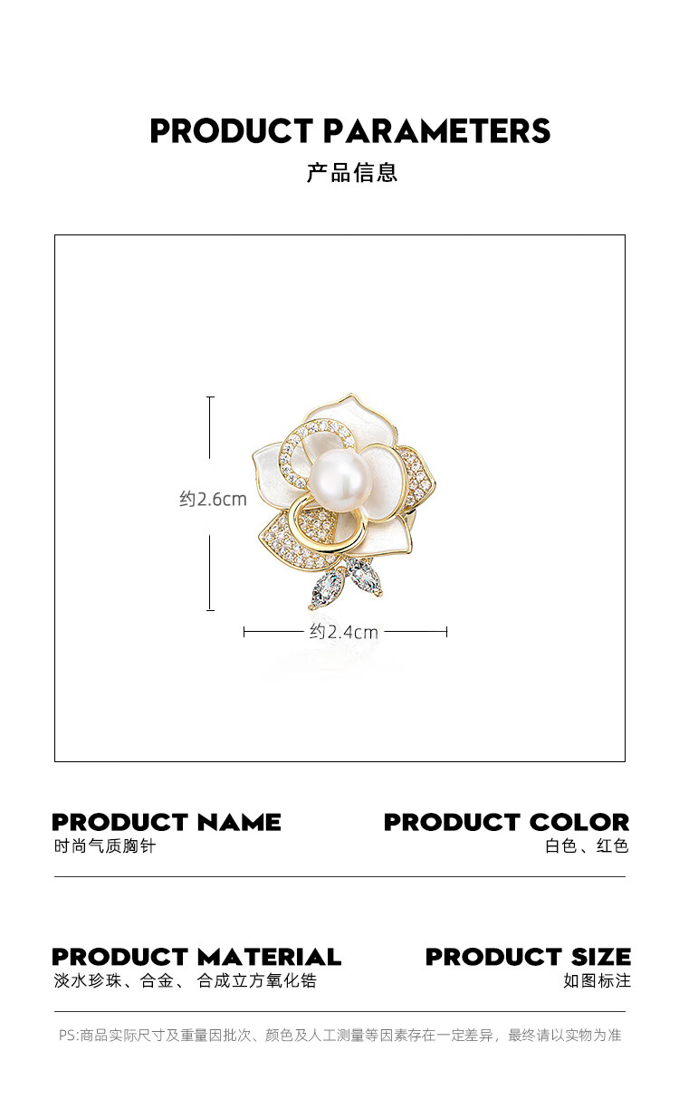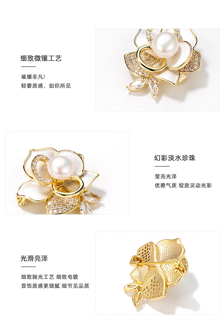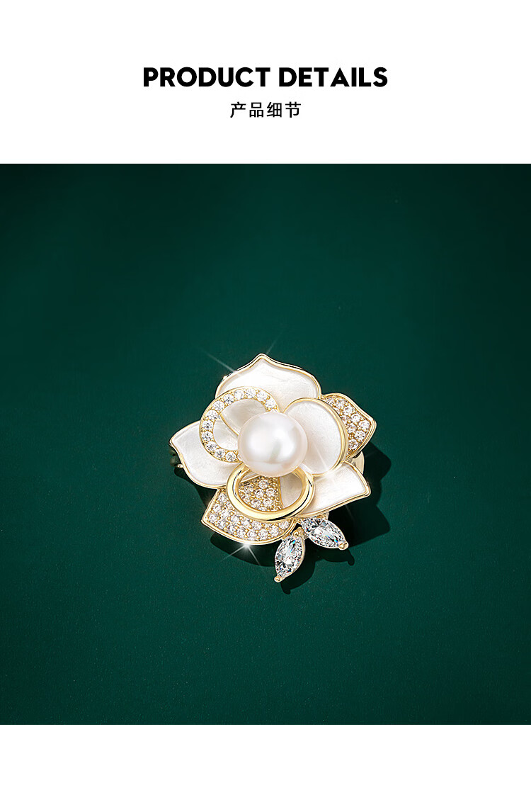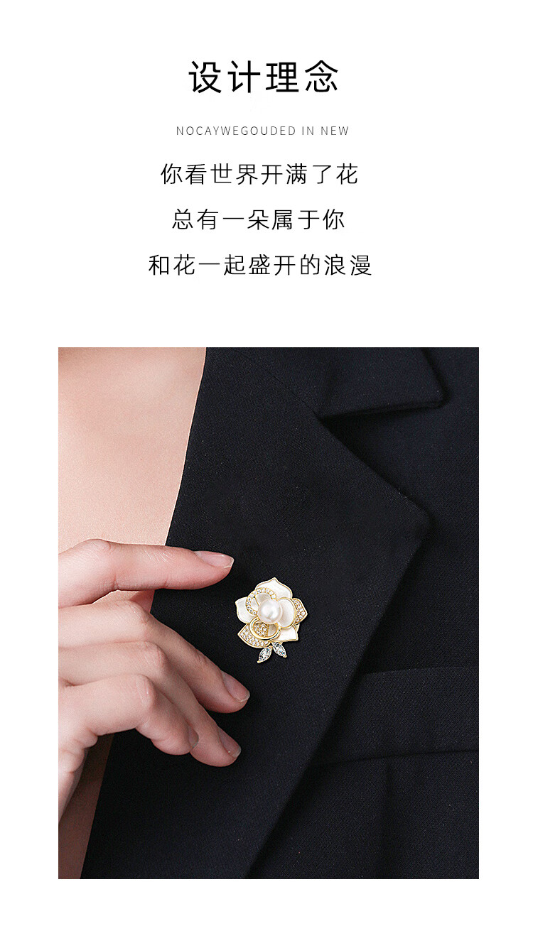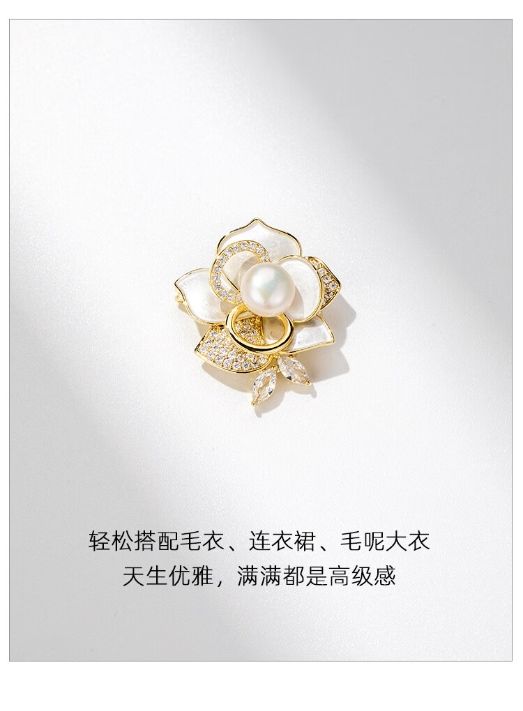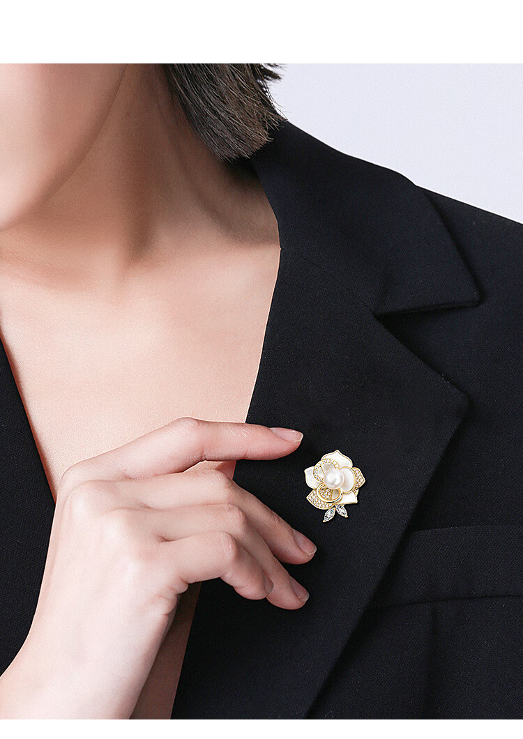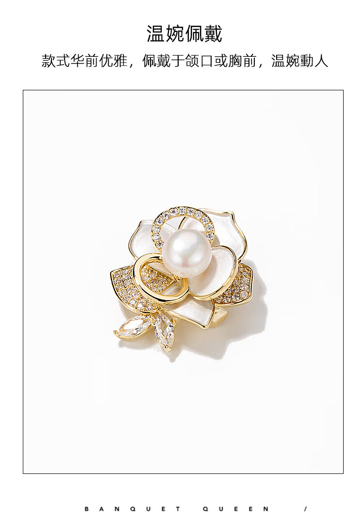 Qlady山茶花胸针高档女轻奢大气珍珠胸花防走光别针配饰生日新年礼物