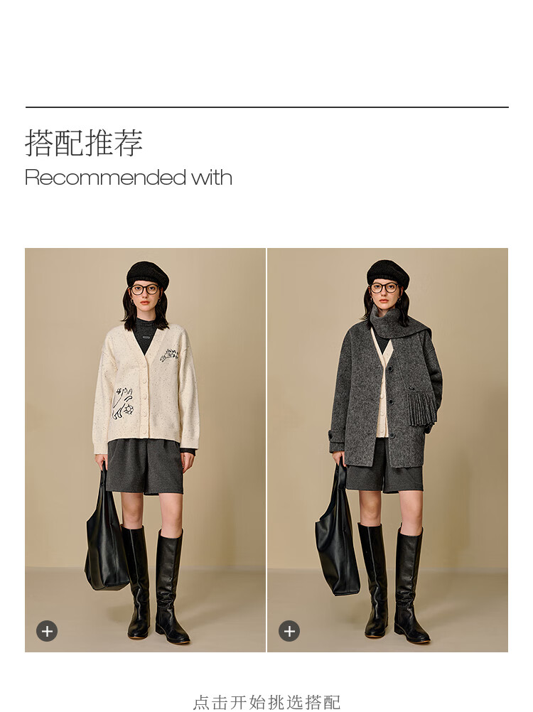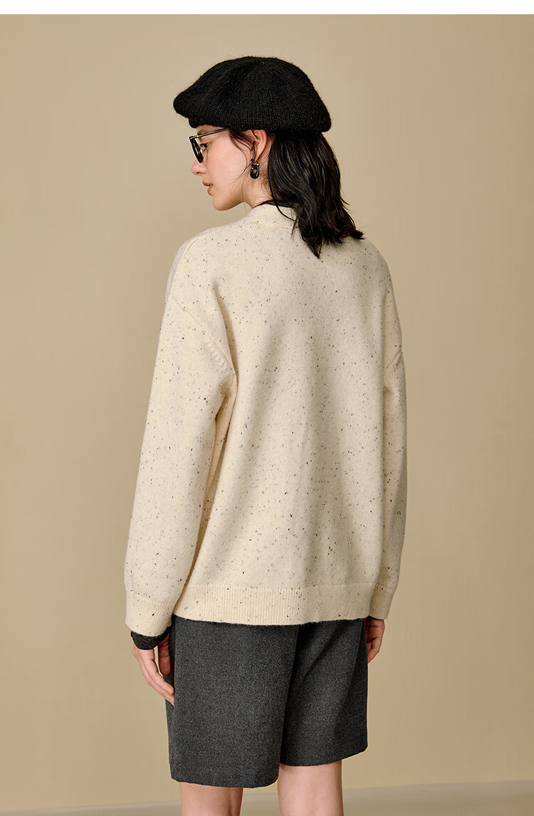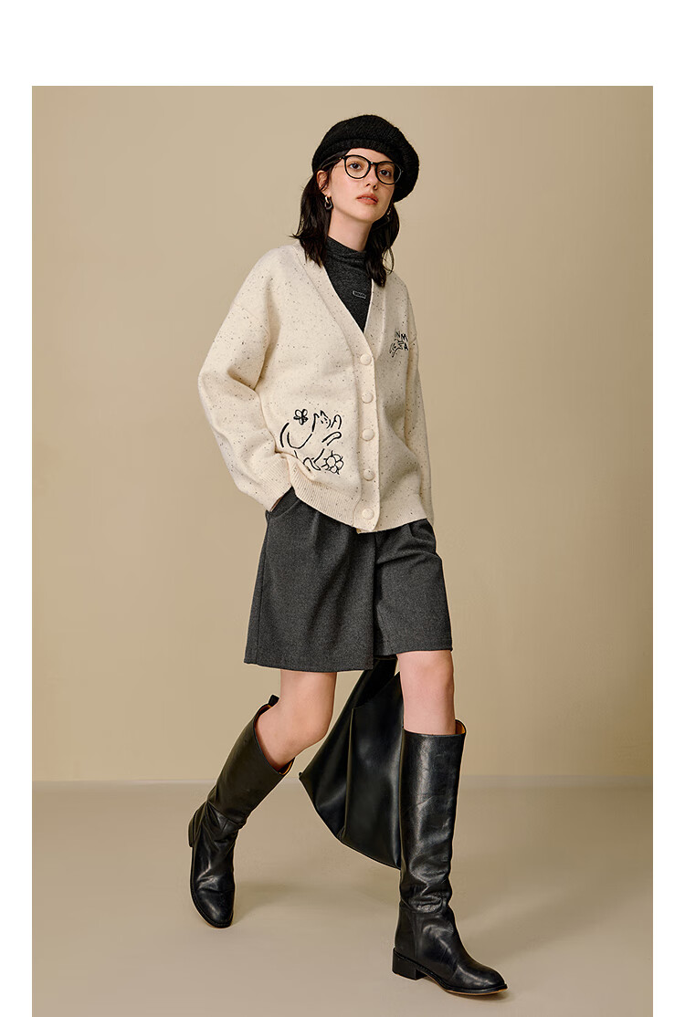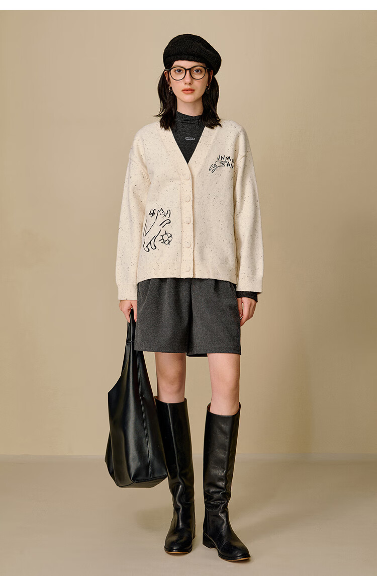 茵曼(INMAN)茵曼彩点纱萌宠刺绣针织开衫2025冬女装新款显瘦毛衣外套 杏色 M