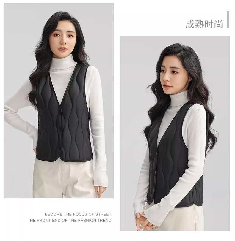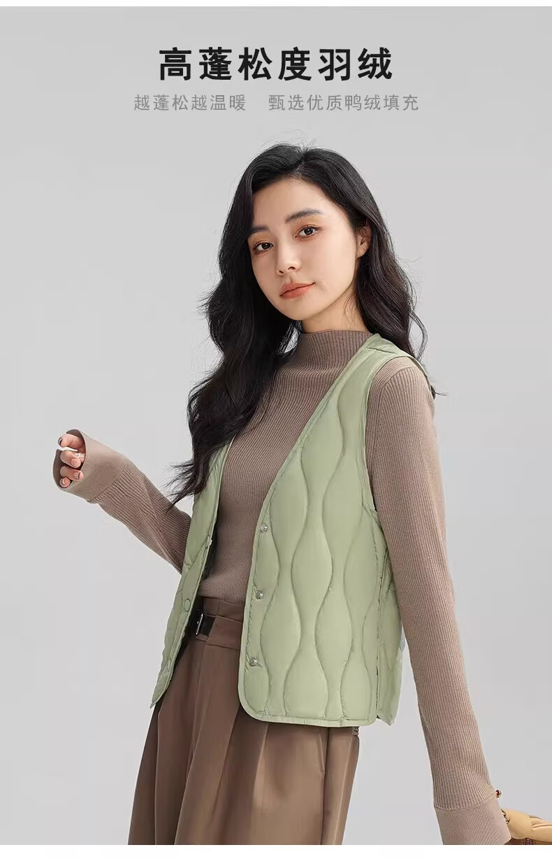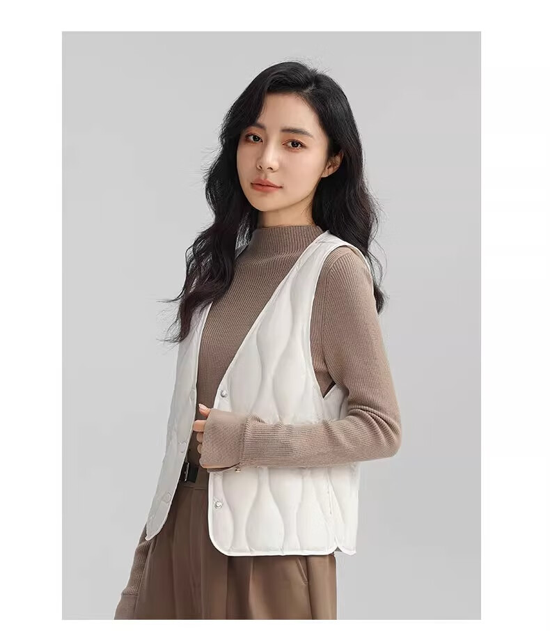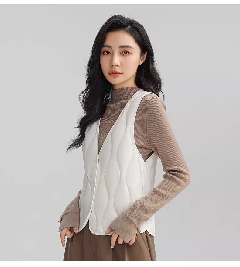 鸭鸭(YAYA)轻薄羽绒服马甲女V领新款基础修身背心内胆鸭绒马夹外套 米白色 165/88A(L)