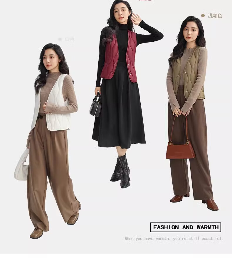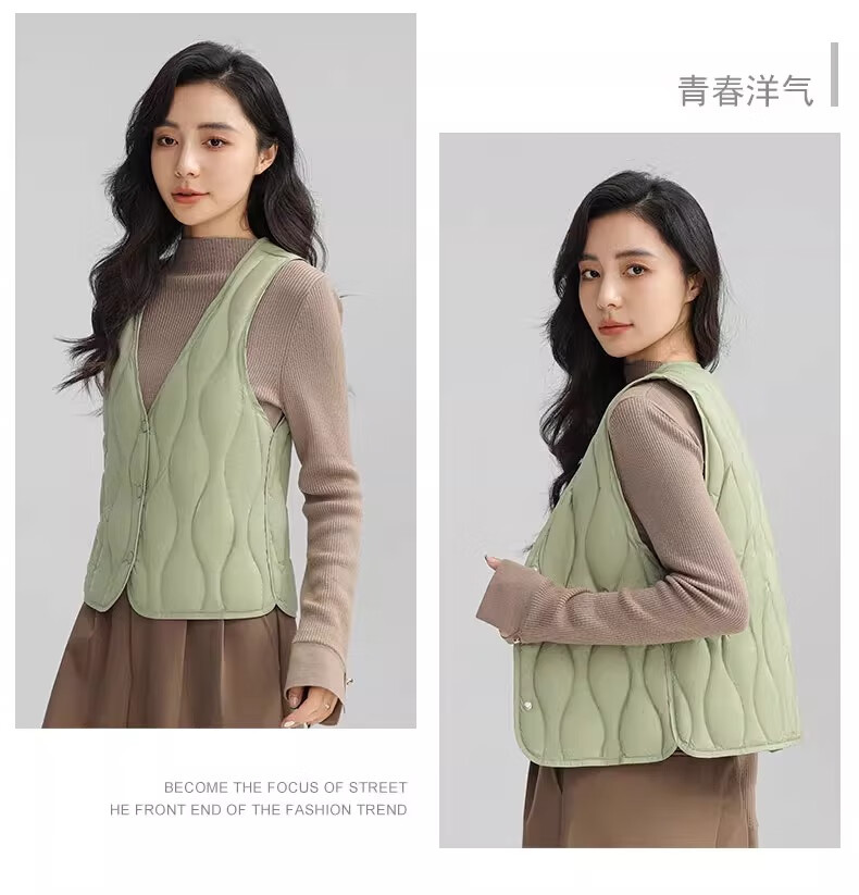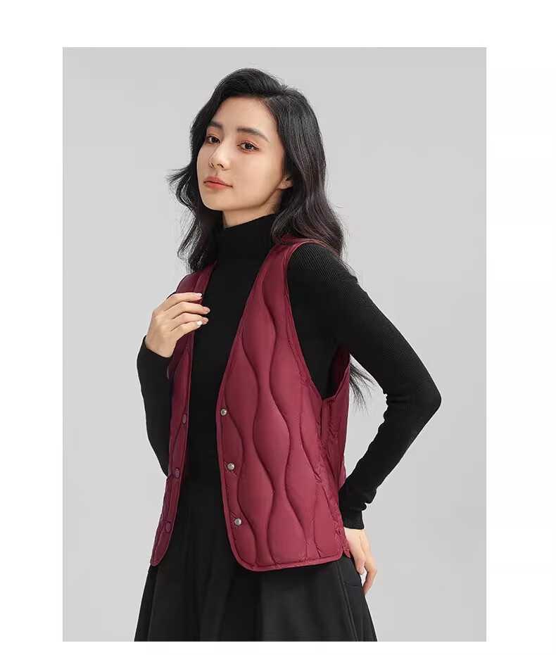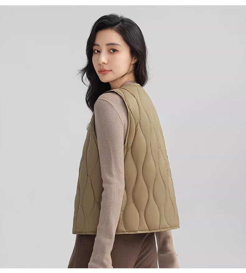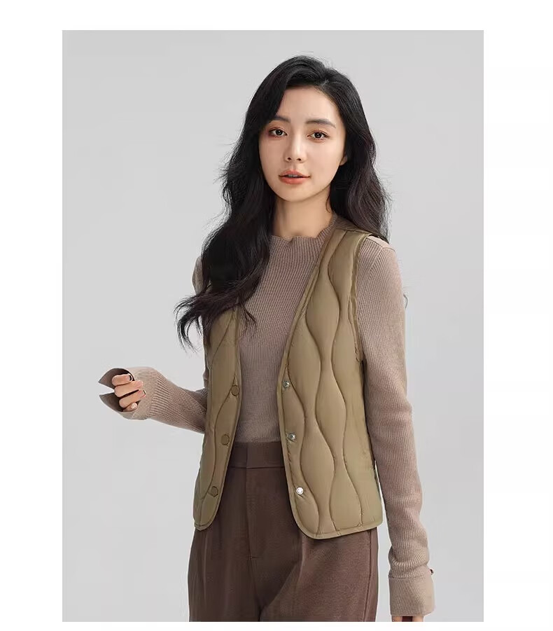 鸭鸭(YAYA)轻薄羽绒服马甲女V领新款基础修身背心内胆鸭绒马夹外套 米白色 165/88A(L)