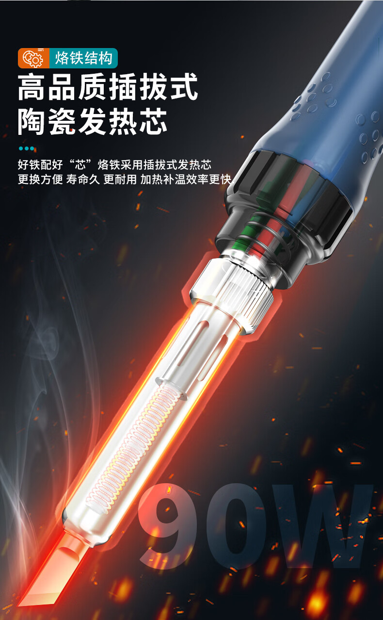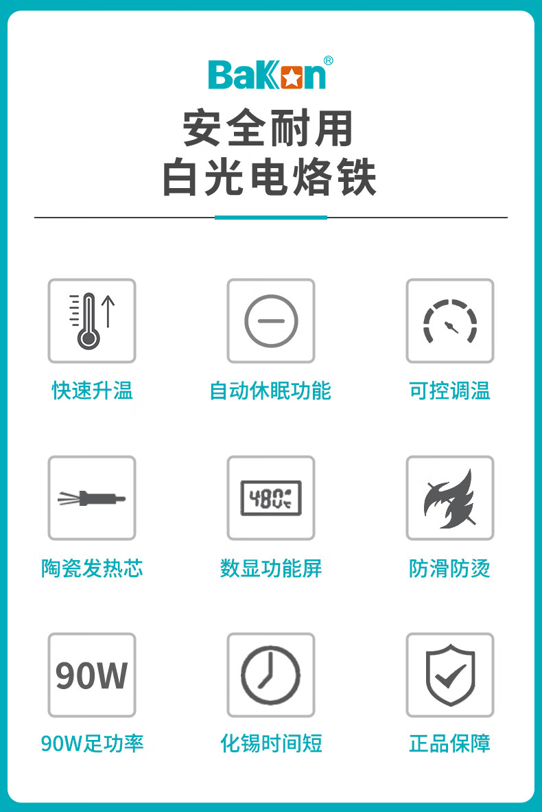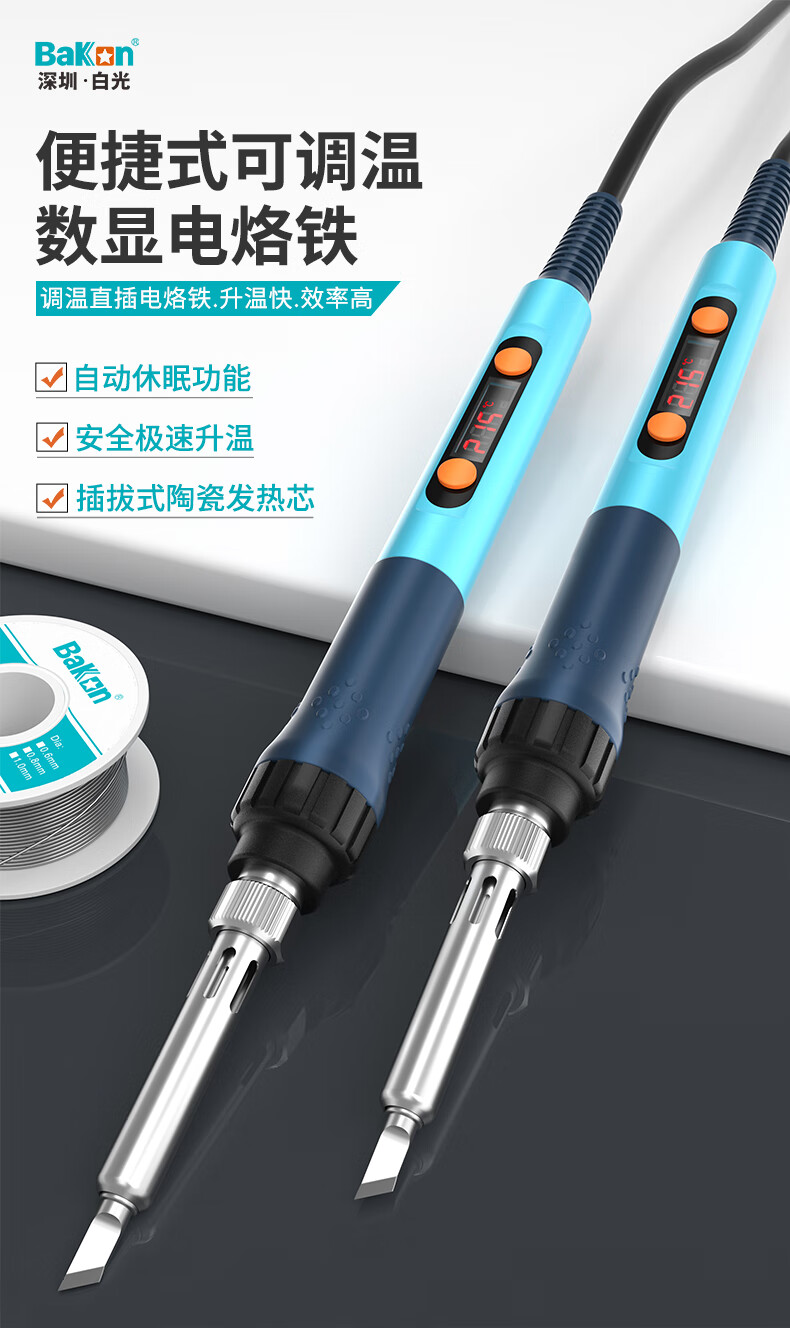 bakon白光电烙铁可调温内热式电焊笔90W数显家用维修恒温电洛铁BK606