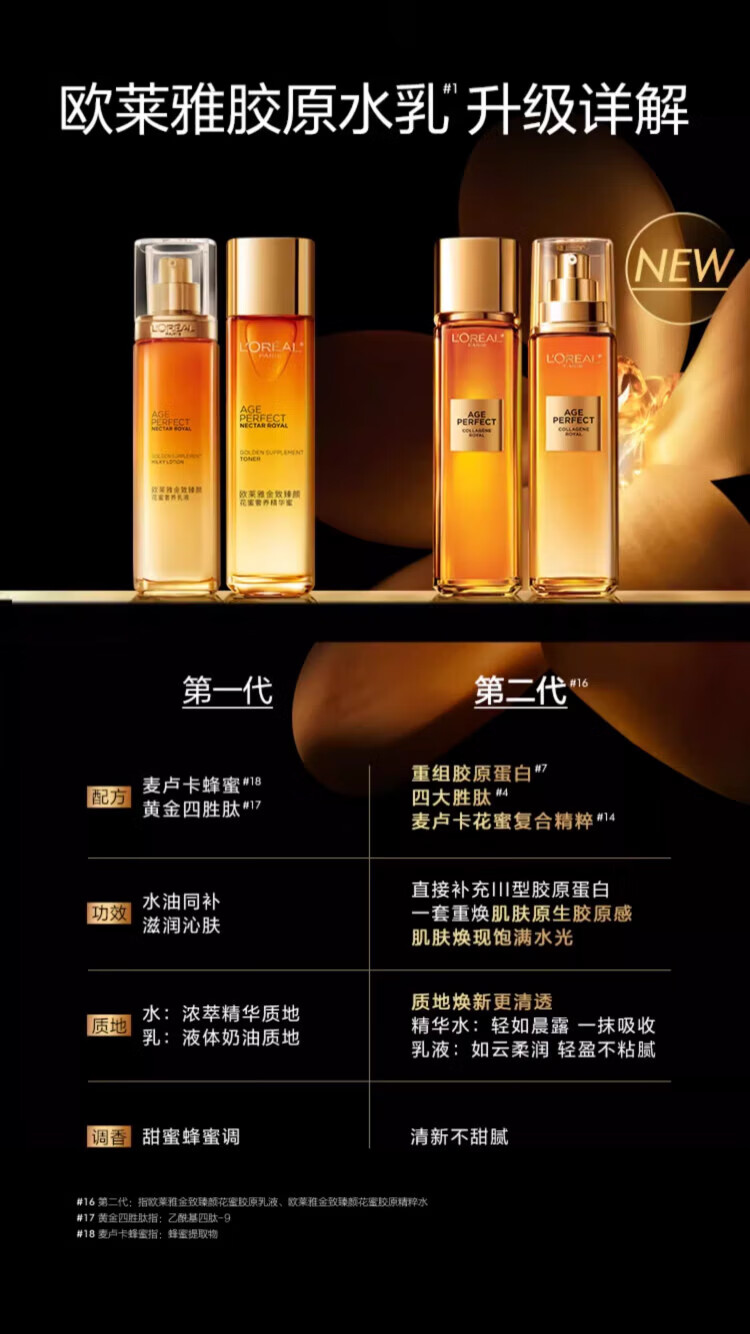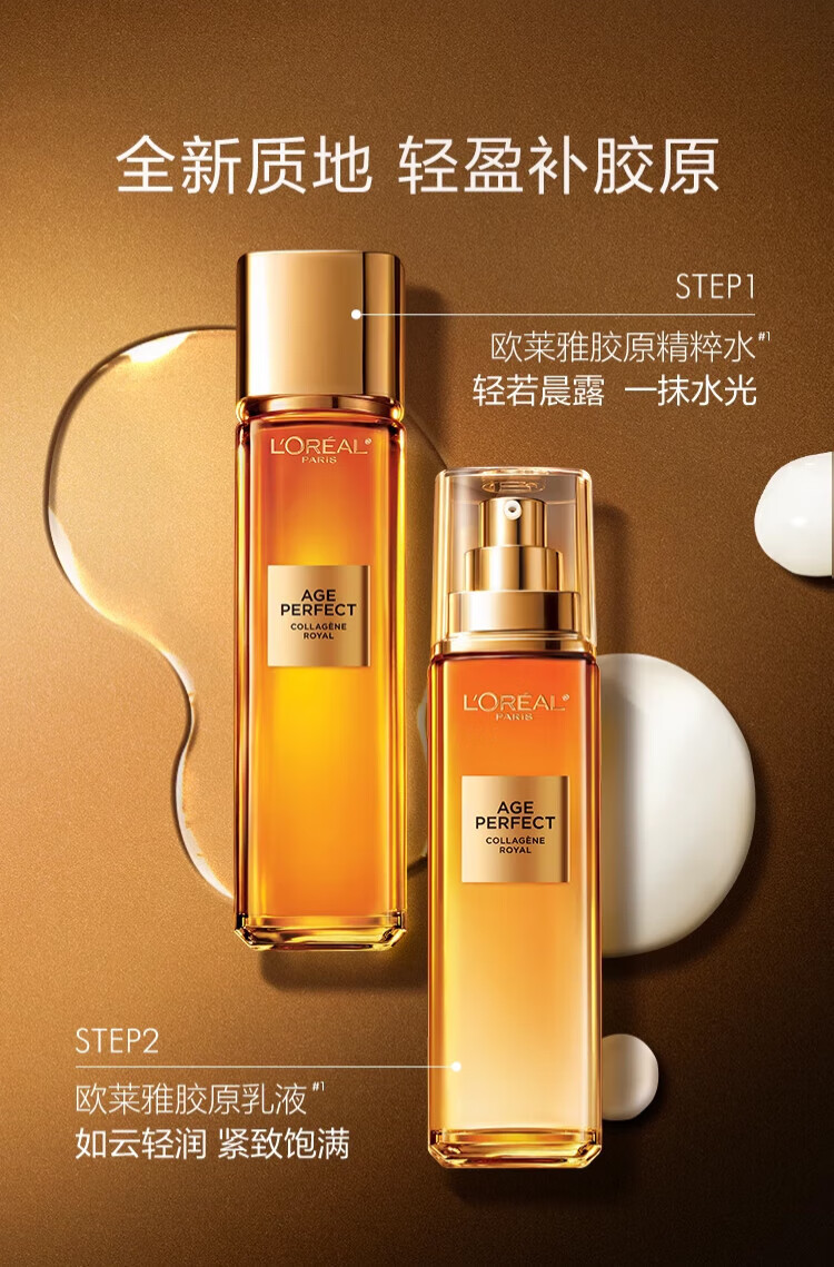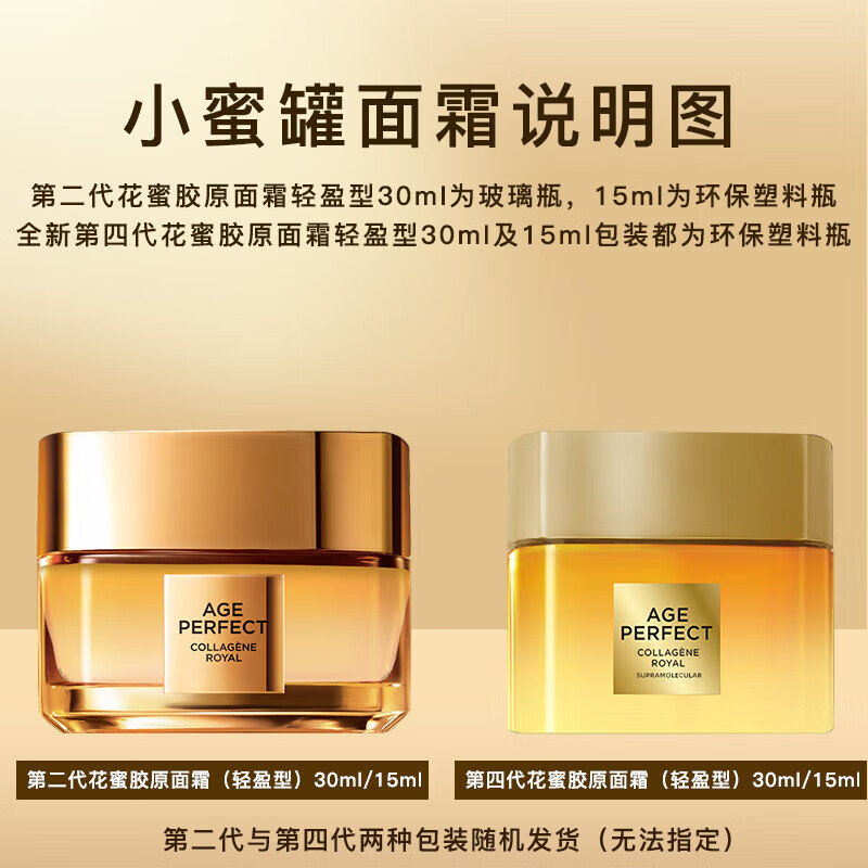 欧莱雅 L'OREAL花蜜胶原水乳套装小蜜罐面霜抗皱女士化妆品护肤品情人节礼物礼盒 花蜜精粹水65ml*2