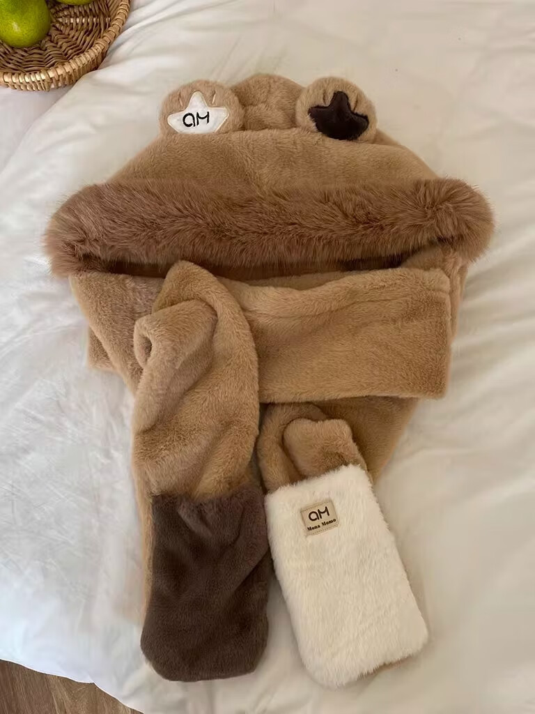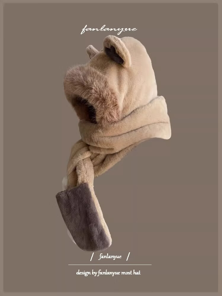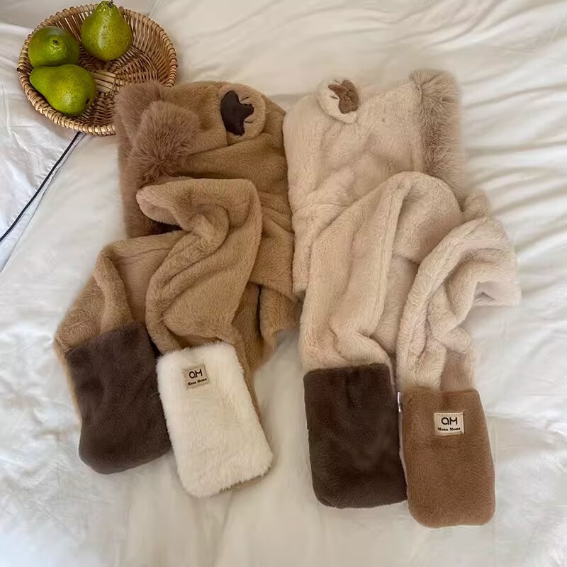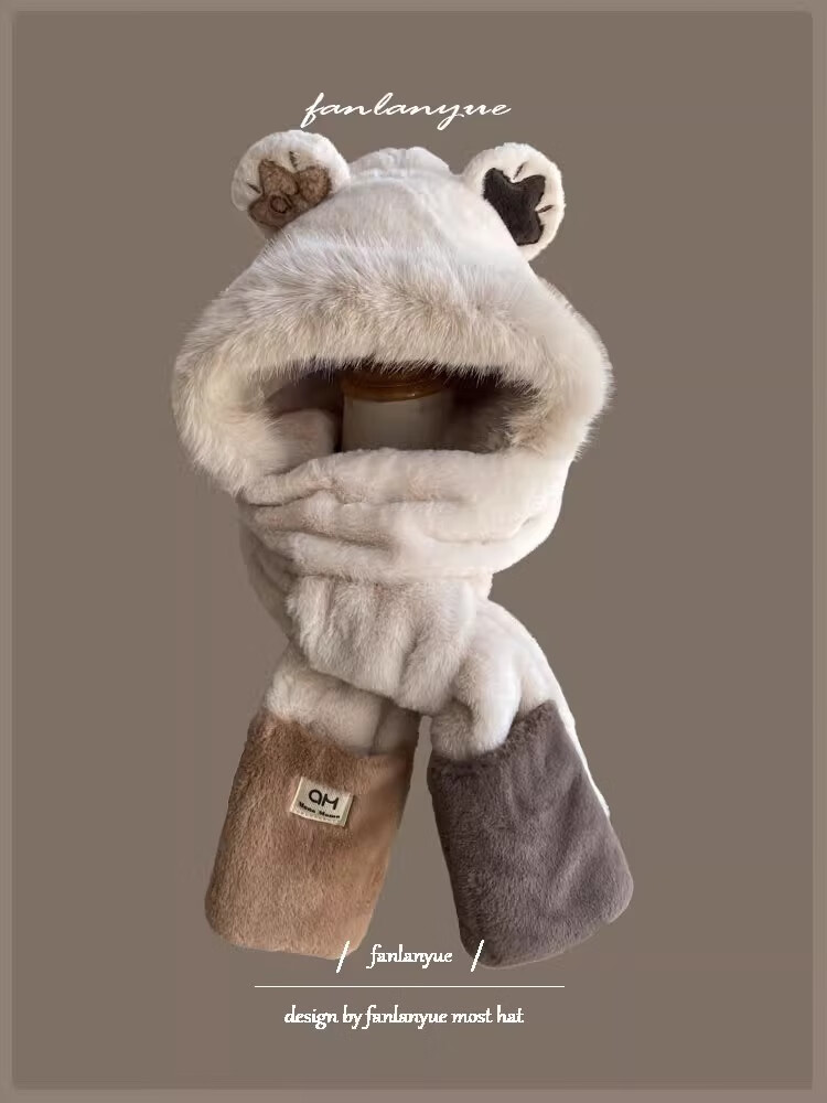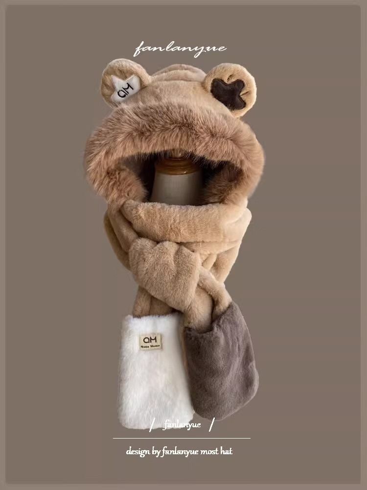 天丝巾画围巾帽子一体女秋冬加绒户外保暖围脖三件套圣诞礼物送女生手套 粉色(三件套) 无规格
