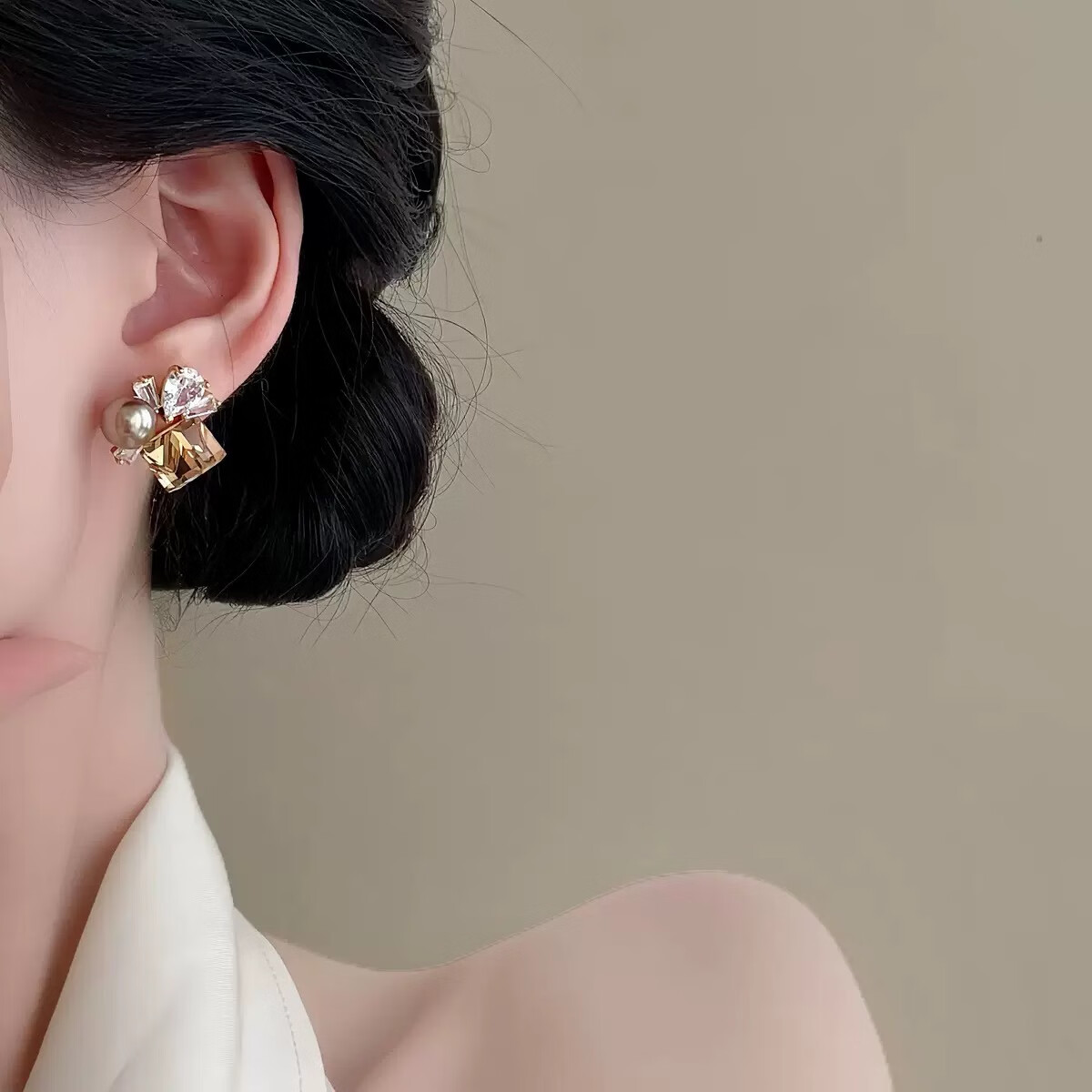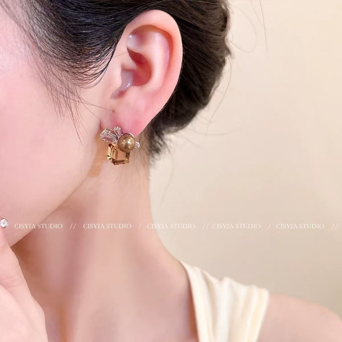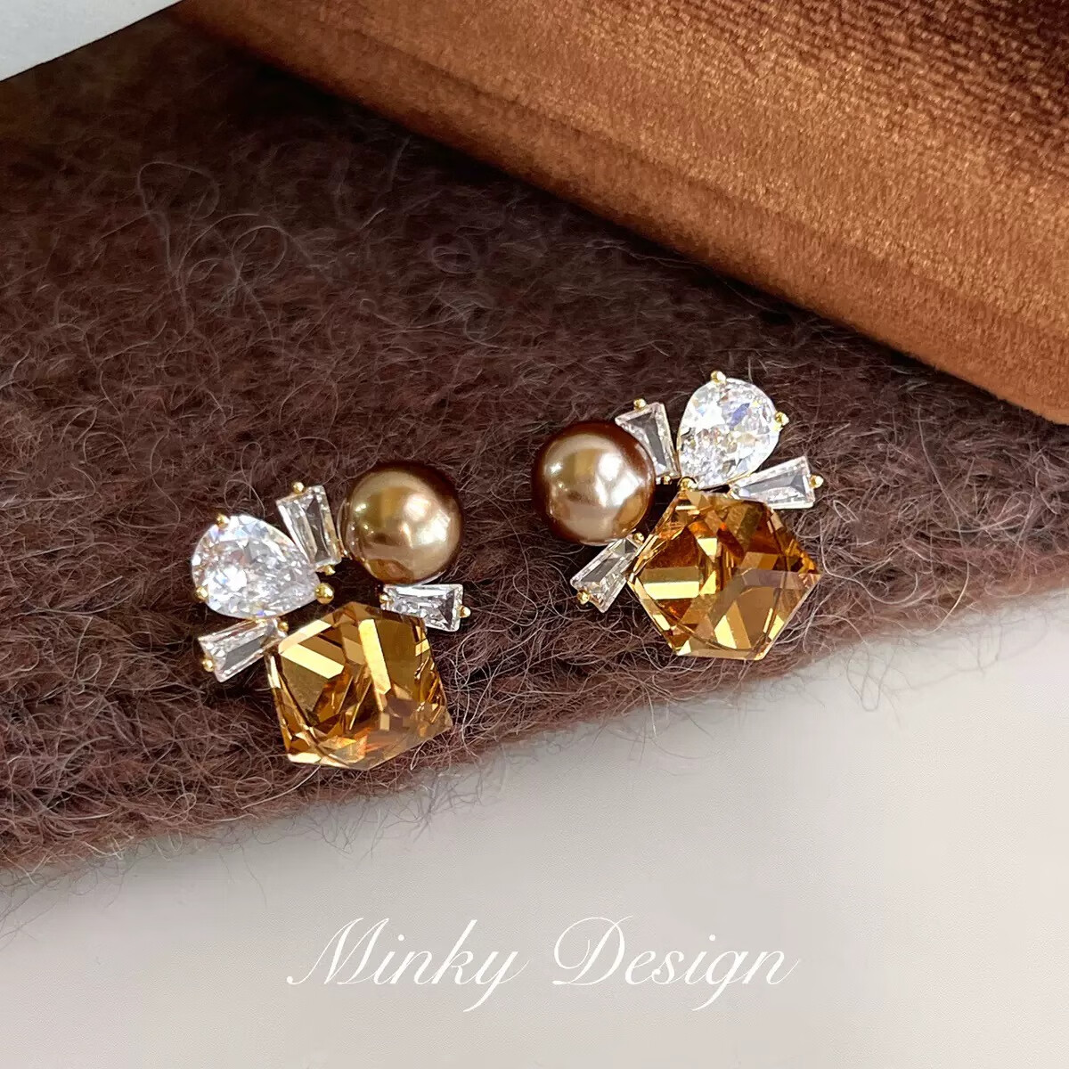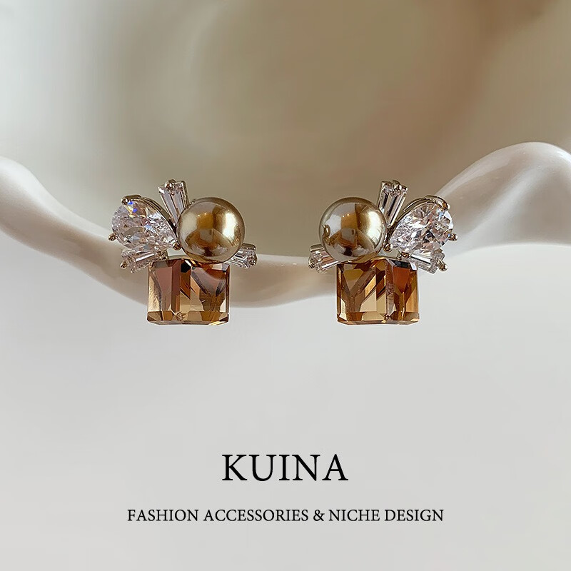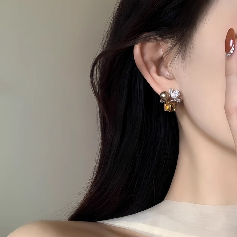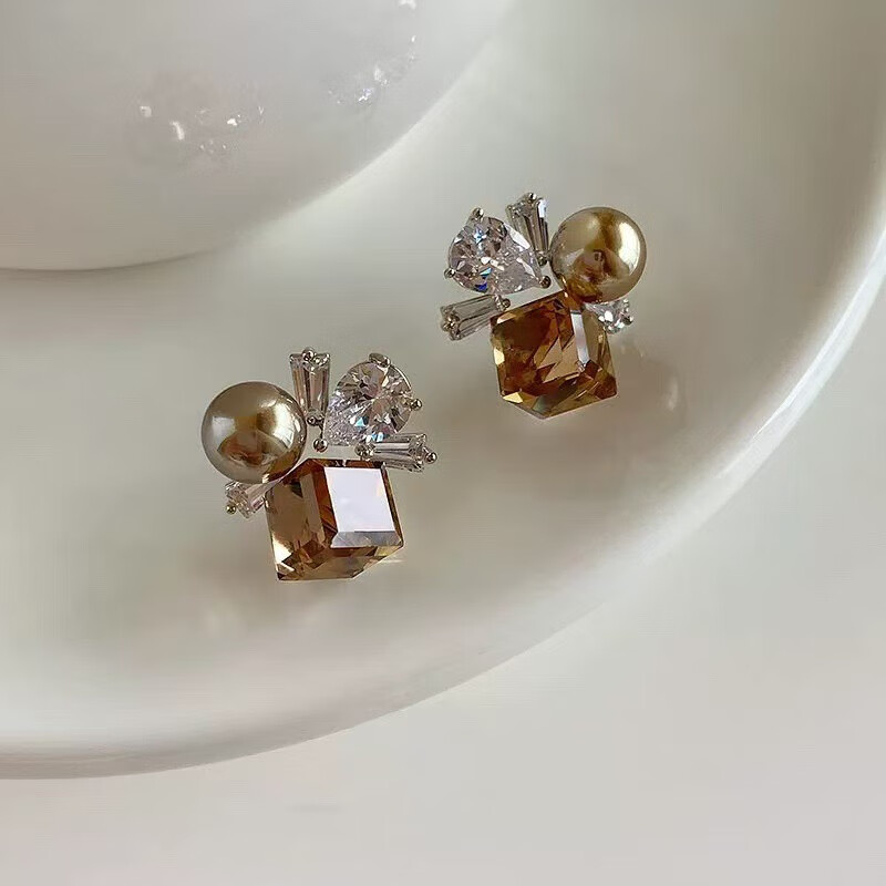 花饰庄园多彩方糖锆石耳钉甜美风珍珠耳环女小众高级感时尚耳饰品