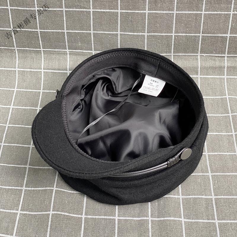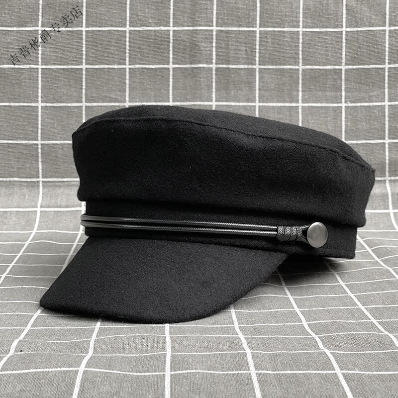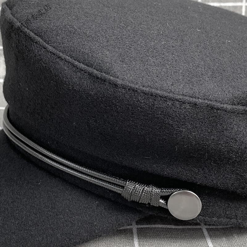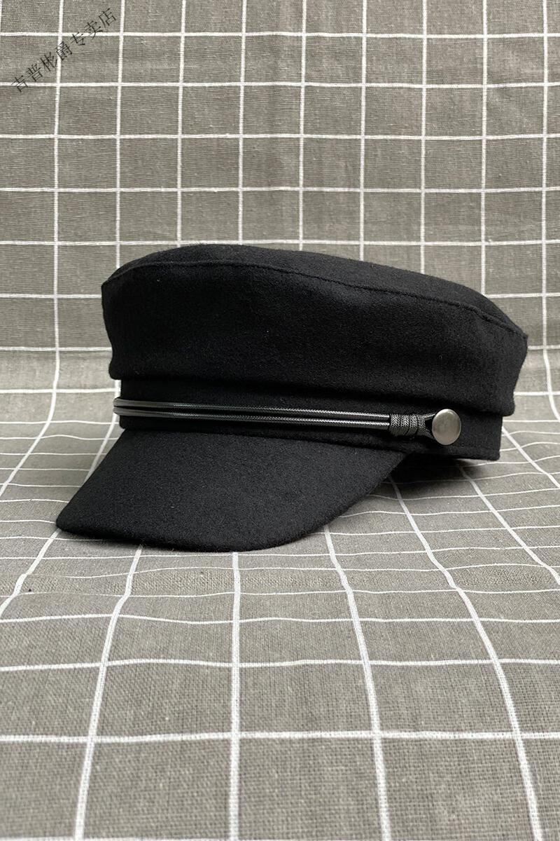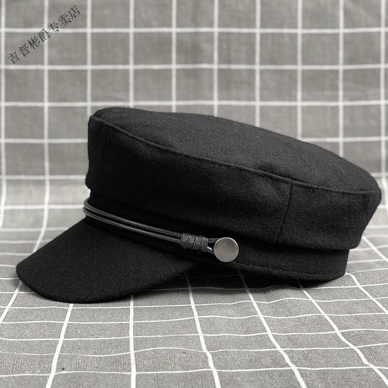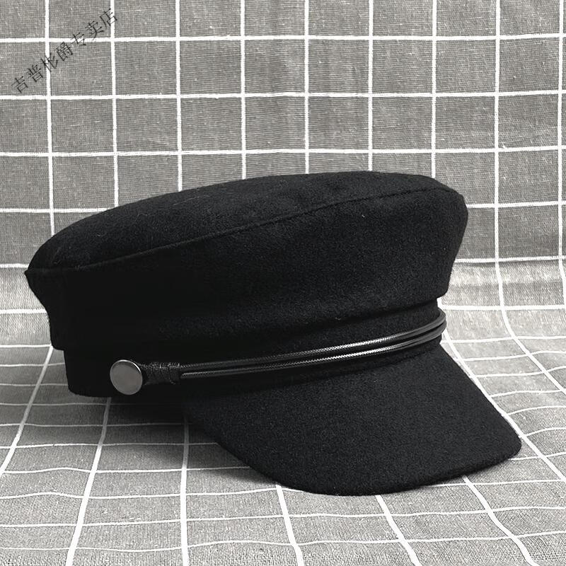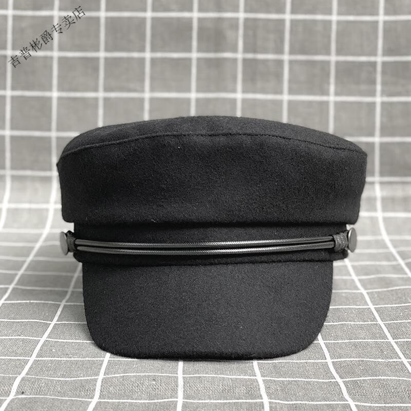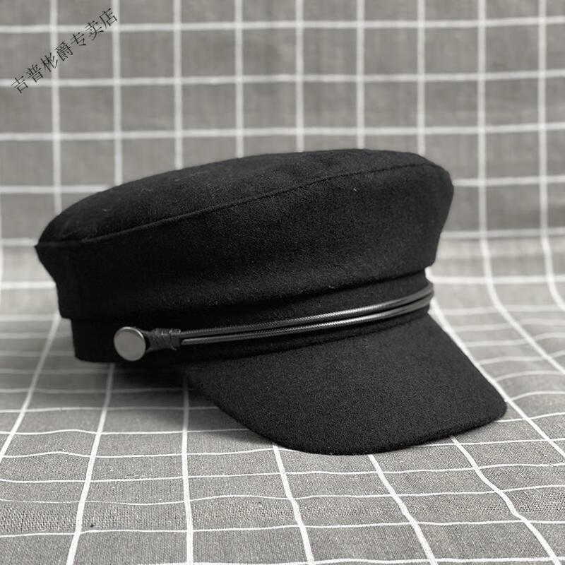 JEEP SPIRIT日系复古贝雷帽男女平顶帽秋冬粗蜡绳气质版报童帽鸭舌画家帽 黑色+透气眼 粗蜡绳全毛呢平顶 XS 加小号54CM头很小或儿童选
