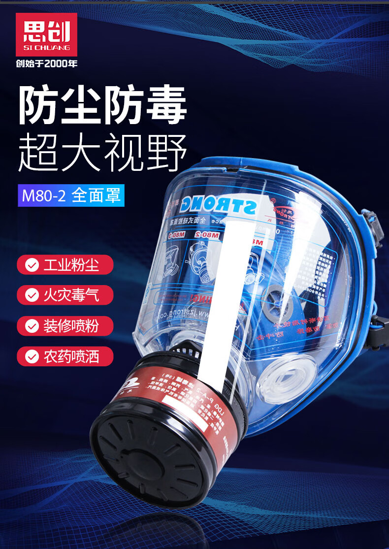 思创科技 硅胶橡胶防尘防毒全面罩面具化工喷漆氨农药打磨应急救援 ST-S100-2 硅胶裸面罩(不含滤毒罐)