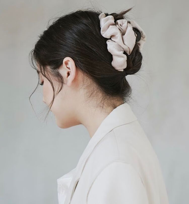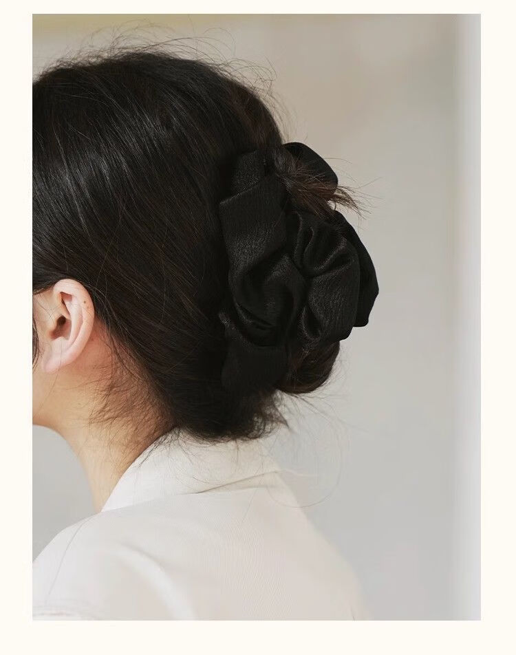 默研(MOYAN)褶皱布艺云朵泡泡抓夹女2026秋冬新款感后脑勺鲨鱼夹子发夹 丝绒褶皱抓夹黑色 A21-305