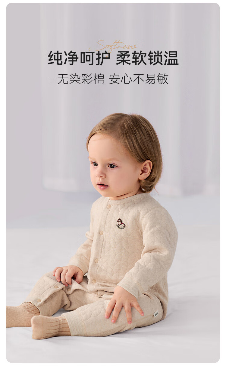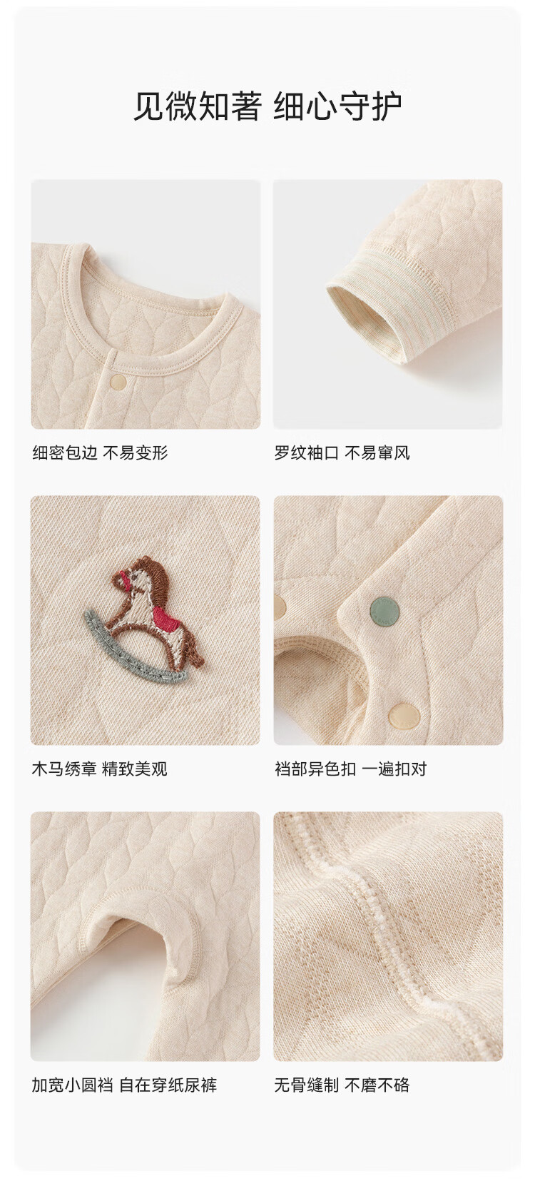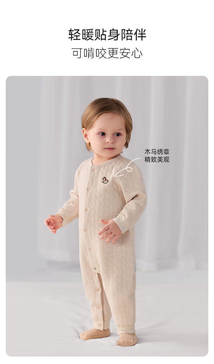 babylove婴儿连体衣秋冬季薄夹棉哈衣爬爬服男女宝宝保暖衣服加厚彩棉