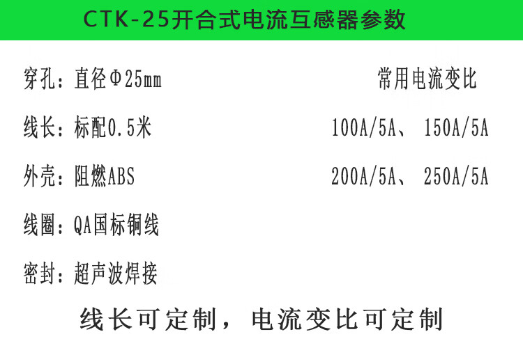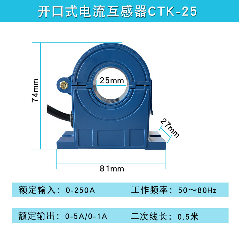 厚德开口式电流互感器厚德HDELEM100-1500/5A开启式CTK25385080开合式 100A/5A CTK-25(孔直径25mm)