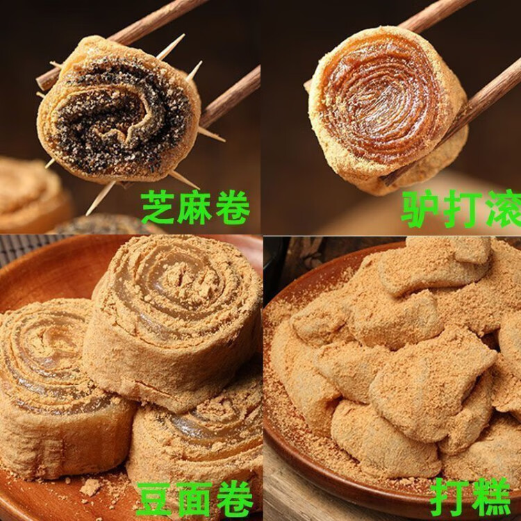 驴打滚正宗东北老式豆面卷打糕芝麻卷年糕东北糯米糍粑糯叽叽零食 豆面卷+驴打滚_2盒900克