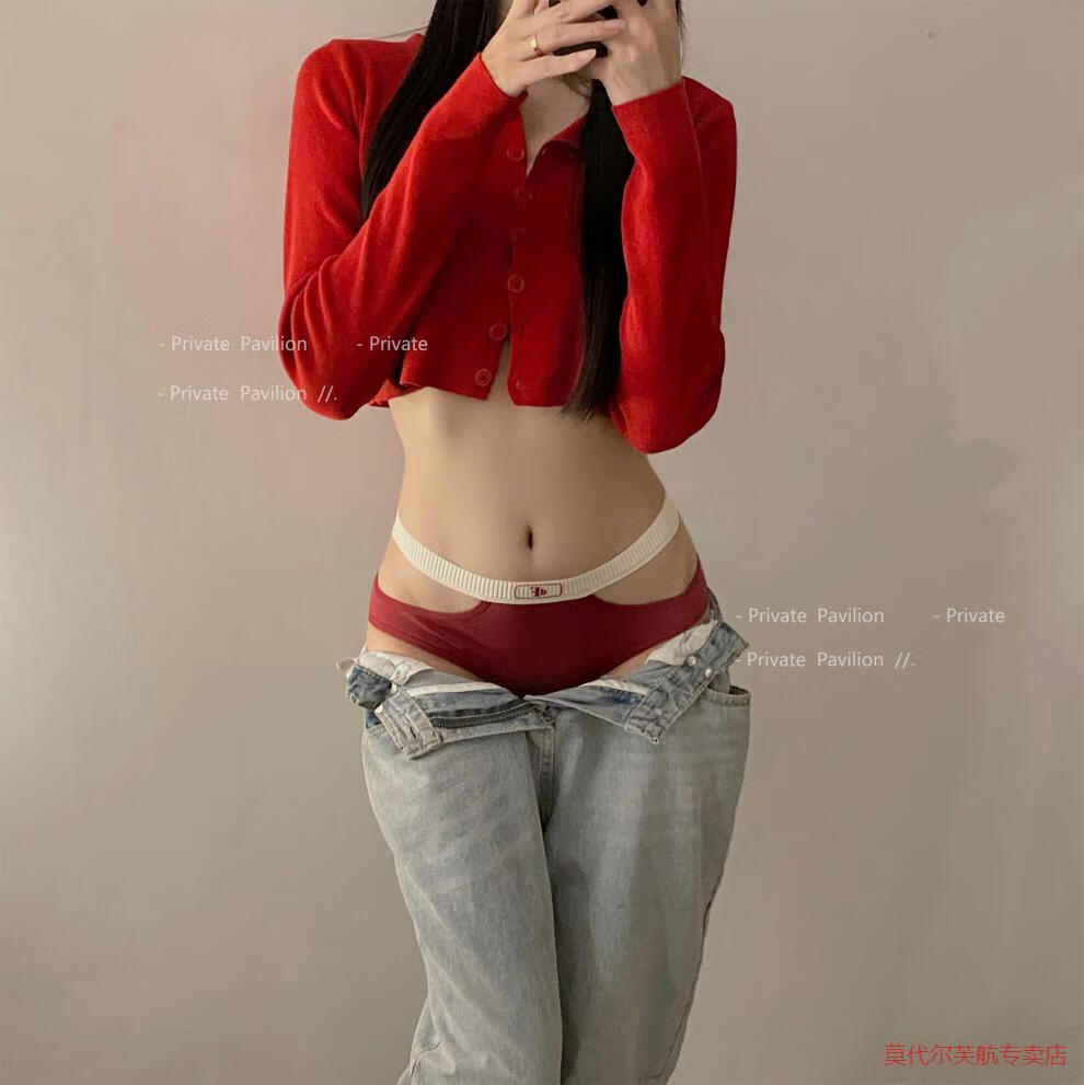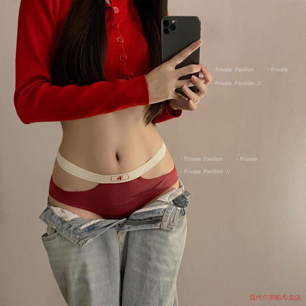 莫代尔本命年红三角内裤女士低腰性感纯欲缕空提臀结婚喜庆纯棉抗菌短裤 红色 1条 L 110-135斤