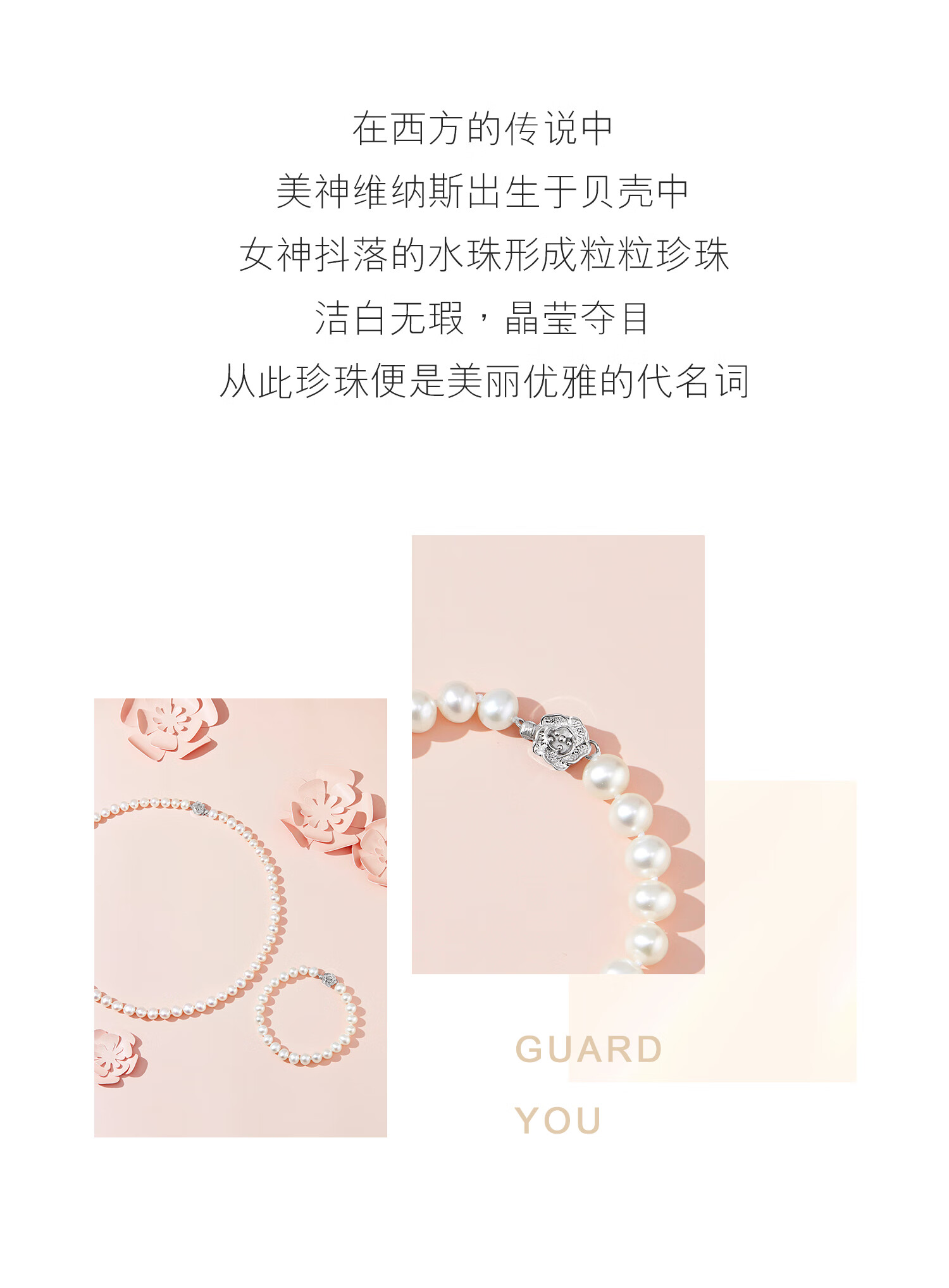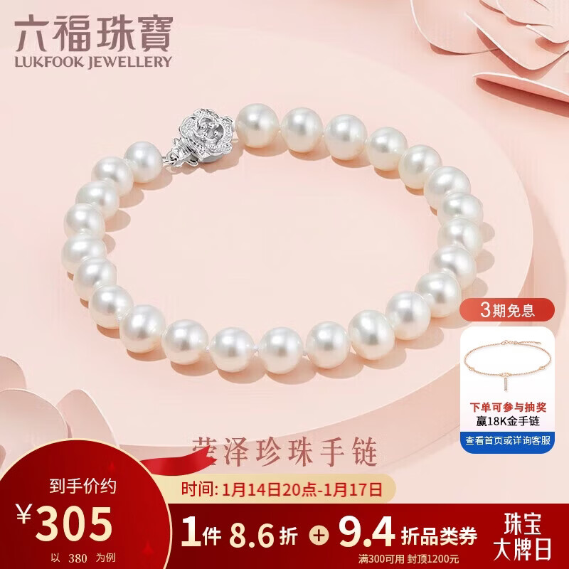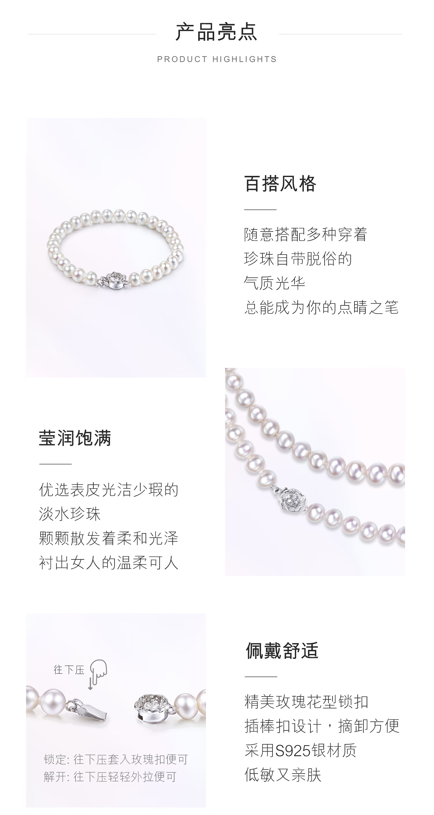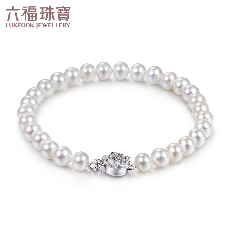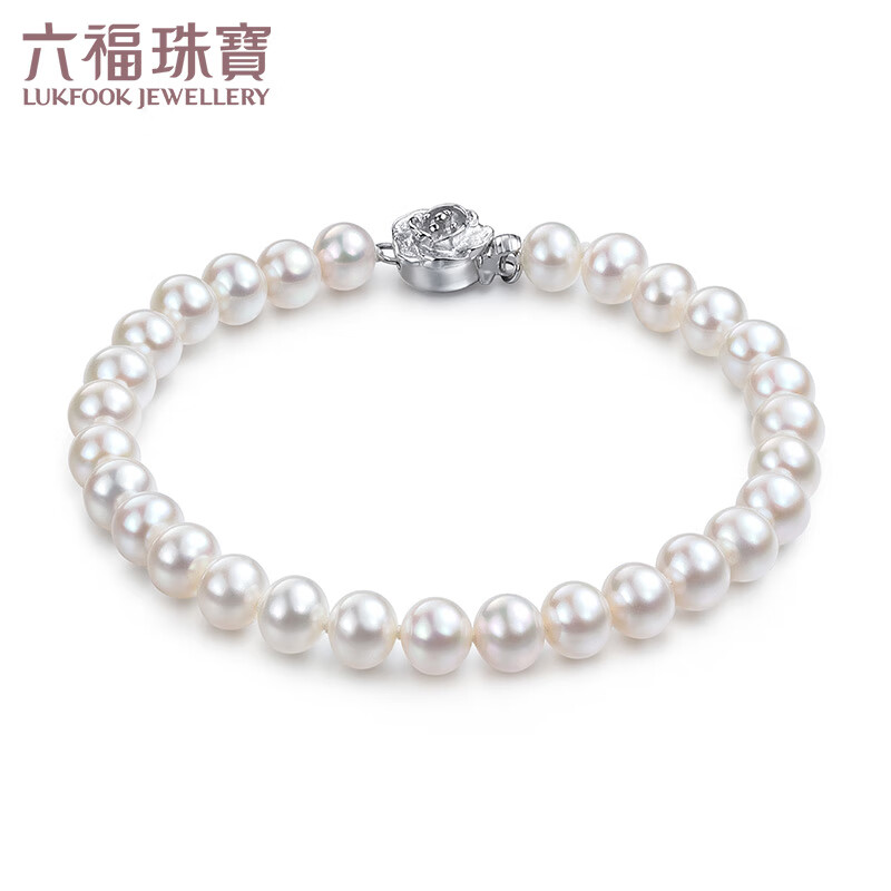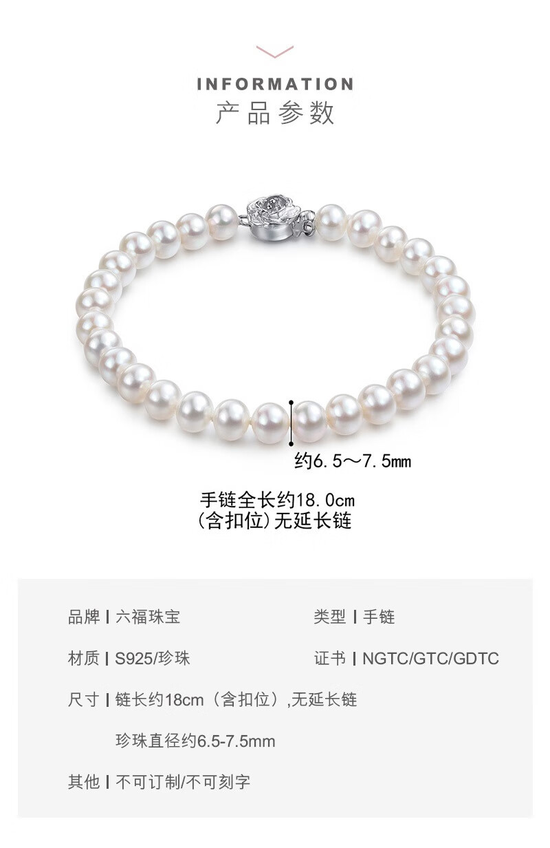 六福珠宝珍珠手链Ag925花形扣莹泽淡水珍珠手串生日礼物女 总重约10.52克