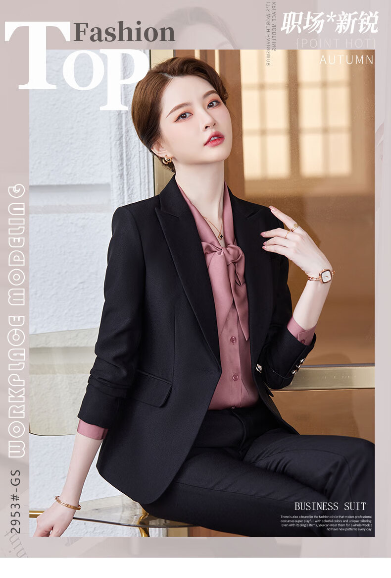 皮尔卡丹(pierre cardin)红色西装外套女2025新款高端职业装气质女神范正装时尚小西服套装 黑色 M