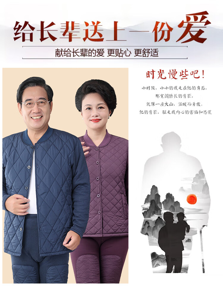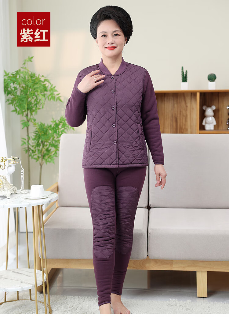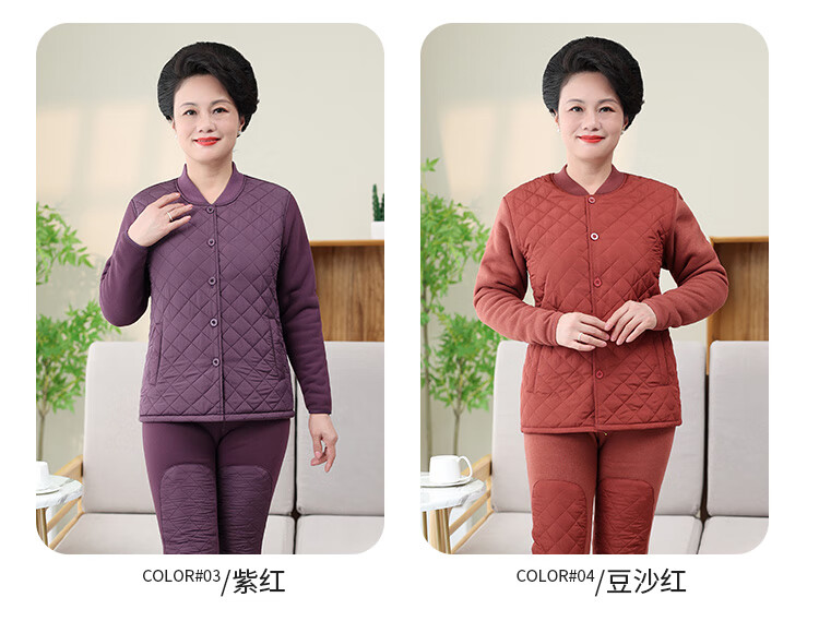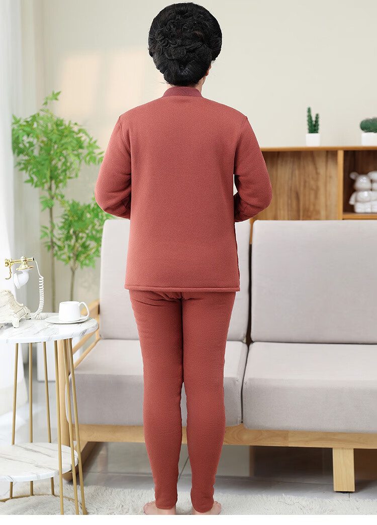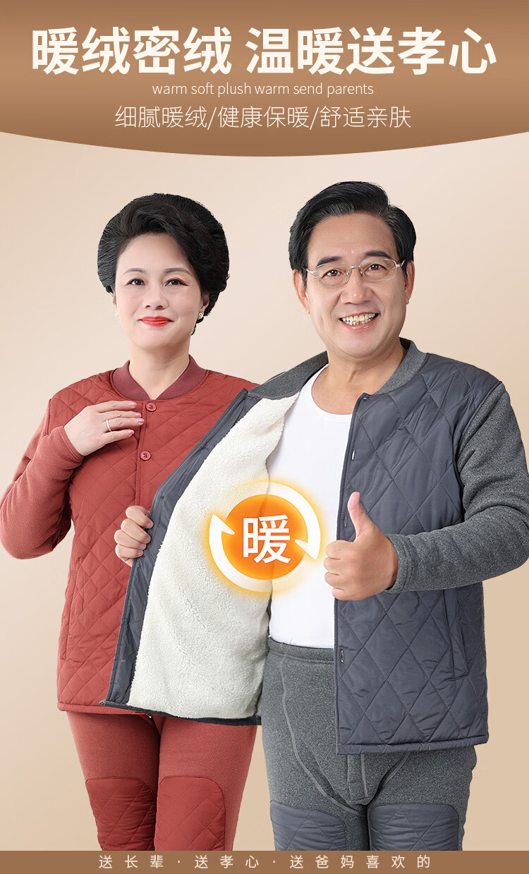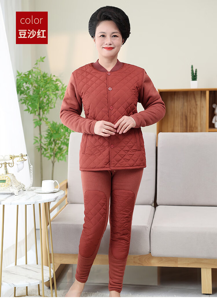 南极人中老年保暖内衣女士冬季加厚妈妈装开衫大码羽丝绒棉袄套装豆沙L