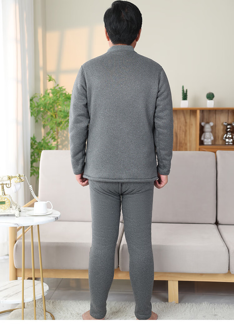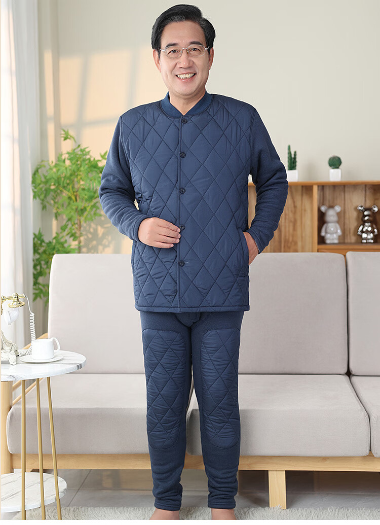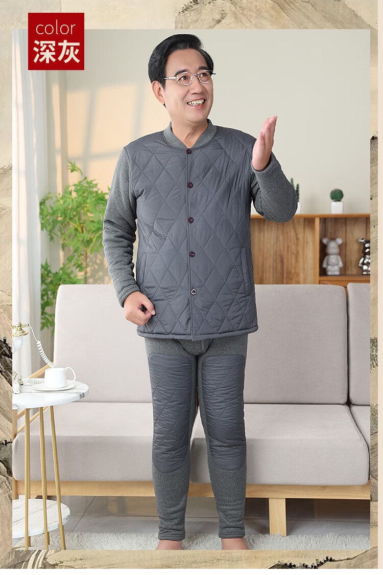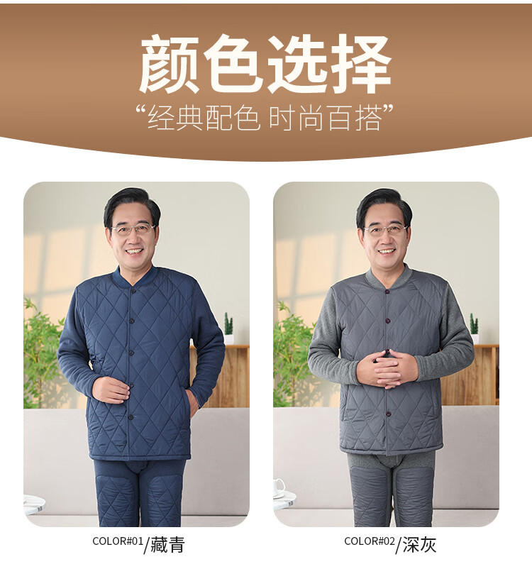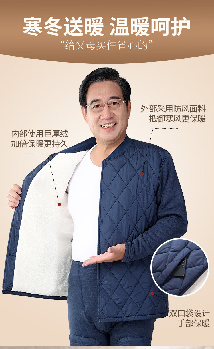 南极人中老年保暖内衣女士冬季加厚妈妈装开衫大码羽丝绒棉袄套装豆沙L