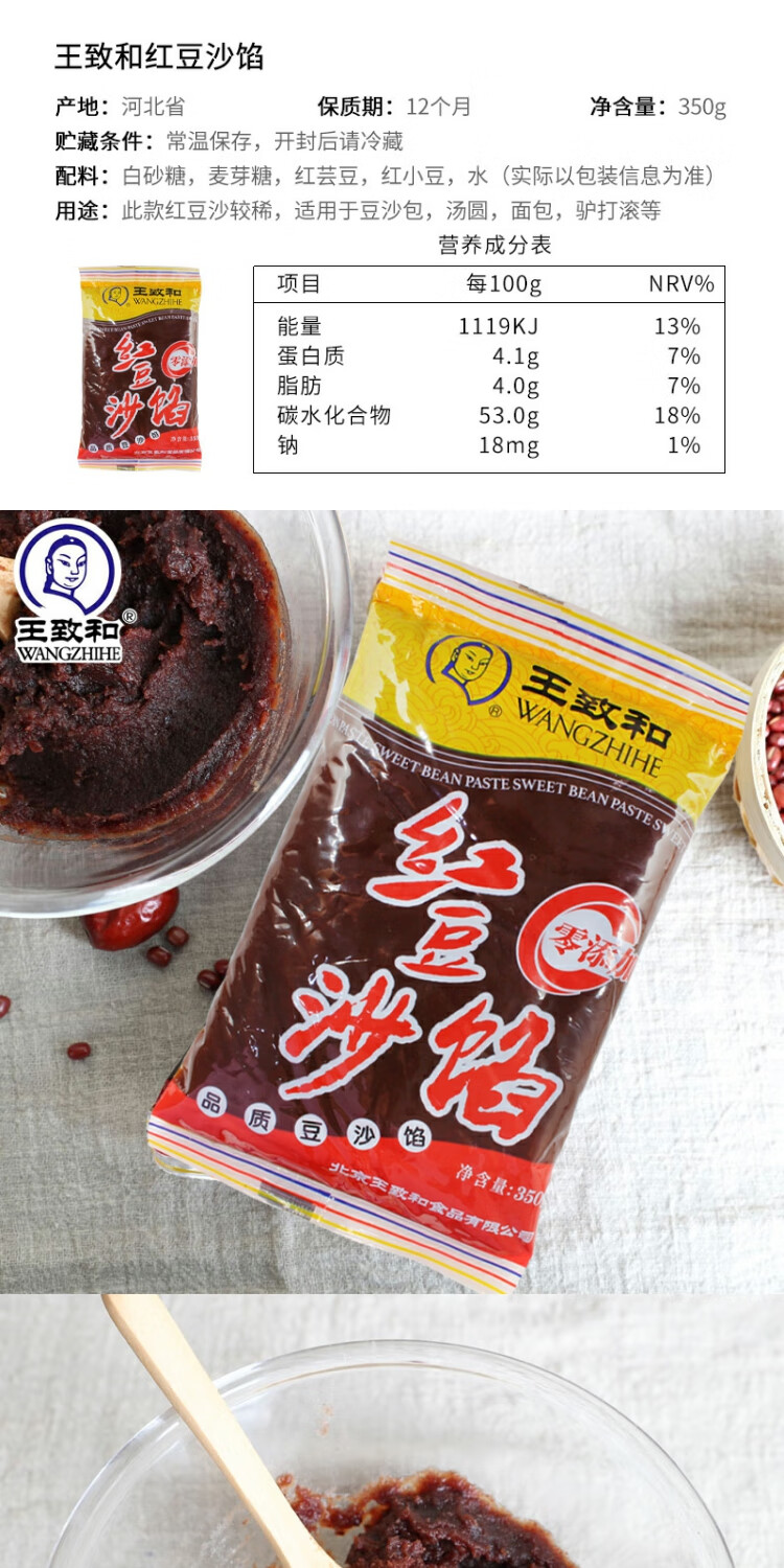 王致和红豆馅350g驴打滚豆沙包面包点心红豆沙馅料家用烘焙即食 红豆沙馅350g