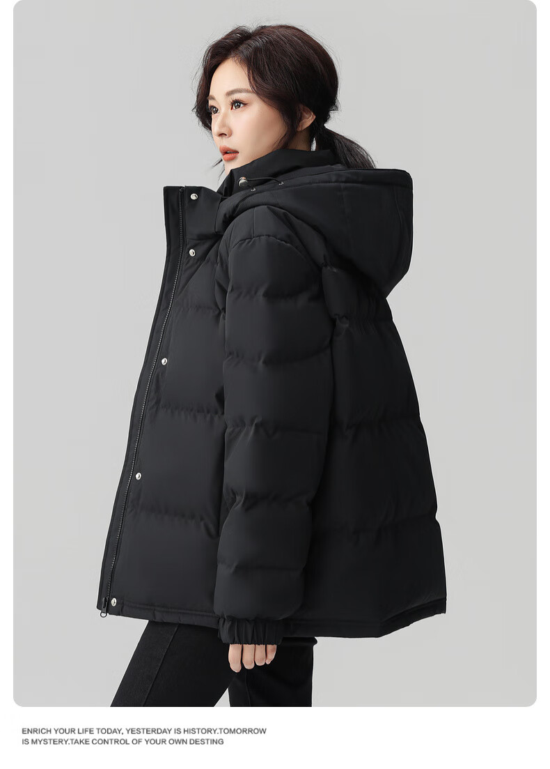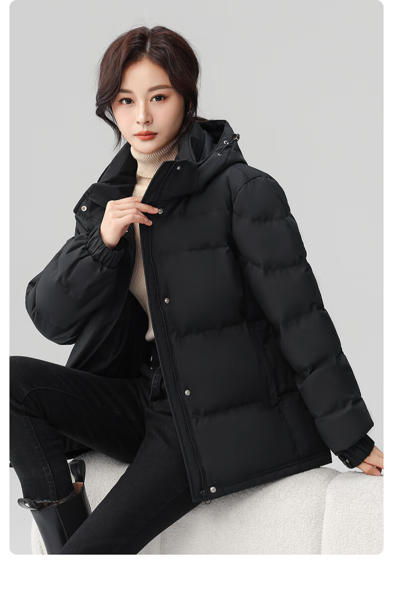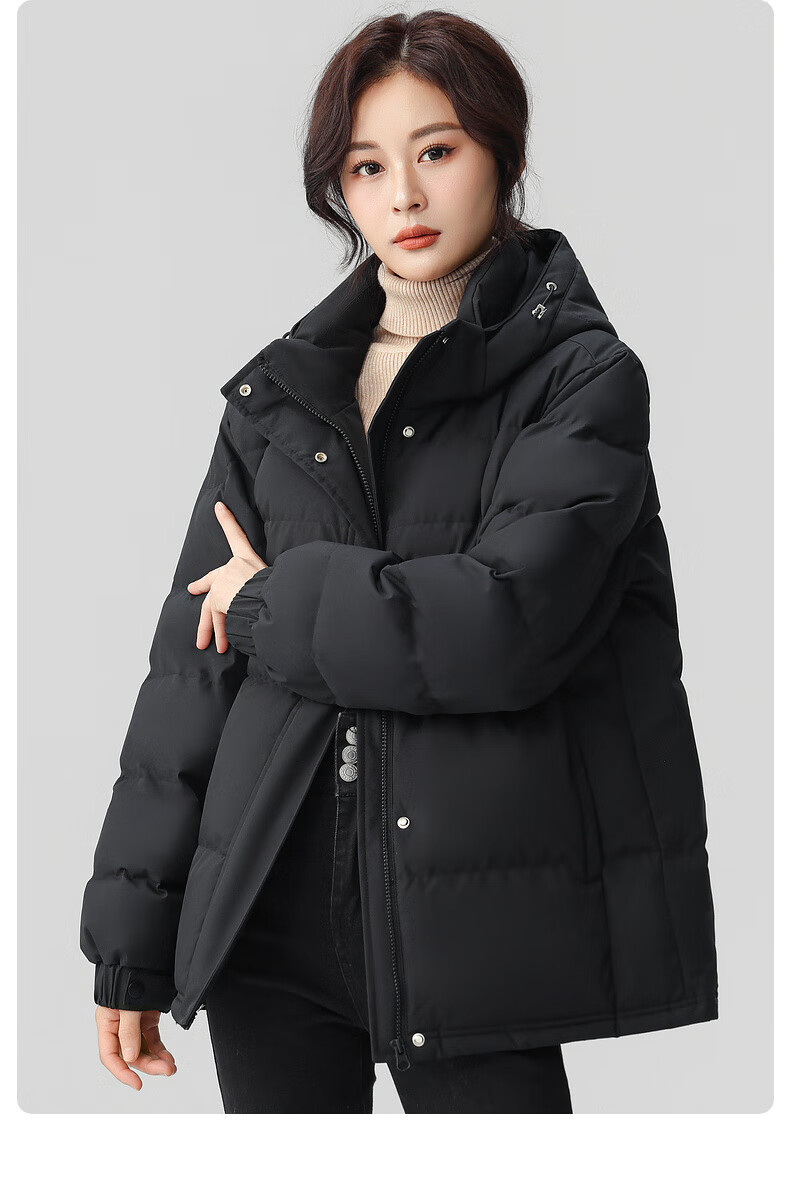 鸭鸭(YAYA)羽绒服女短款2025年冬季最新款时尚百搭宽松休闲保暖小个子外套 黑色 XL (建议140-155斤)