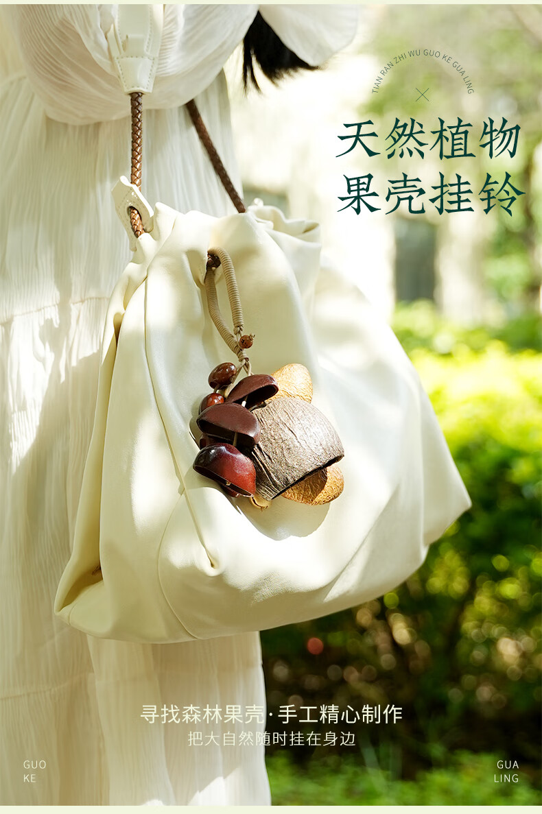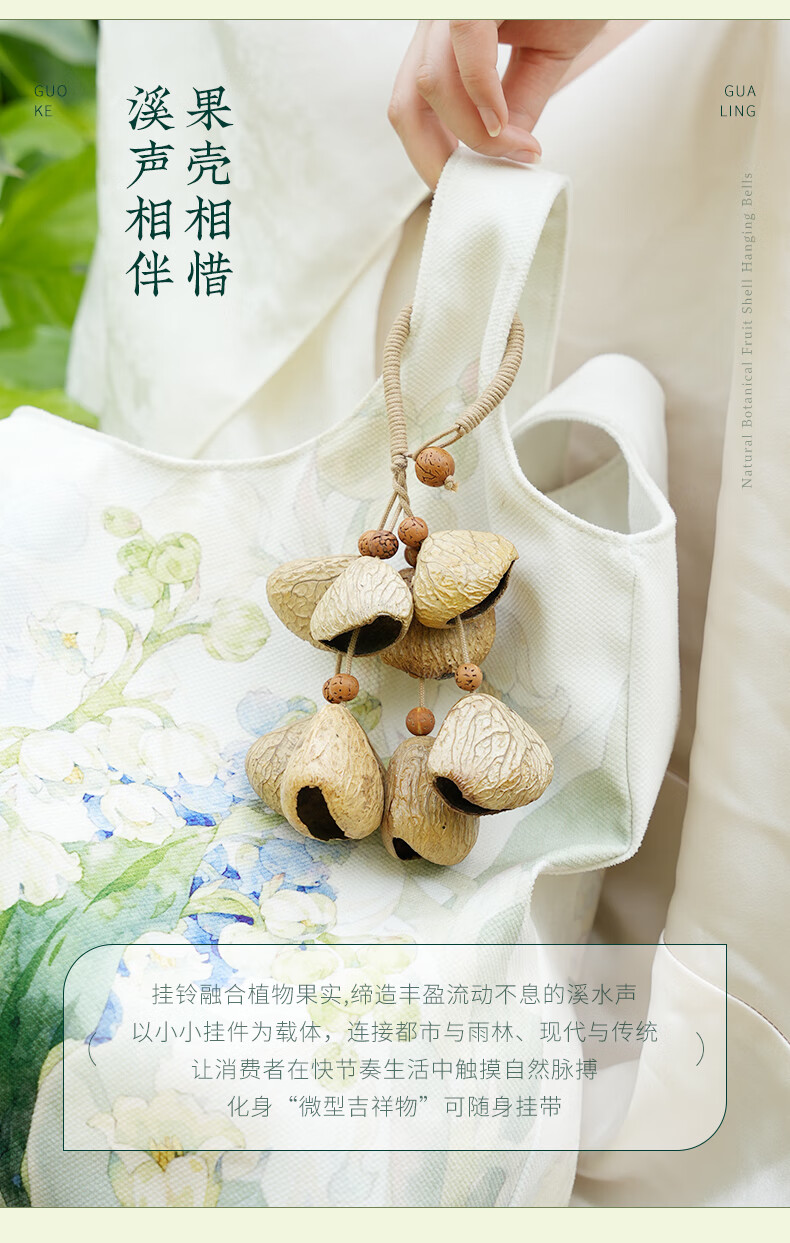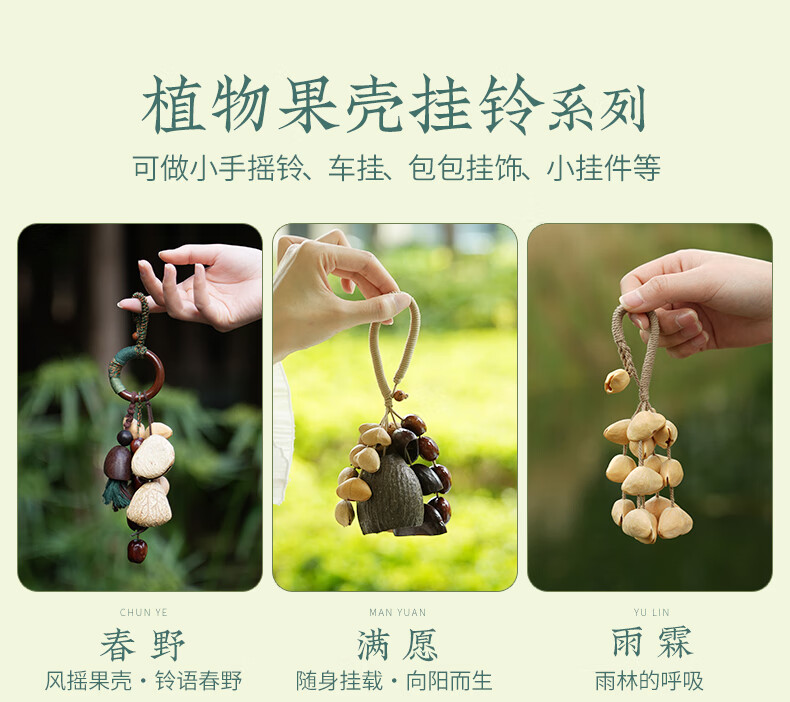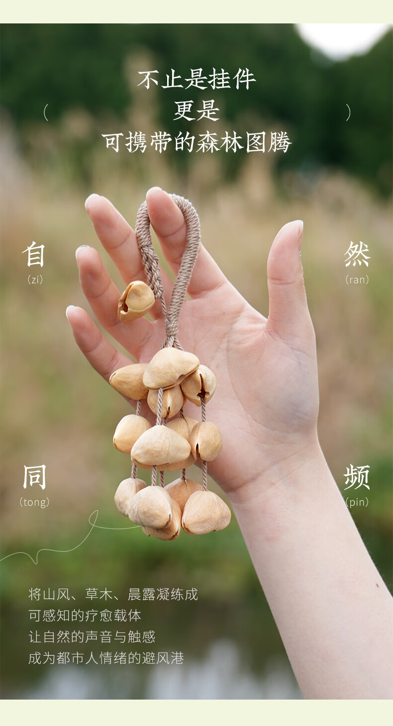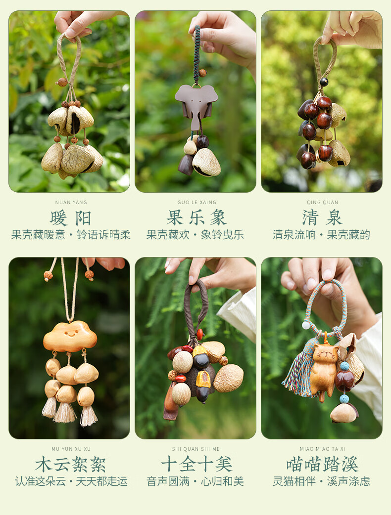 云愈坚果壳音疗挂铃满愿果壳挂件背包配饰手摇铃果壳风铃包包挂串 喵喵踏溪挂铃*1 倾听自然/独特音色/手工风铃