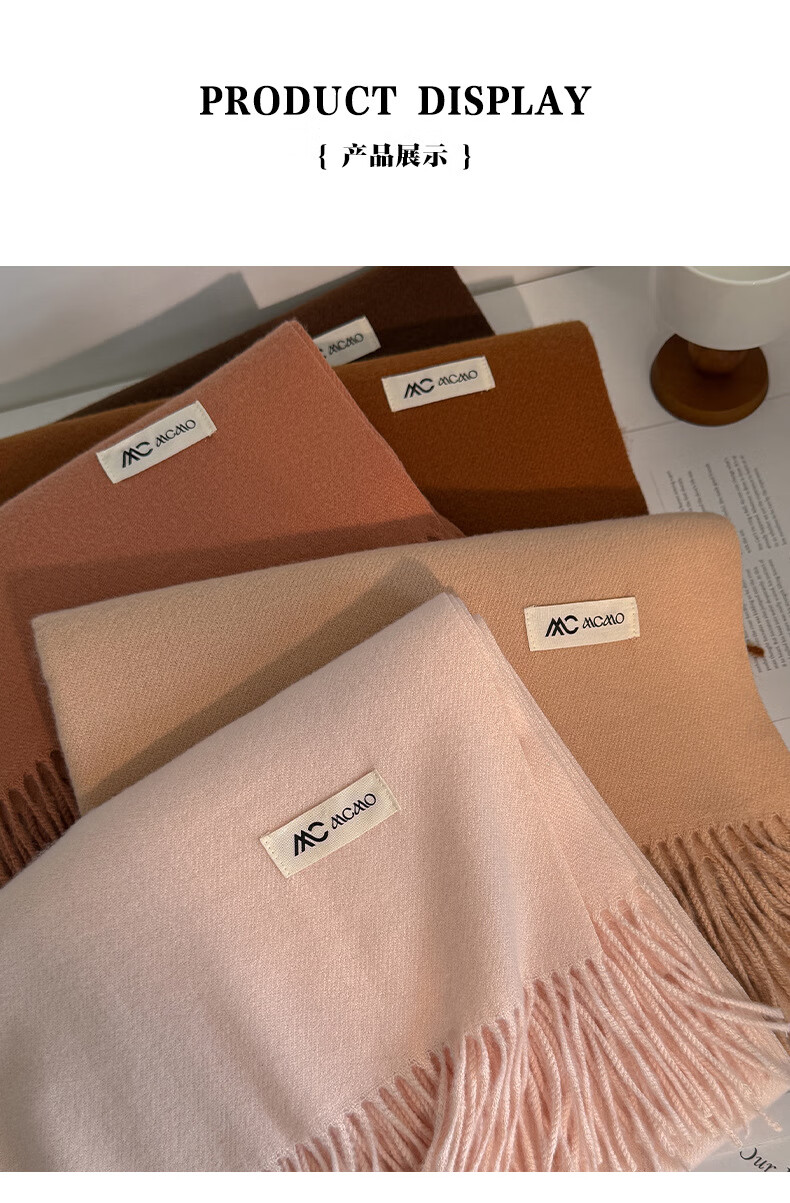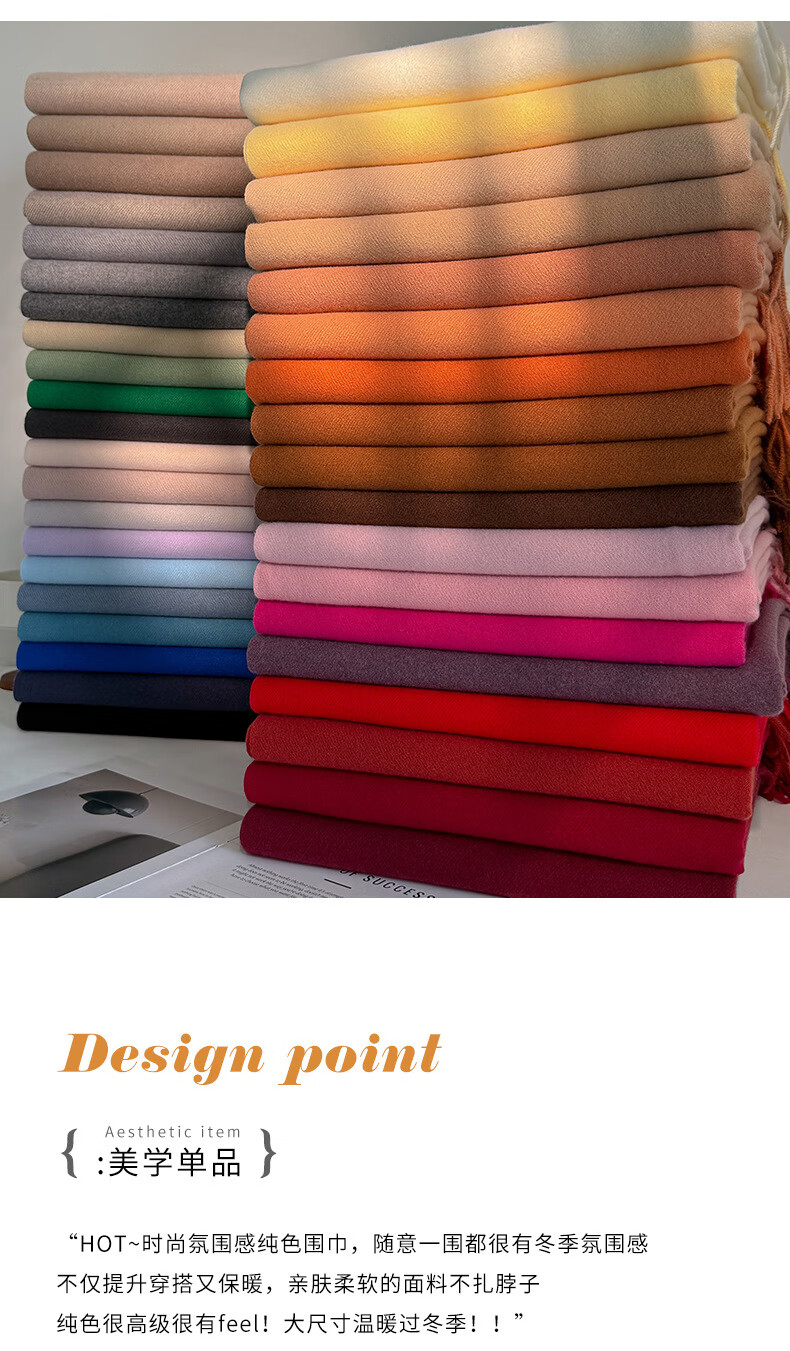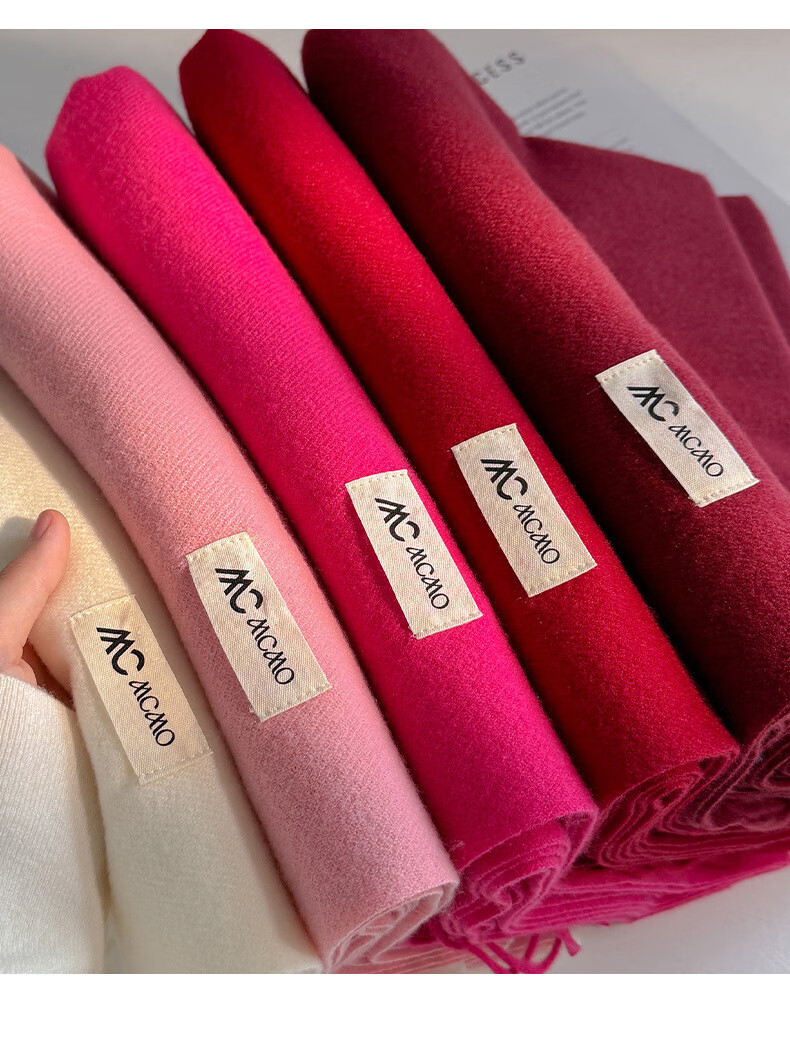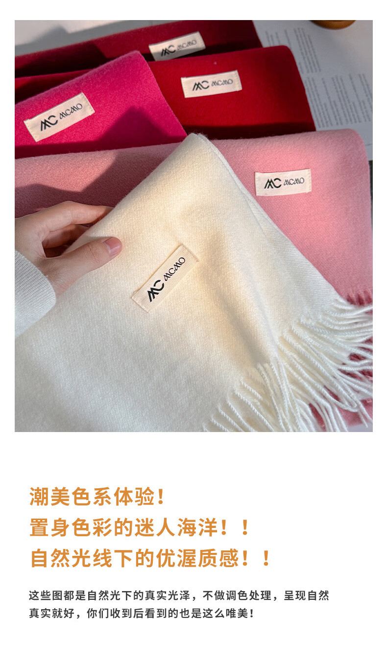 2025刺毛纯色围巾女冬季男女通用披肩300g长保暖加厚仿羊绒围 01#中国红 200*70cm
