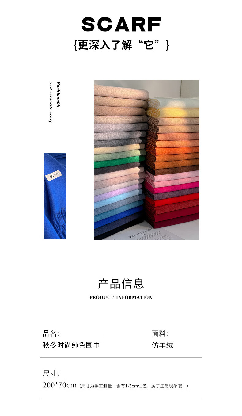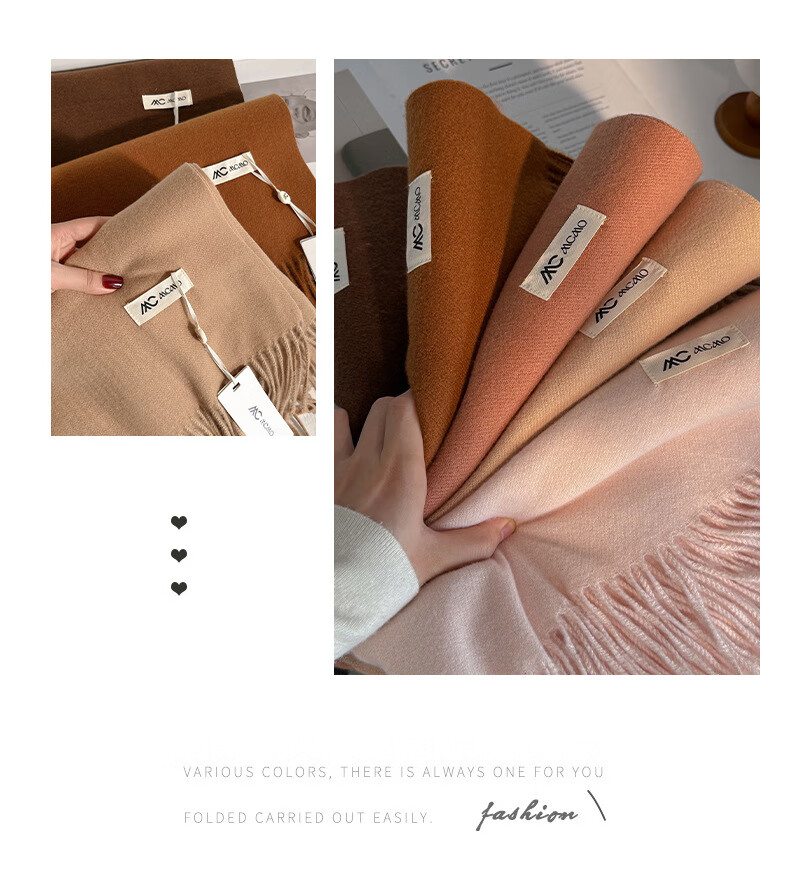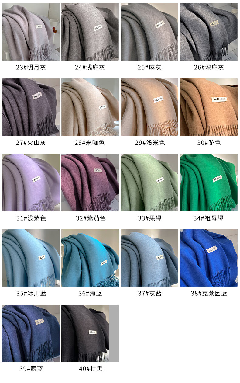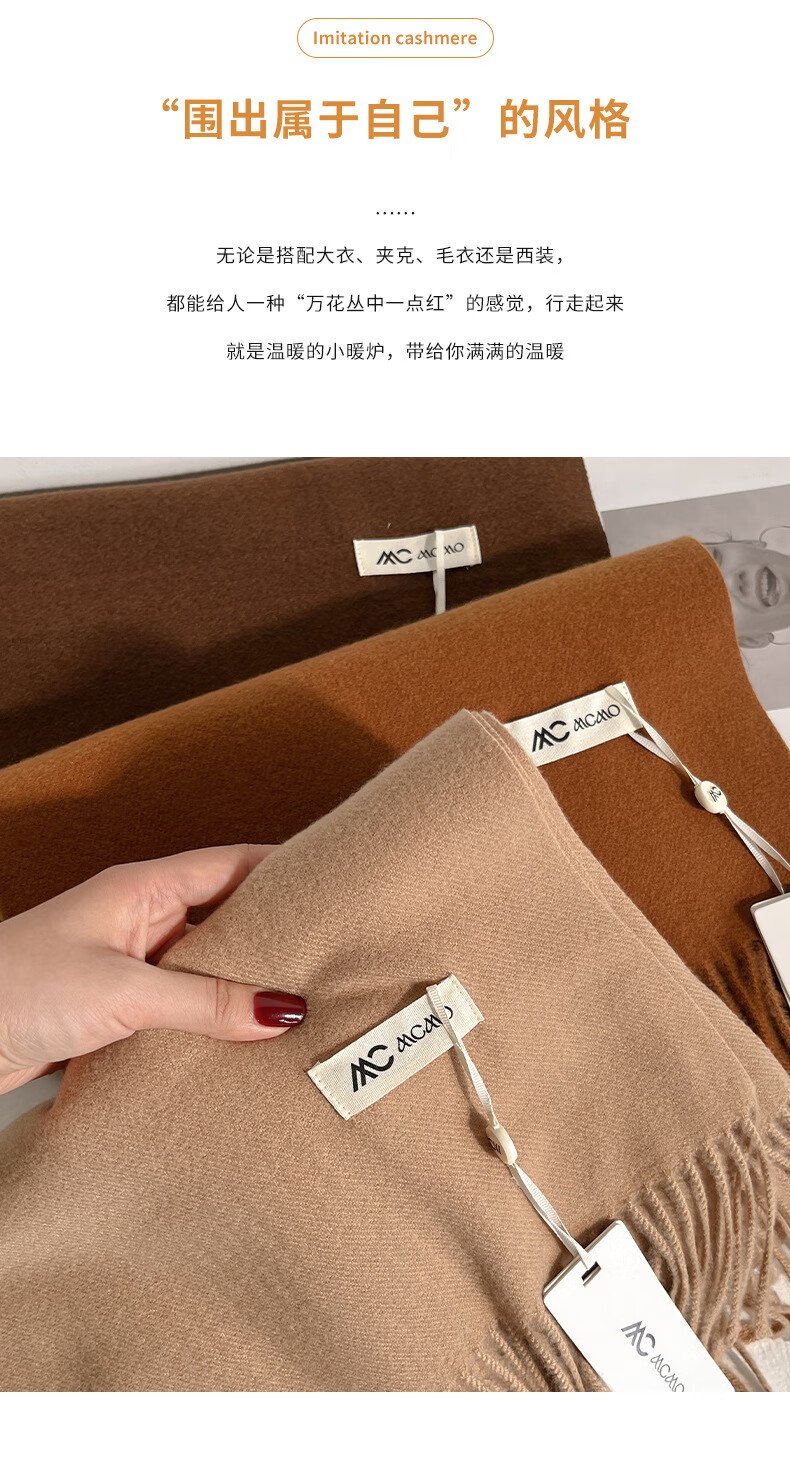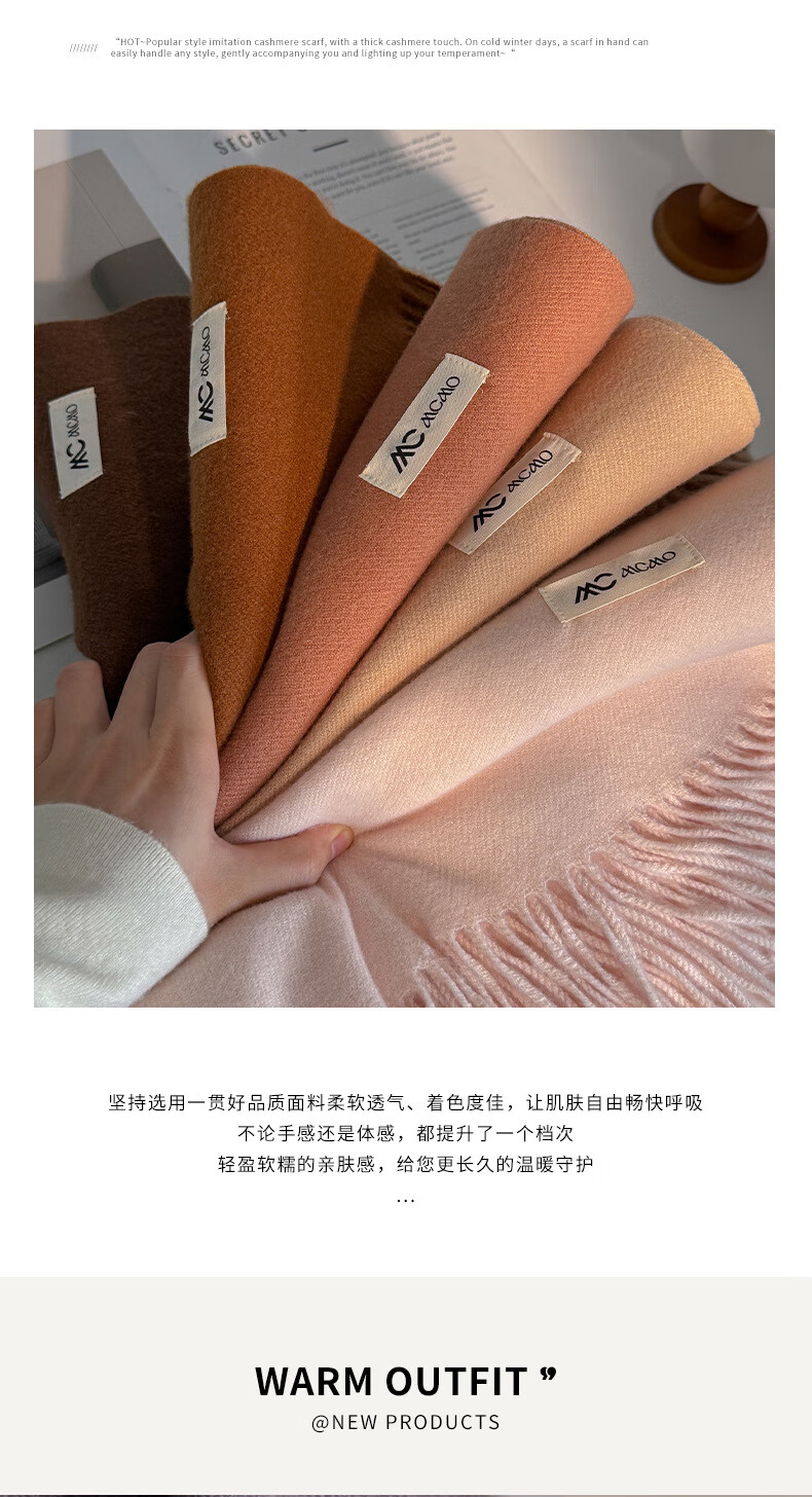 2025刺毛纯色围巾女冬季男女通用披肩300g长保暖加厚仿羊绒围 01#中国红 200*70cm
