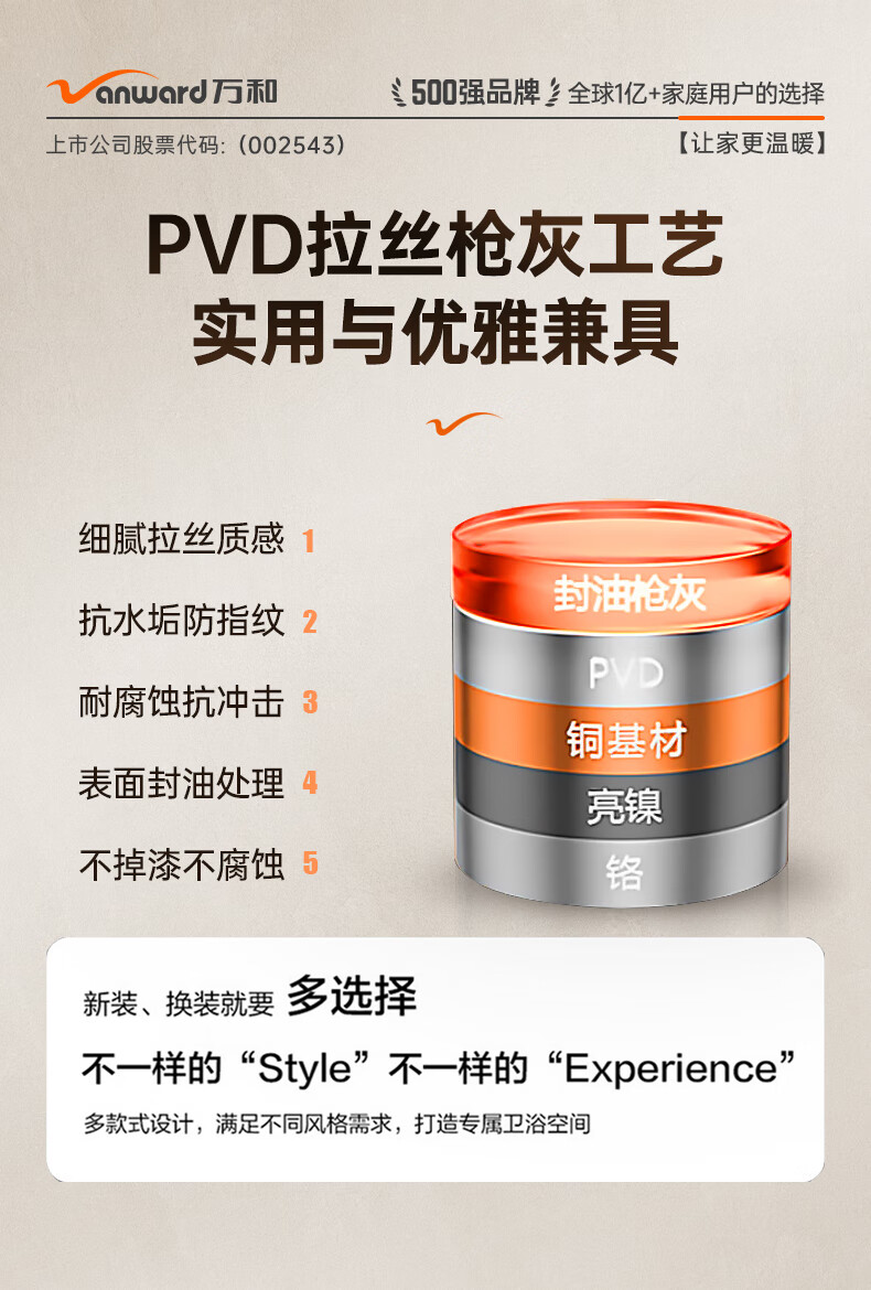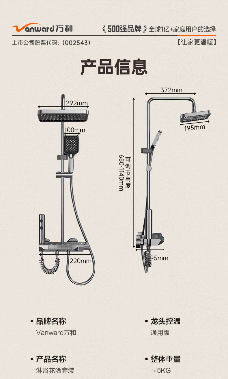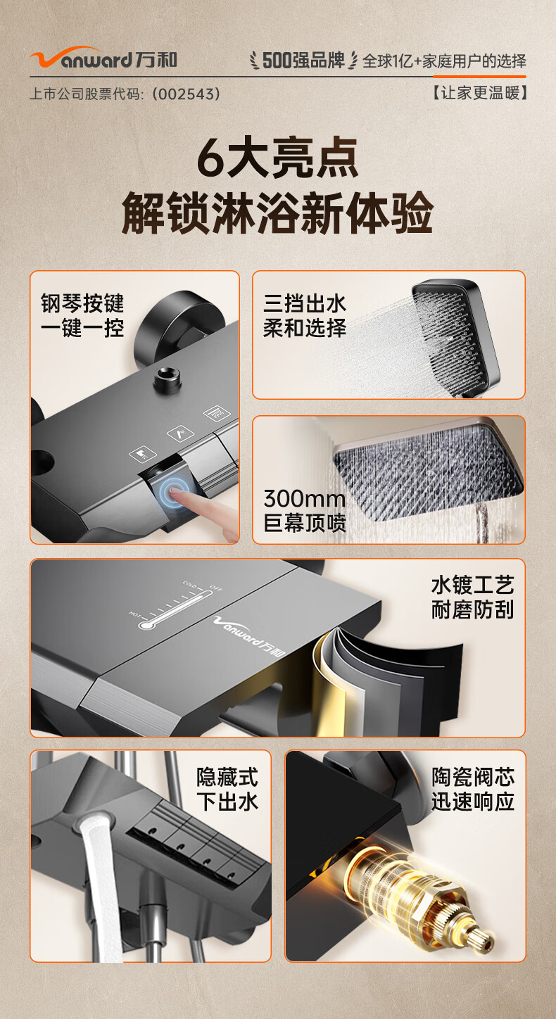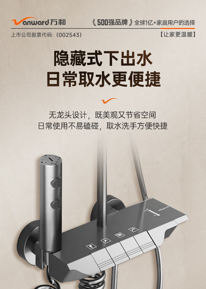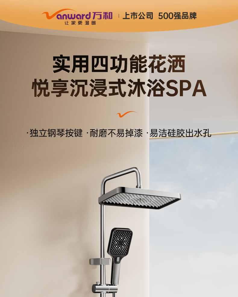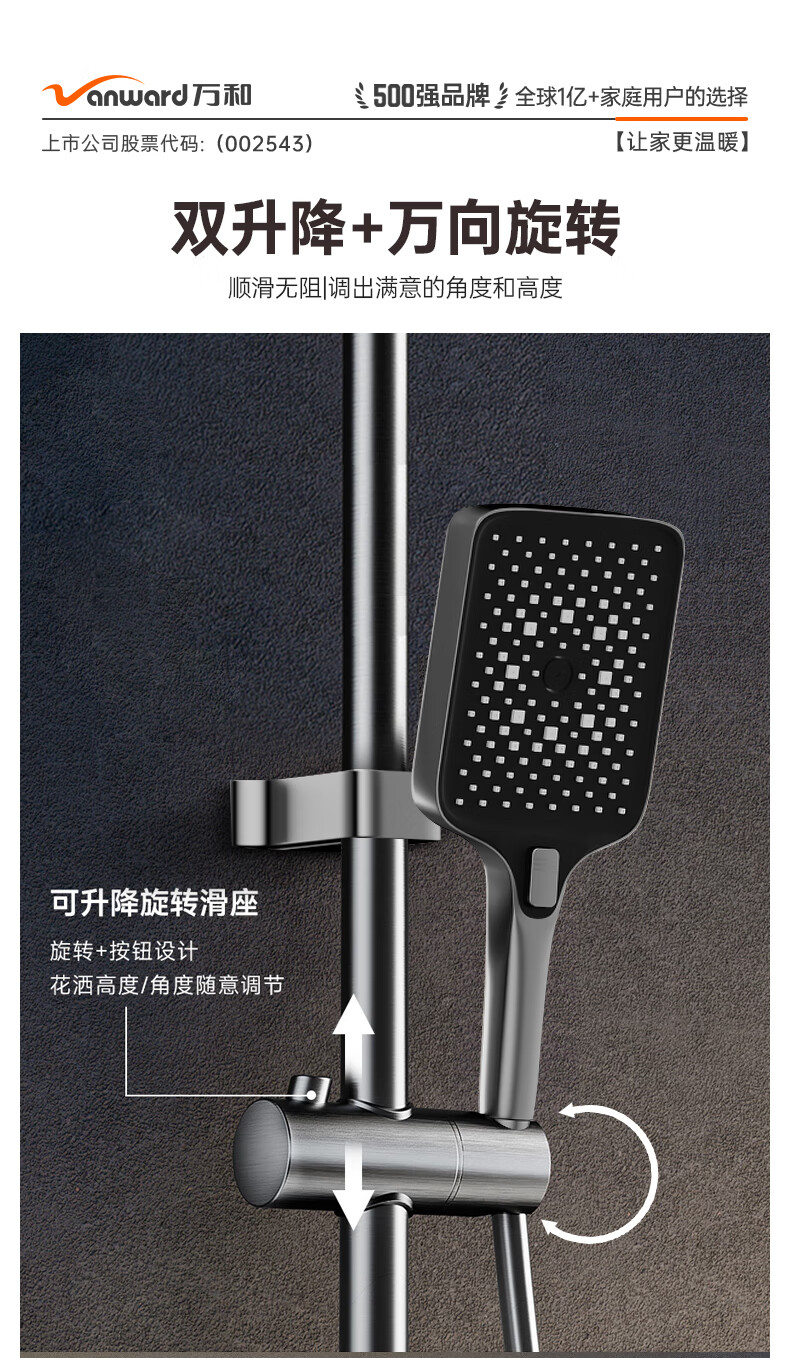万和(Vanward)淋浴花洒套装花洒全套家用枪灰琴键增压花洒喷头浴室淋浴器7052Q