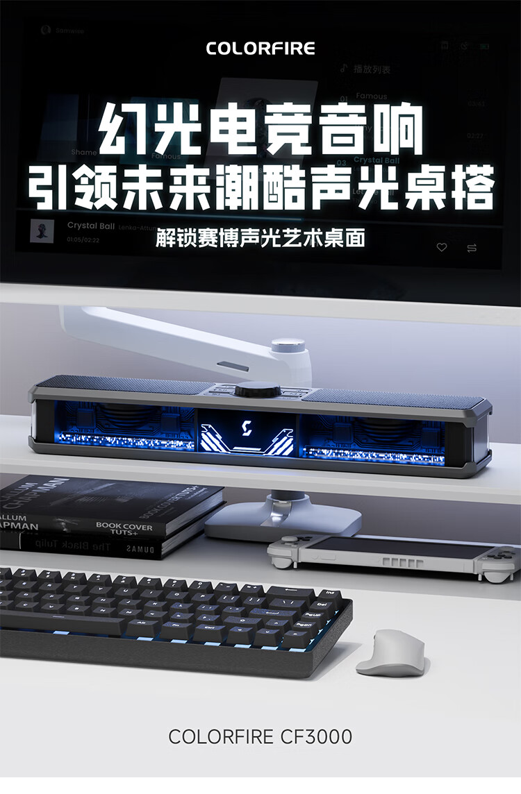 COLORFIRE七彩虹幻光电竞音响模拟水冷RGB桌面蓝牙5.3电脑多媒体音箱台式机笔记本低音炮圣诞礼物男生CF3000