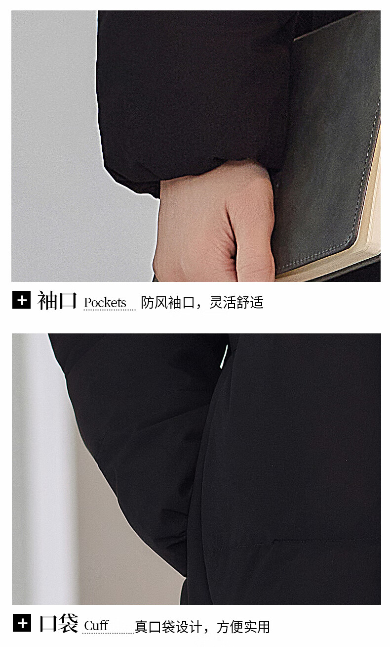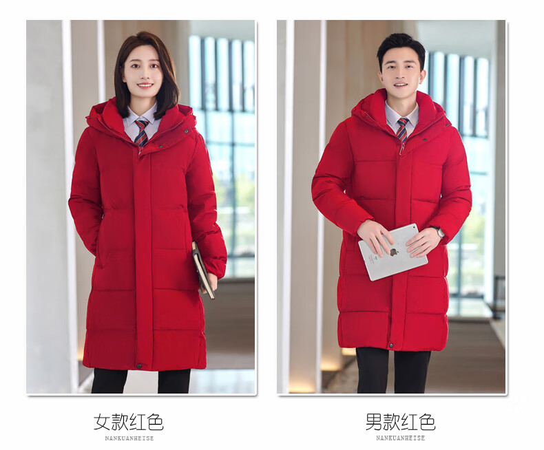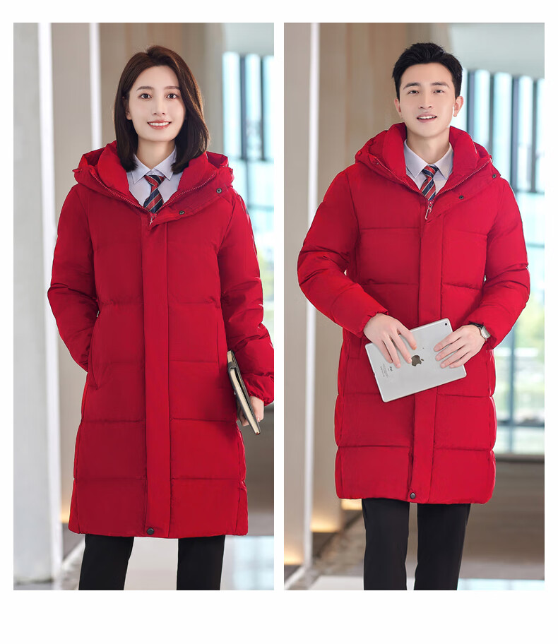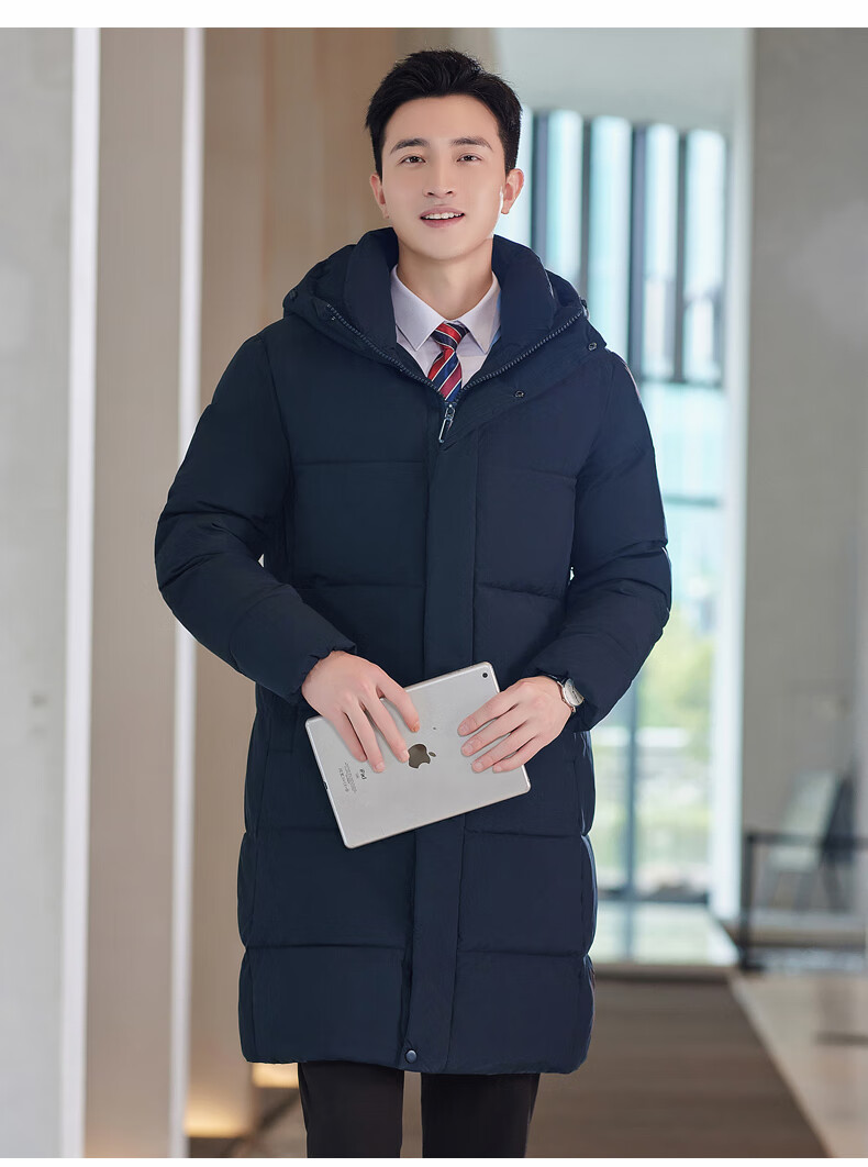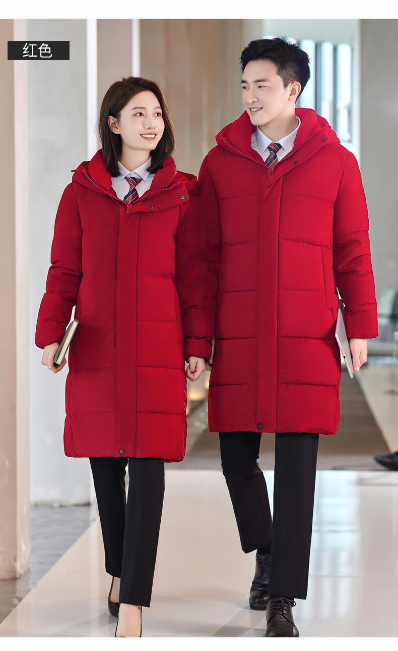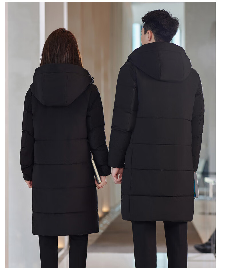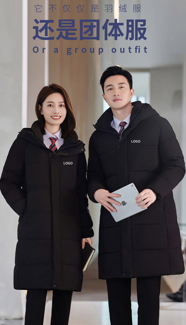 啄木鸟藏青色职业装羽绒服男女冬中长款银行酒店4S店经理工作服logo 黑色白鸭.绒羽绒服【女通码】 可拆卸帽子 S 【建议90-斤】