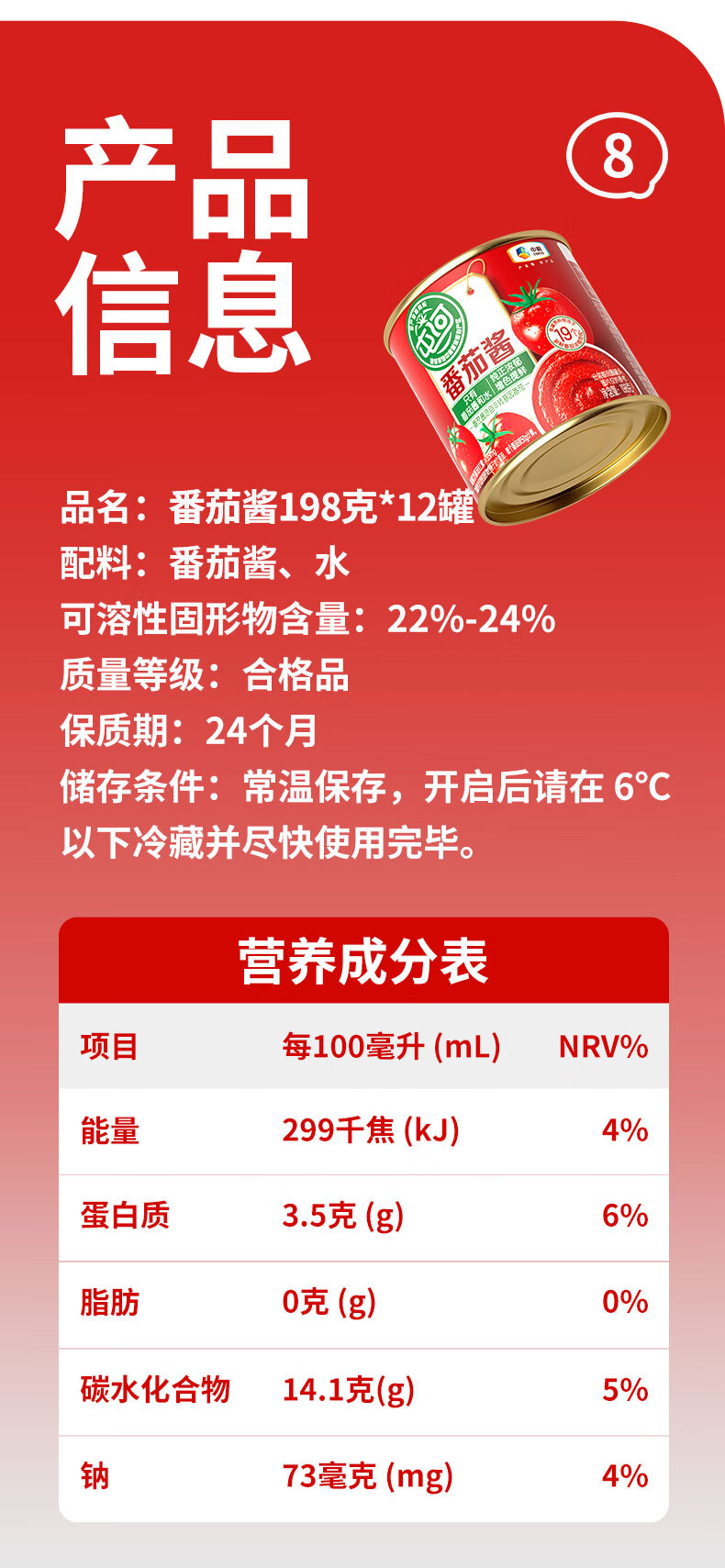 屯河番茄酱198g*12整箱 0添加剂新疆内蒙番茄罐头番茄膏意面酱中粮