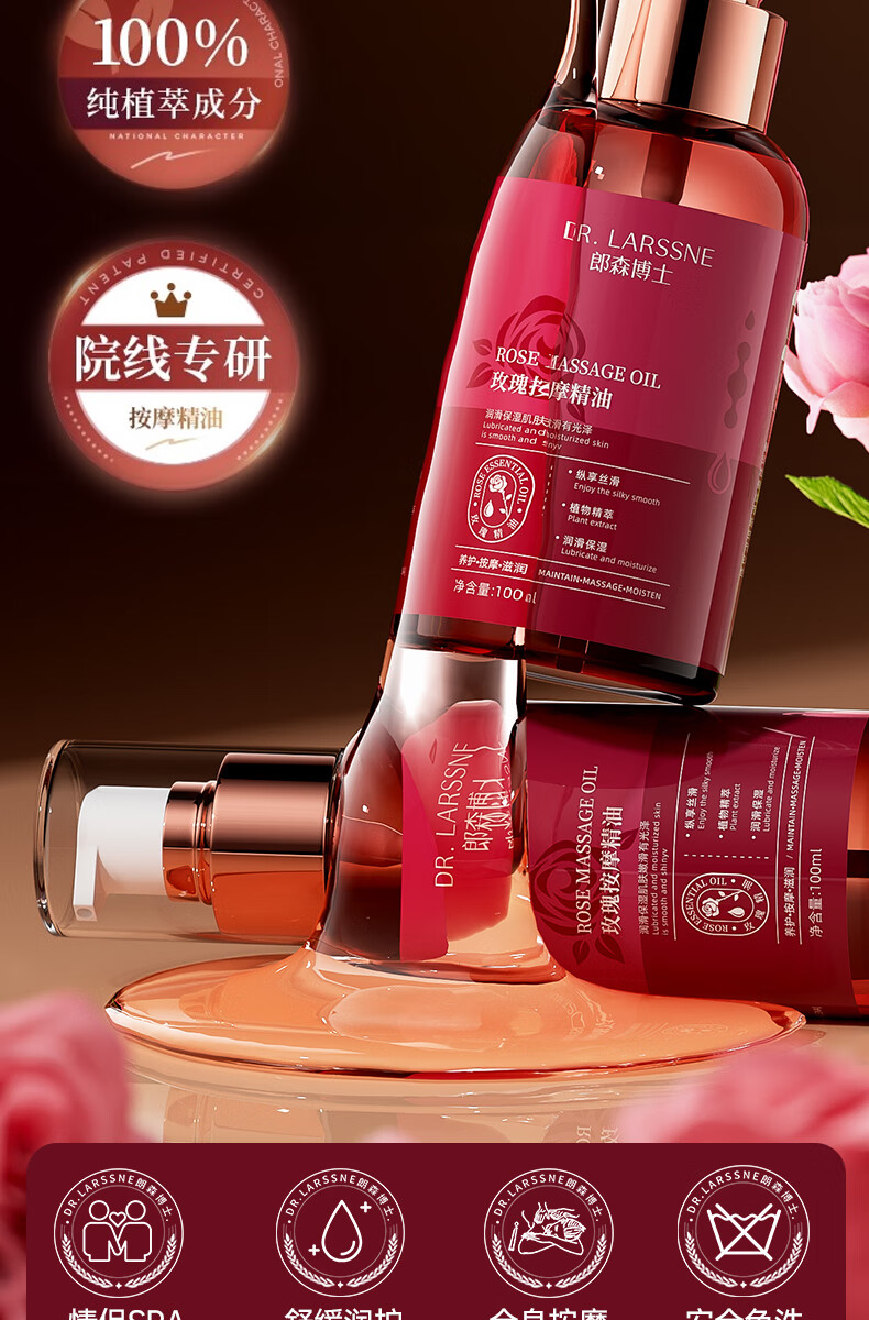 DR.LARSSNE 郎森博士玫瑰按摩精油情侣发热润滑成人开背刮痧男女spa全身体免洗通经络