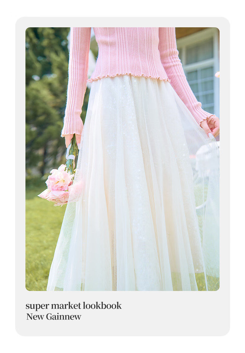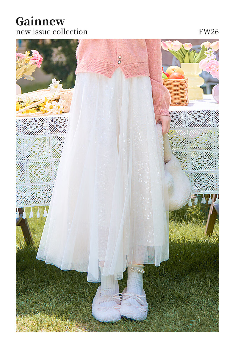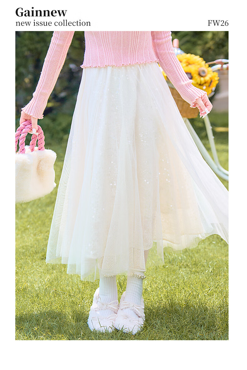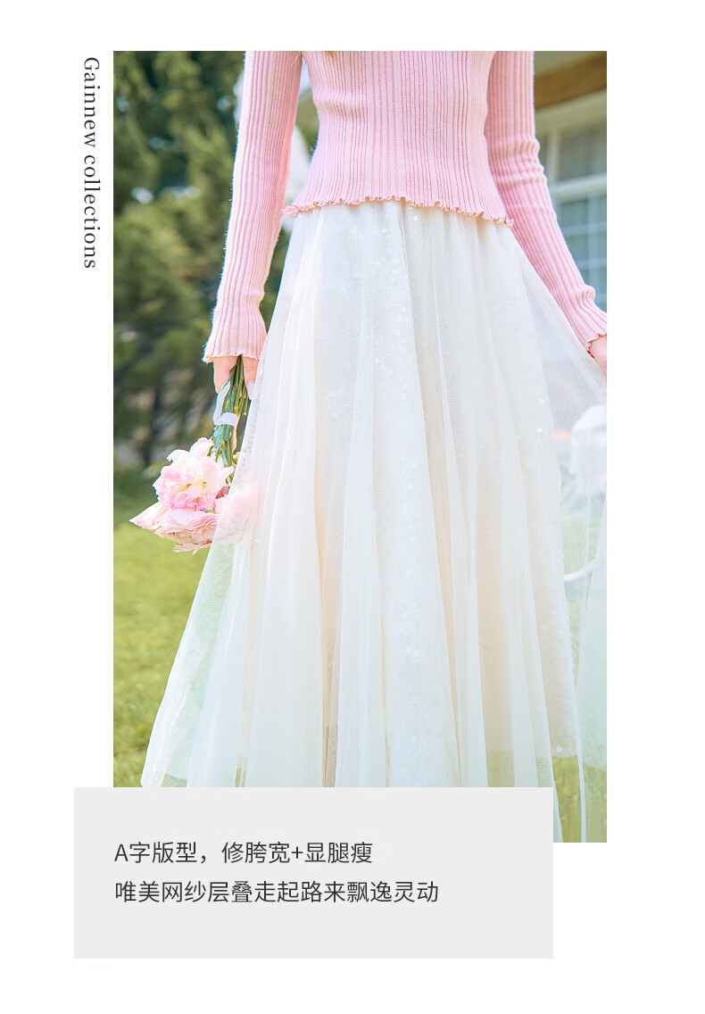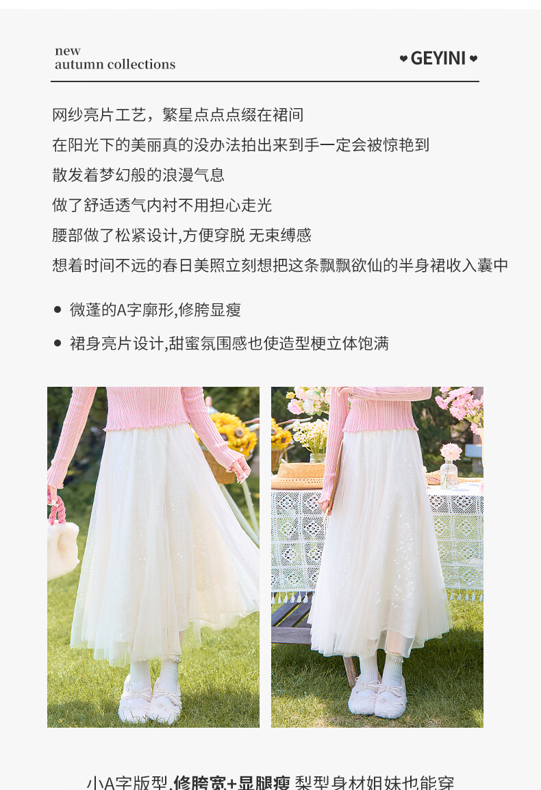 歌依妮杏色a字半身裙女2025秋季新款松紧腰流光纱垂感雪纺半身长裙伞裙 杏色 S