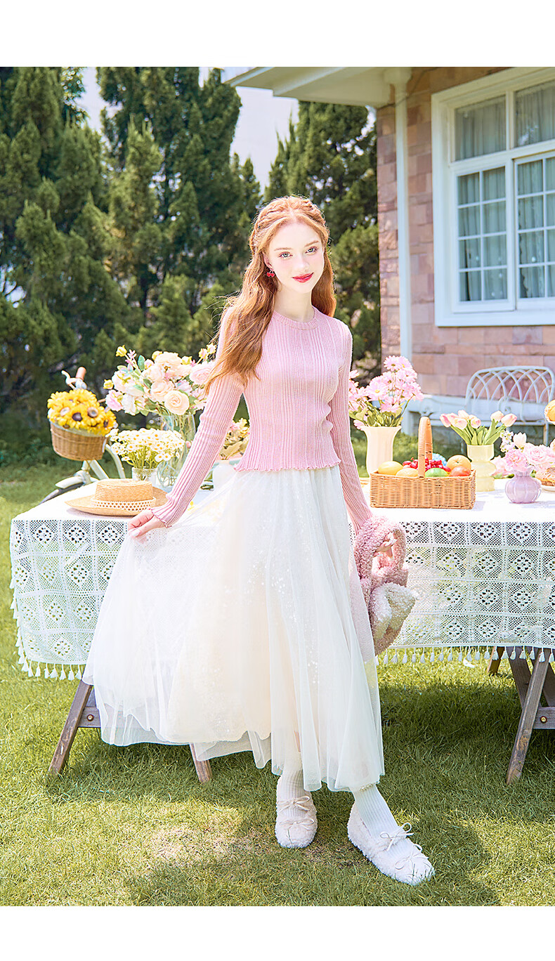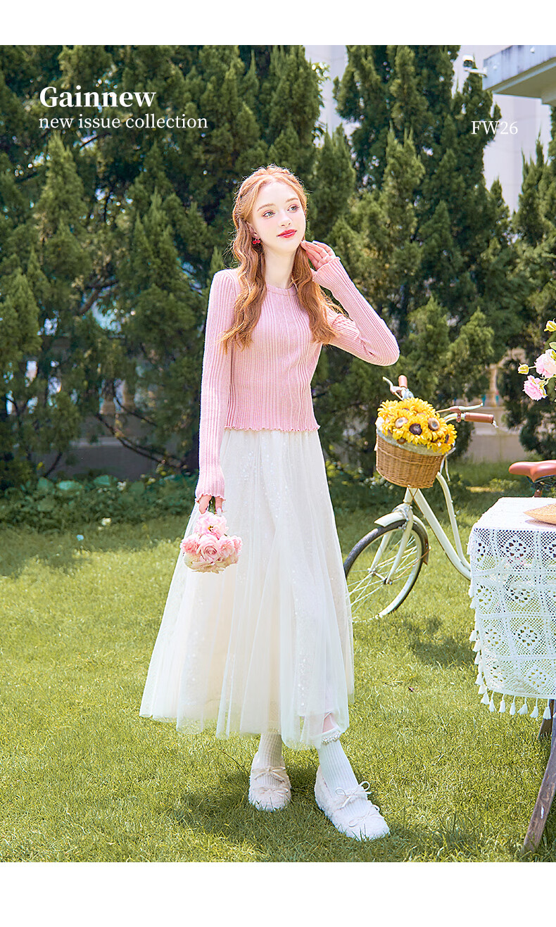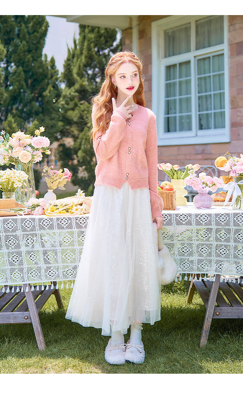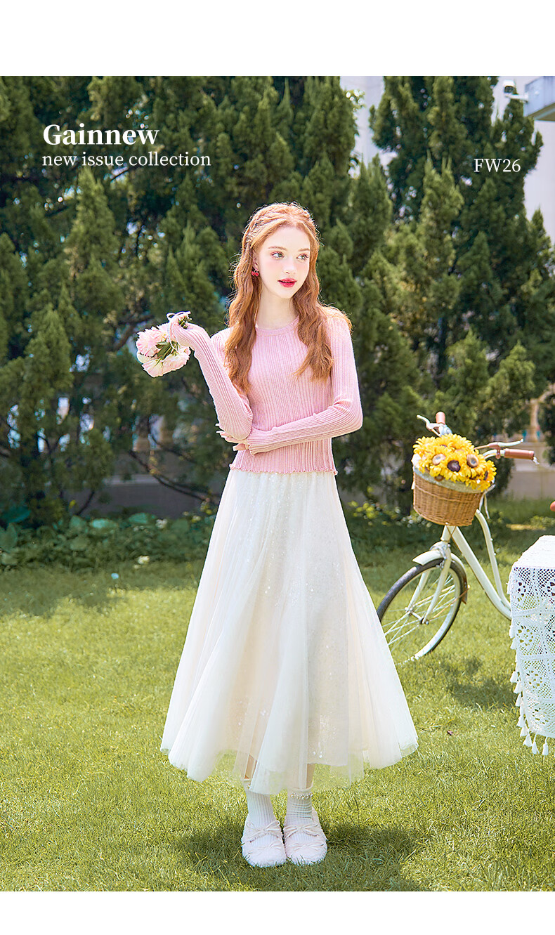 歌依妮杏色a字半身裙女2025秋季新款松紧腰流光纱垂感雪纺半身长裙伞裙 杏色 S