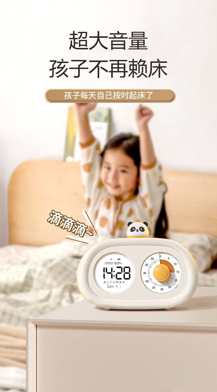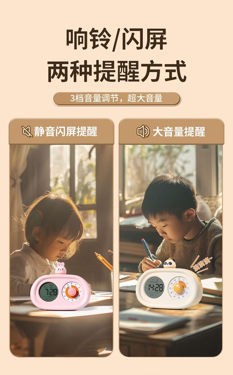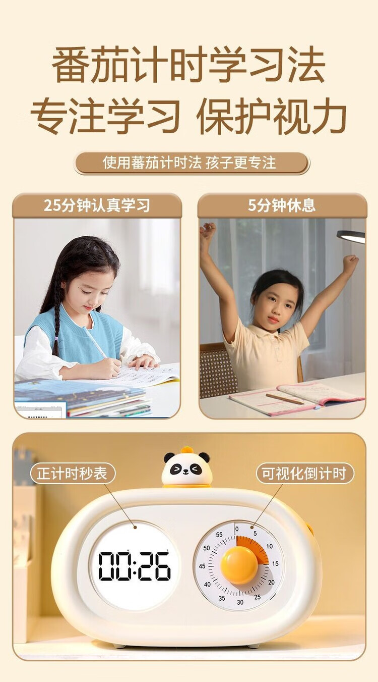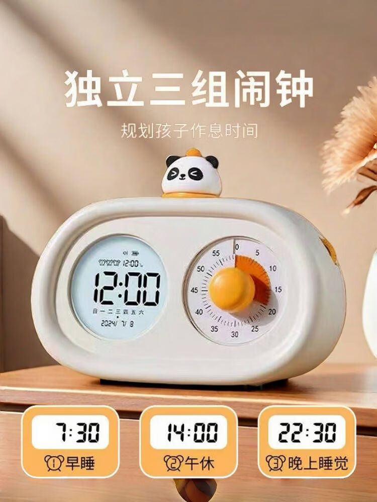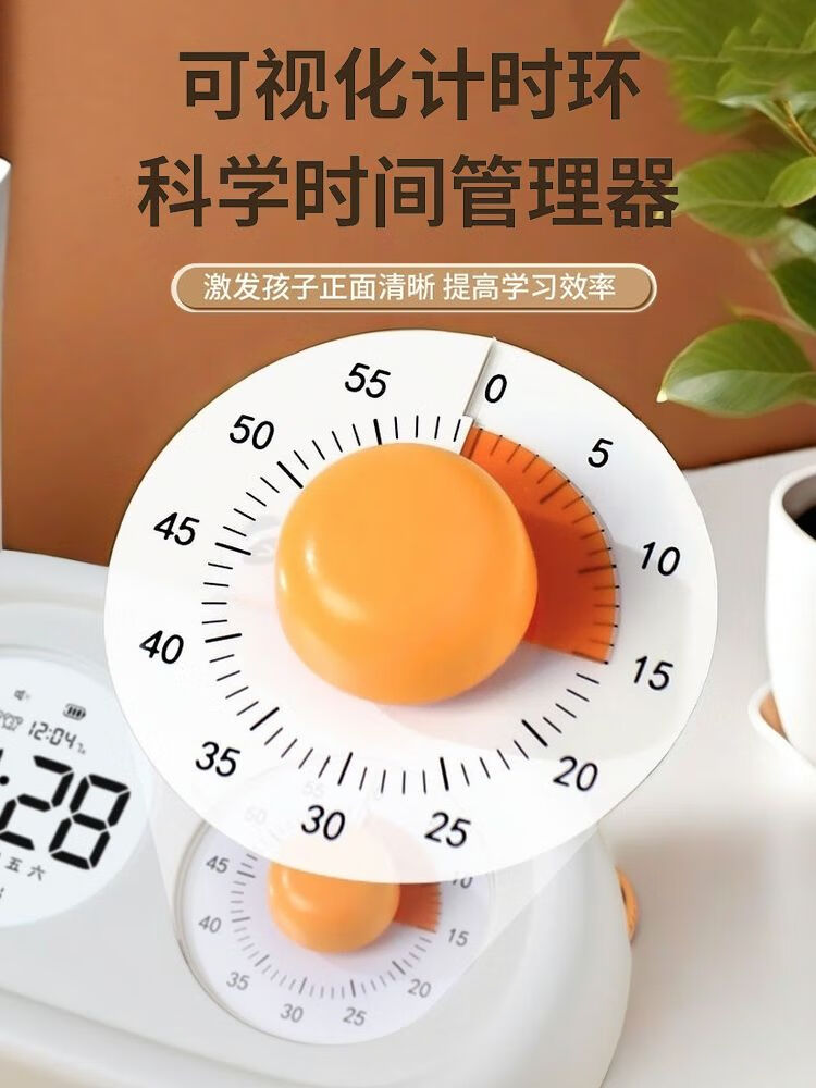 山头林村可视化计时器双屏小学生闹钟可充电二合一智能闹钟番茄时钟 典雅白