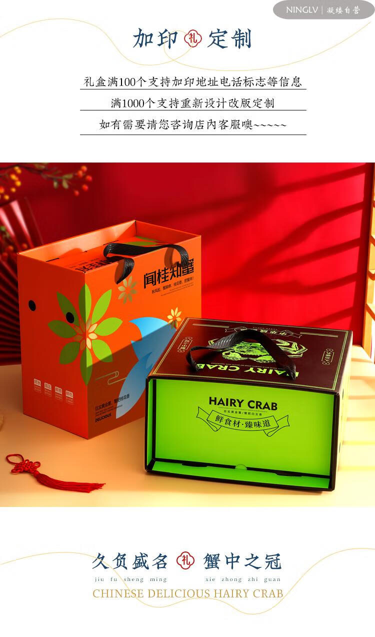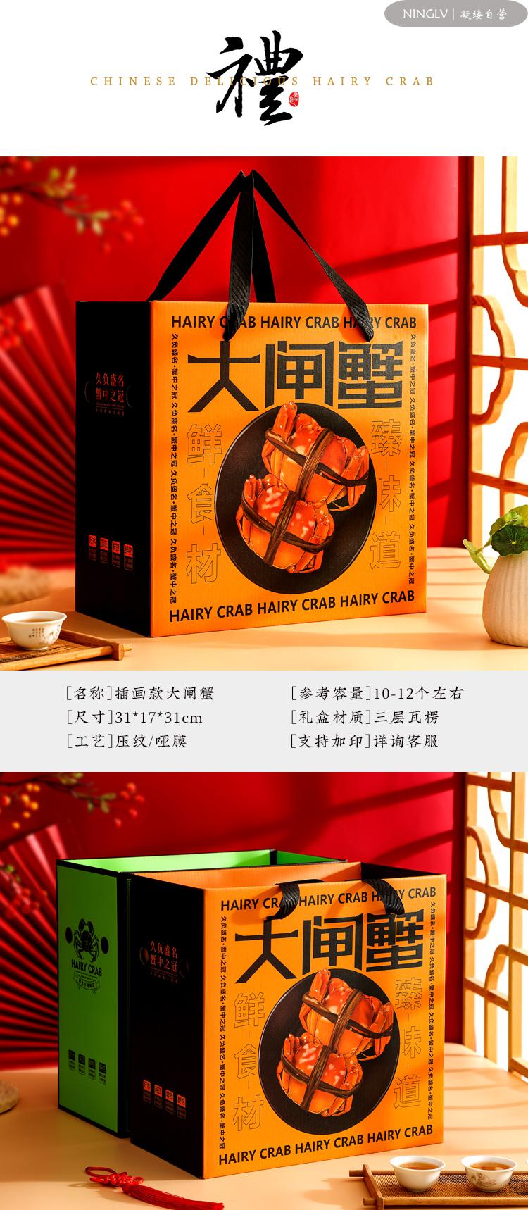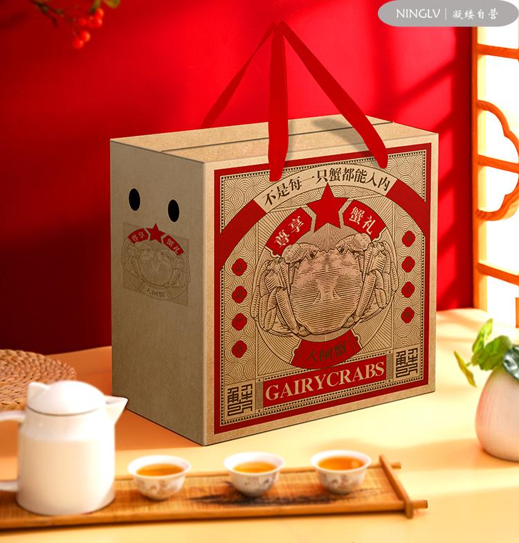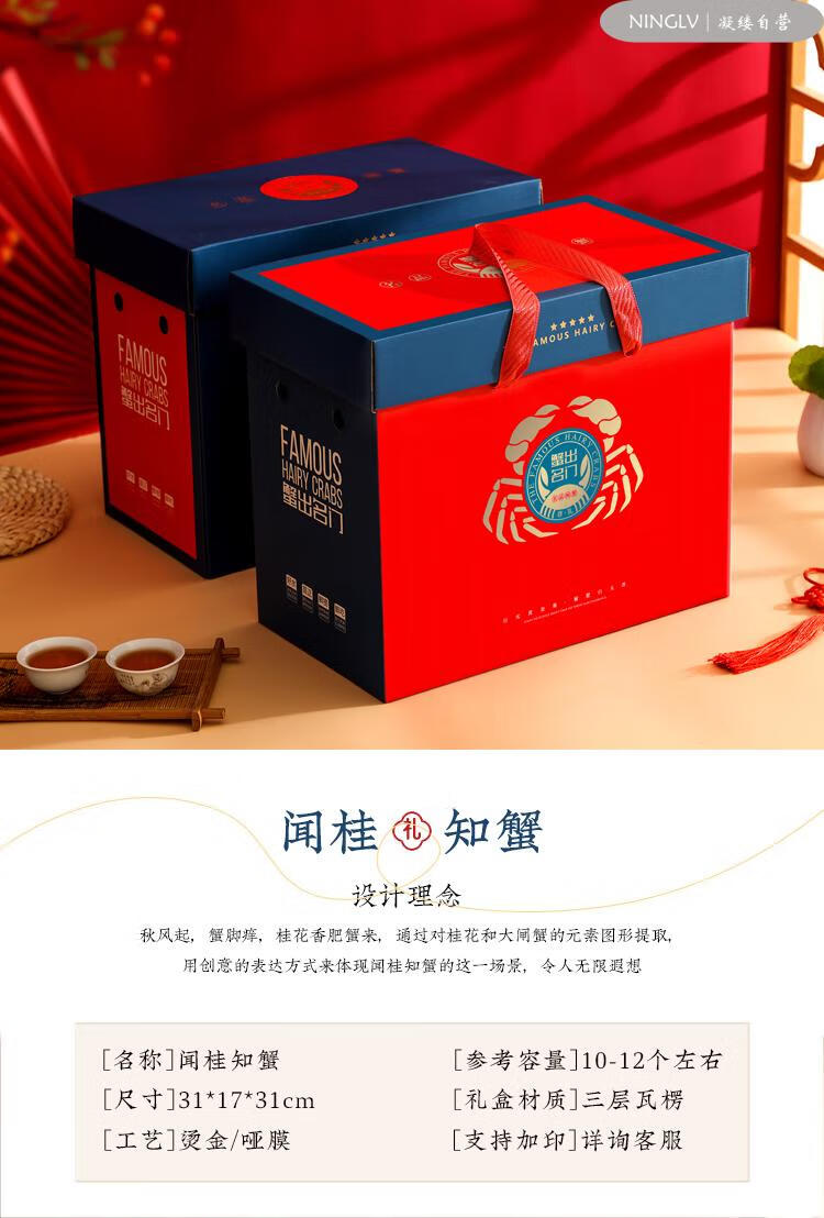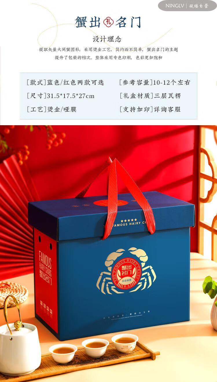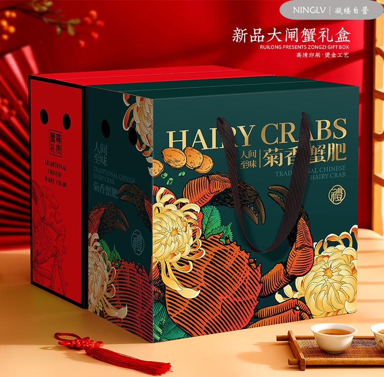 高端大闸蟹礼盒高档包装盒空盒阳澄湖通用海鲜螃蟹醉蟹礼品包装纸 上下盖蟹出名门红色款(上盖+下底)