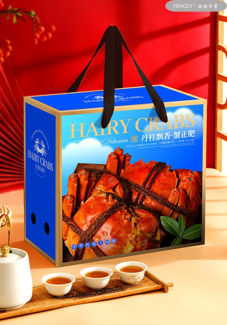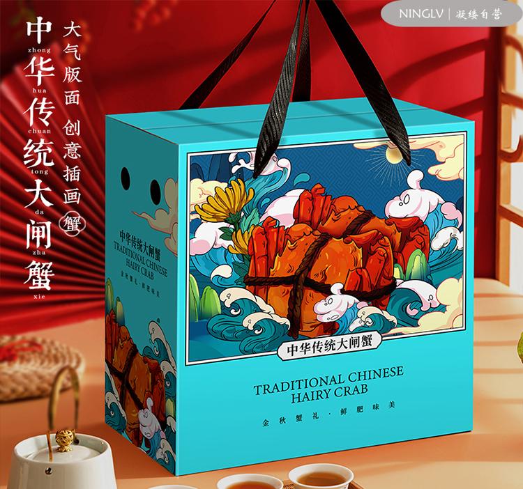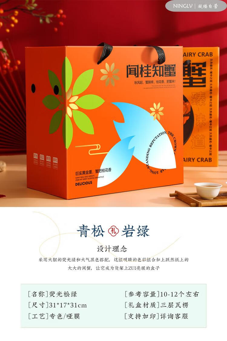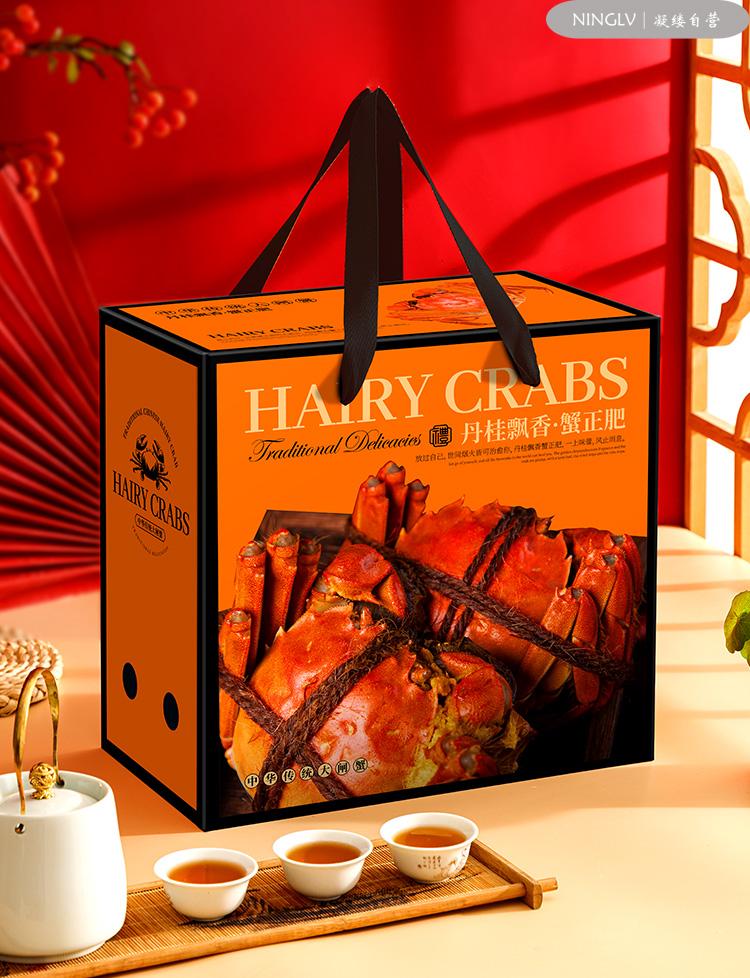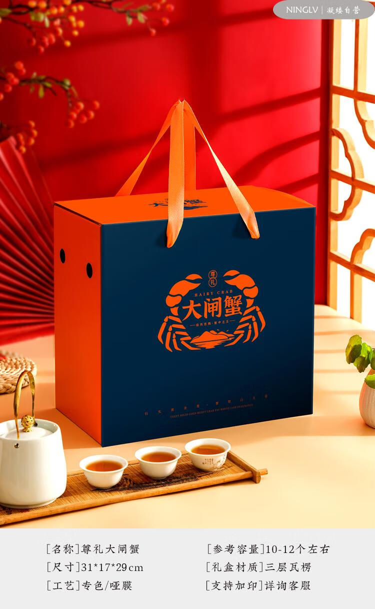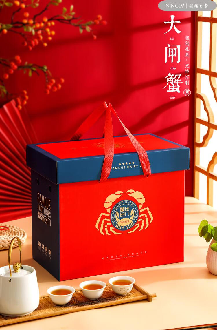高端大闸蟹礼盒高档包装盒空盒阳澄湖通用海鲜螃蟹醉蟹礼品包装纸 上下盖蟹出名门红色款(上盖+下底)