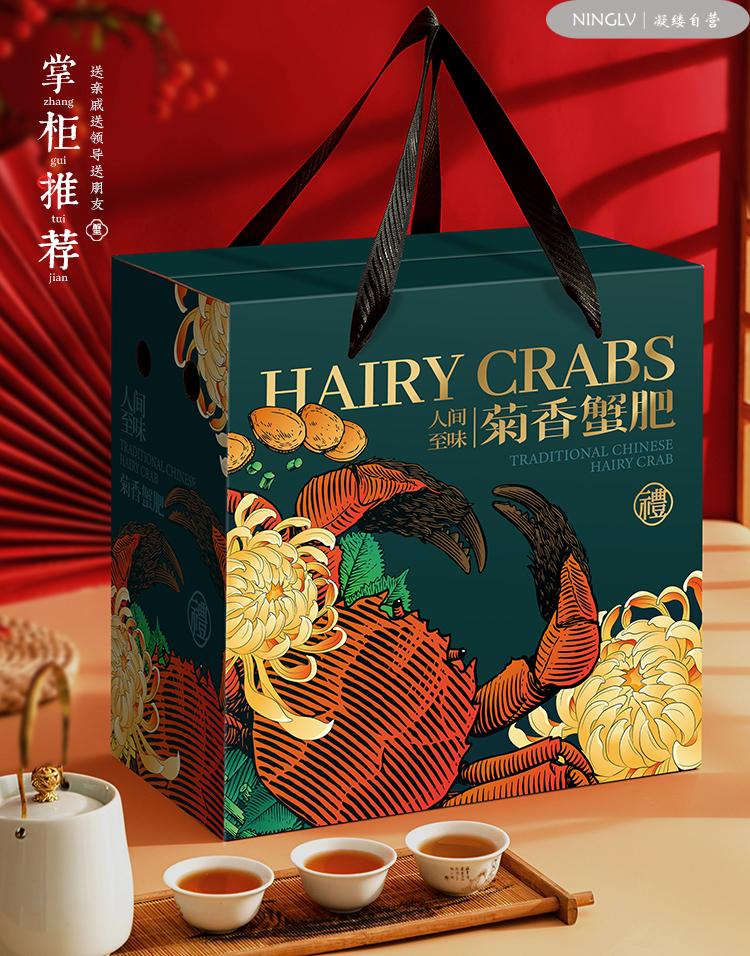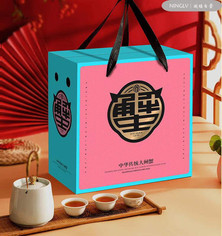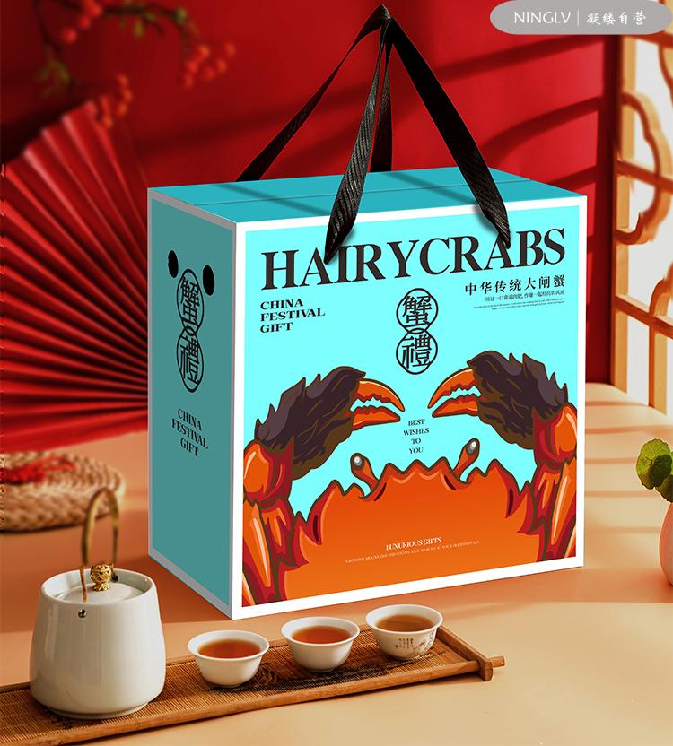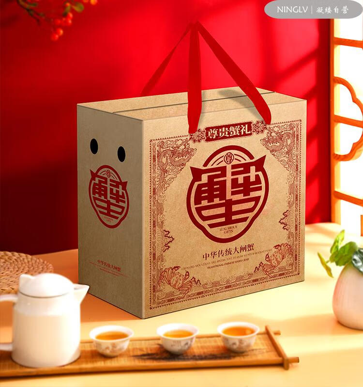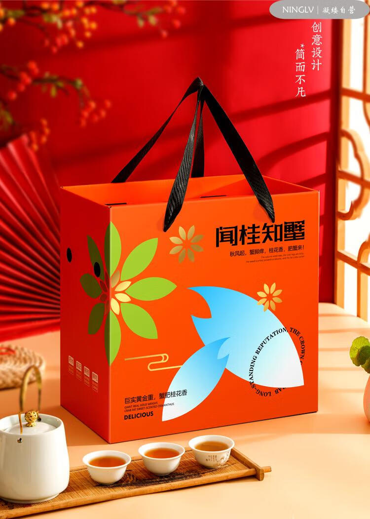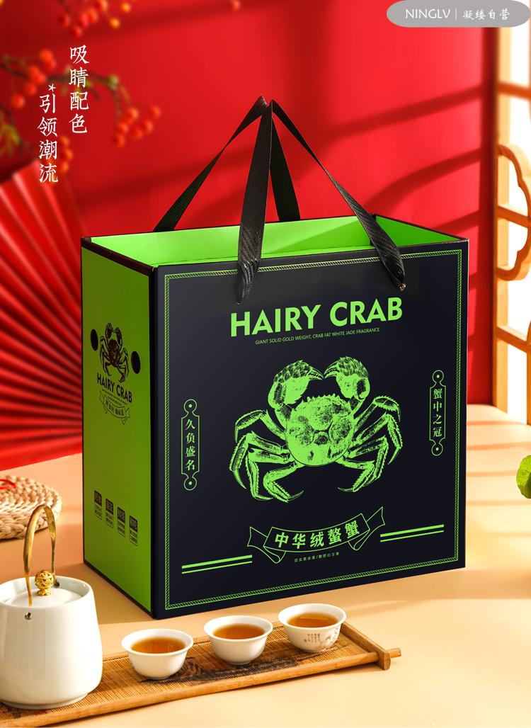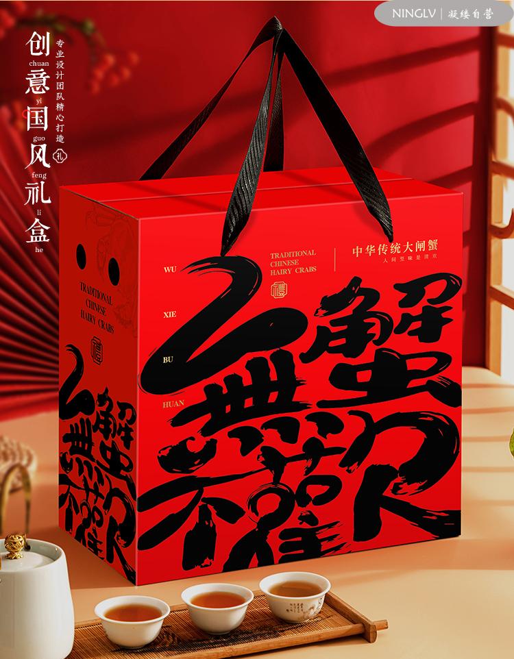 高端大闸蟹礼盒高档包装盒空盒阳澄湖通用海鲜螃蟹醉蟹礼品包装纸 上下盖蟹出名门红色款(上盖+下底)