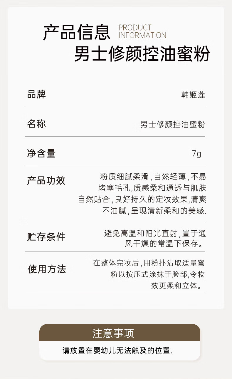XMCK定妆散粉男士修颜控油蜜粉散粉防水定妆修容粉饼哑光 1盒 男士修颜控油蜜粉7g/盒