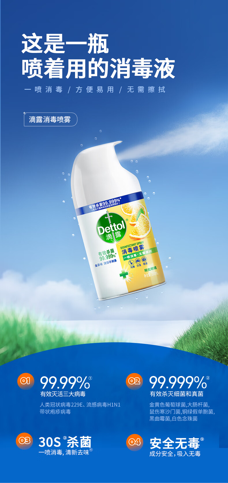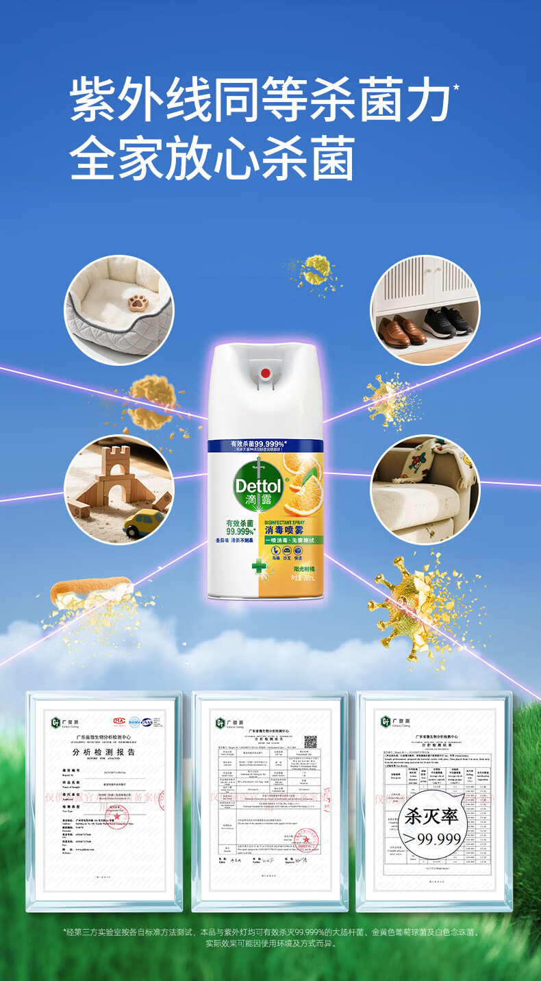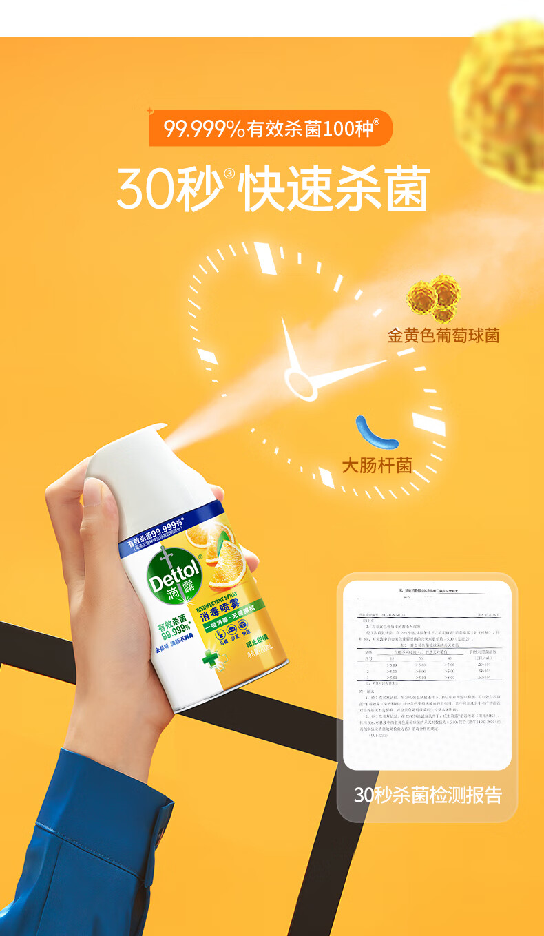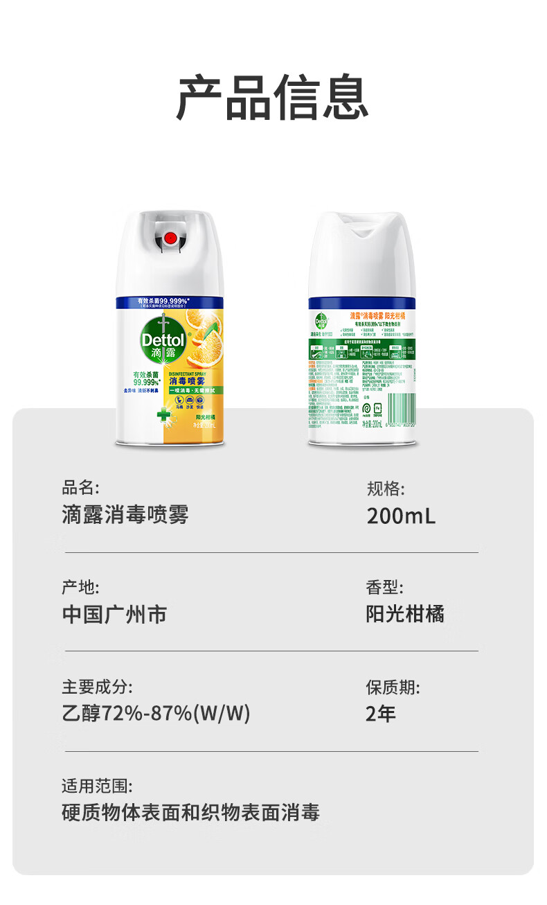 滴露(Dettol)消毒喷雾200ml柑橘除臭喷雾鞋子马桶消毒鞋子除臭杀菌空气清新