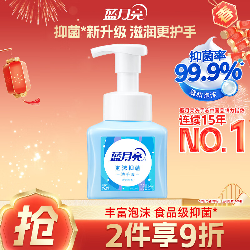 蓝月亮泡沫洗手液健康抑菌99.9% 泡沫丰富滋润易冲洗(琥珀雪松)255ml