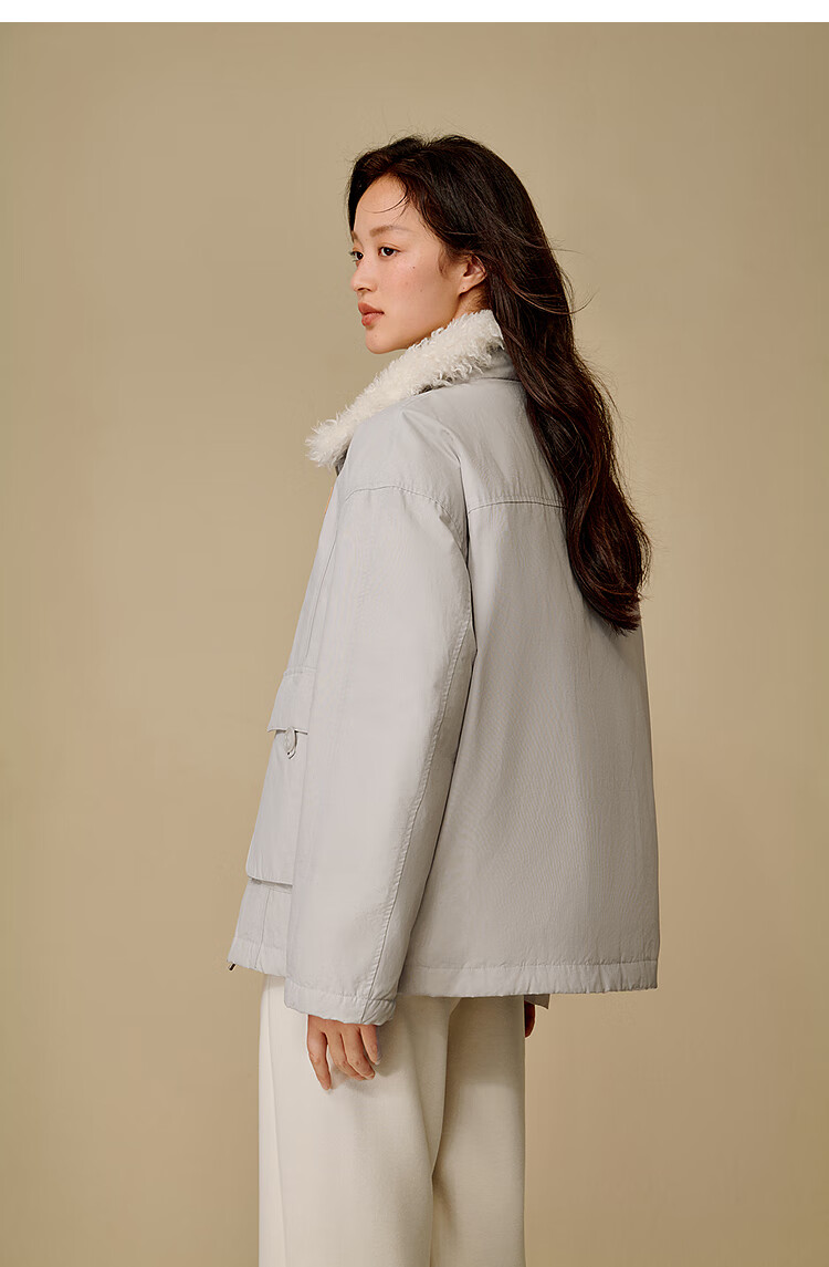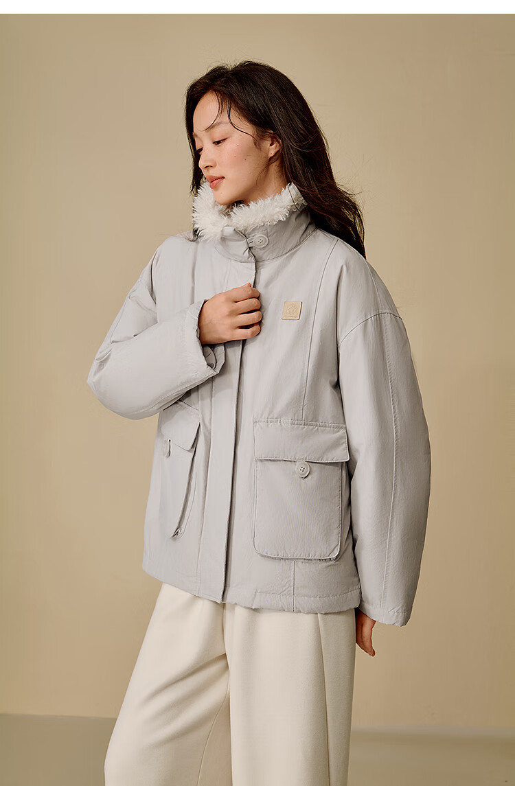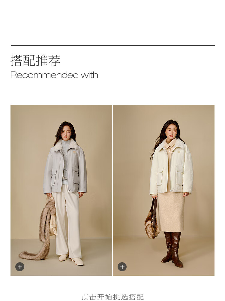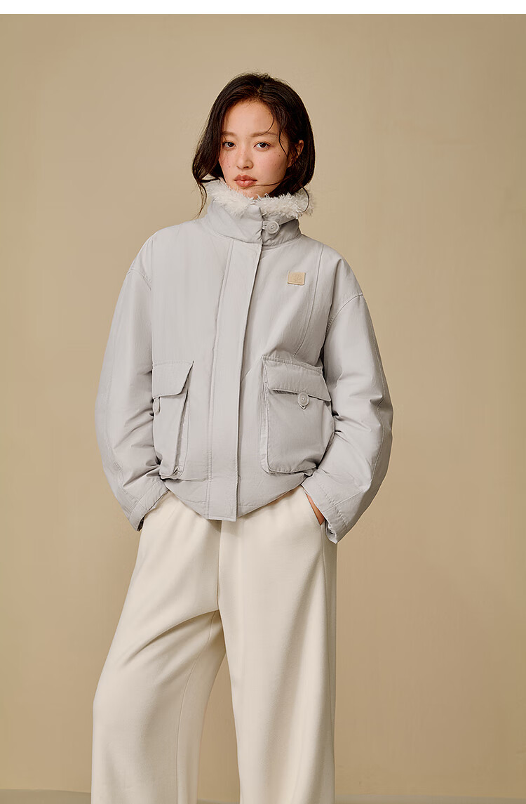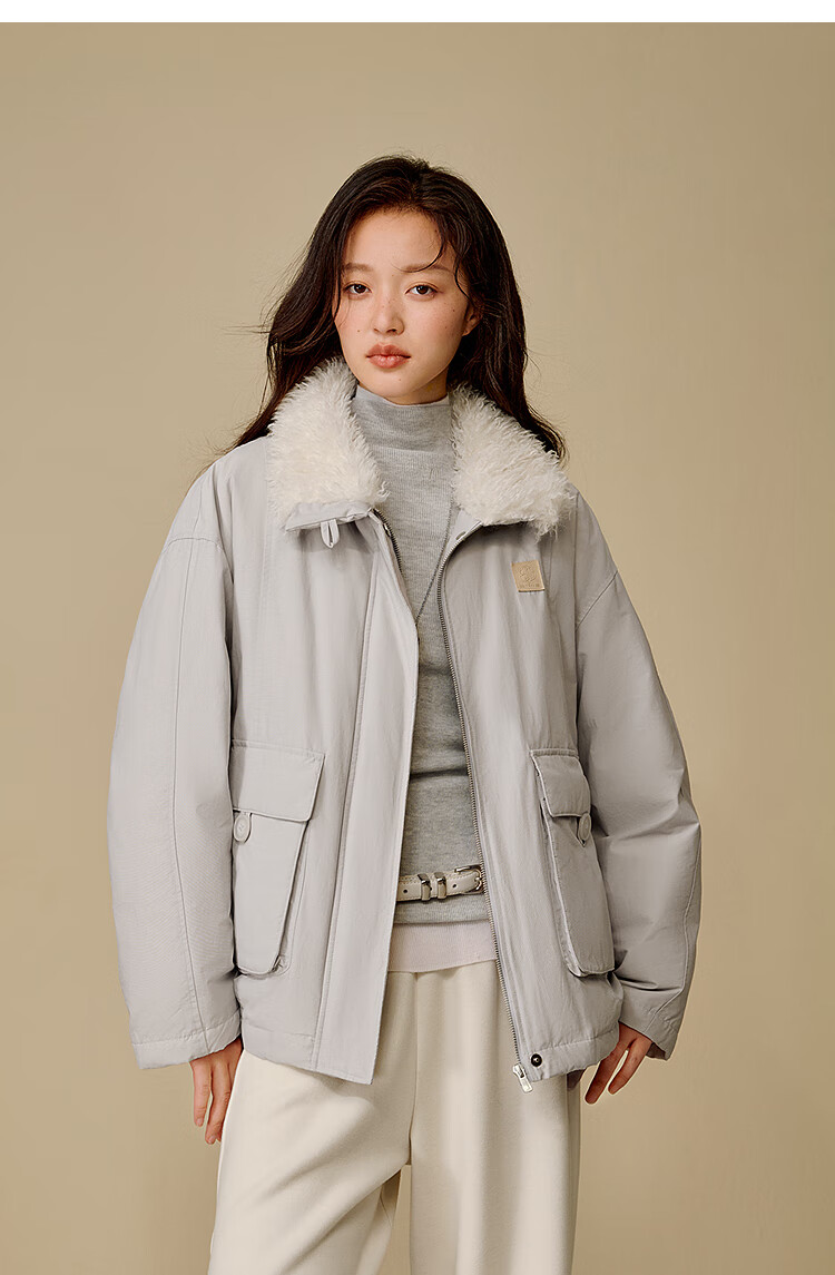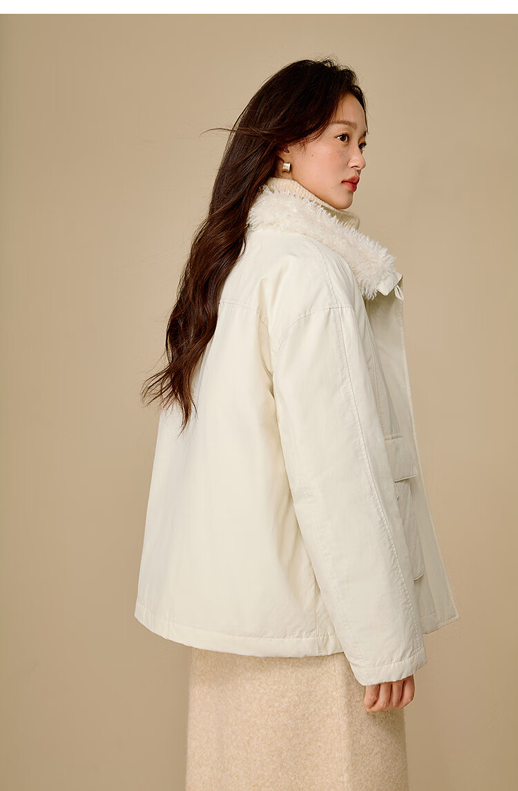 茵曼三防毛绒领工装羽绒服2025冬女装新款高充绒鸭绒外套 暖杏色 S