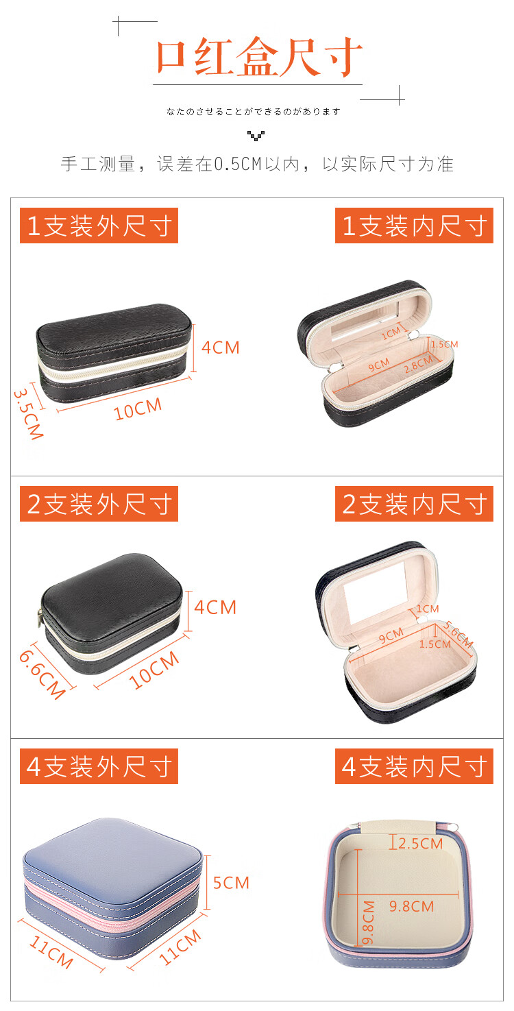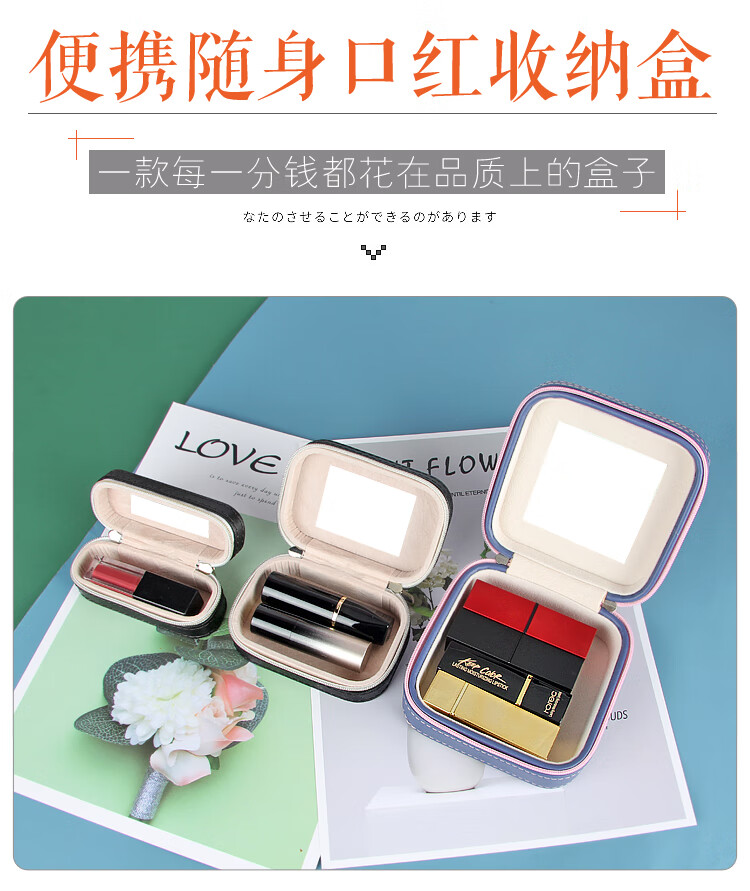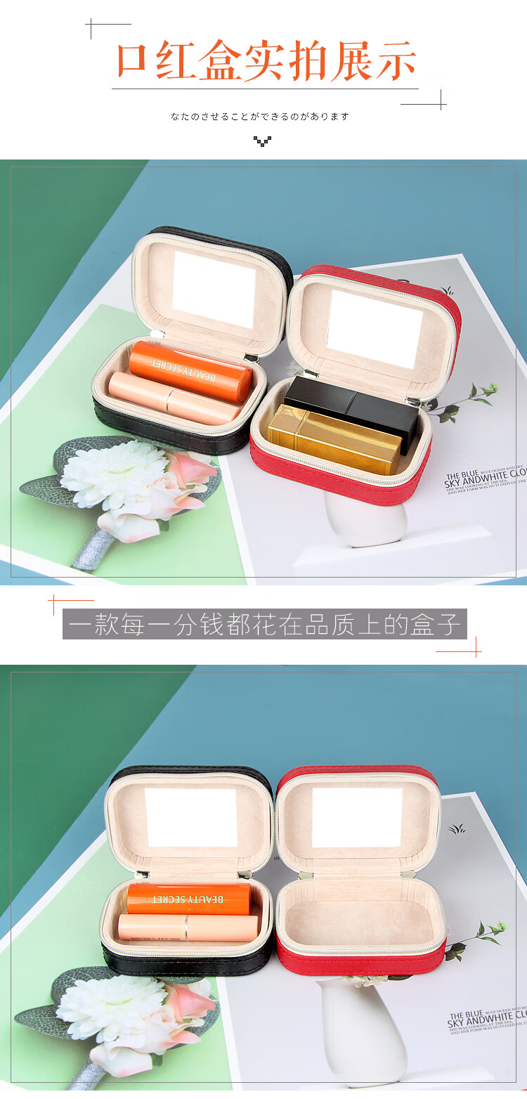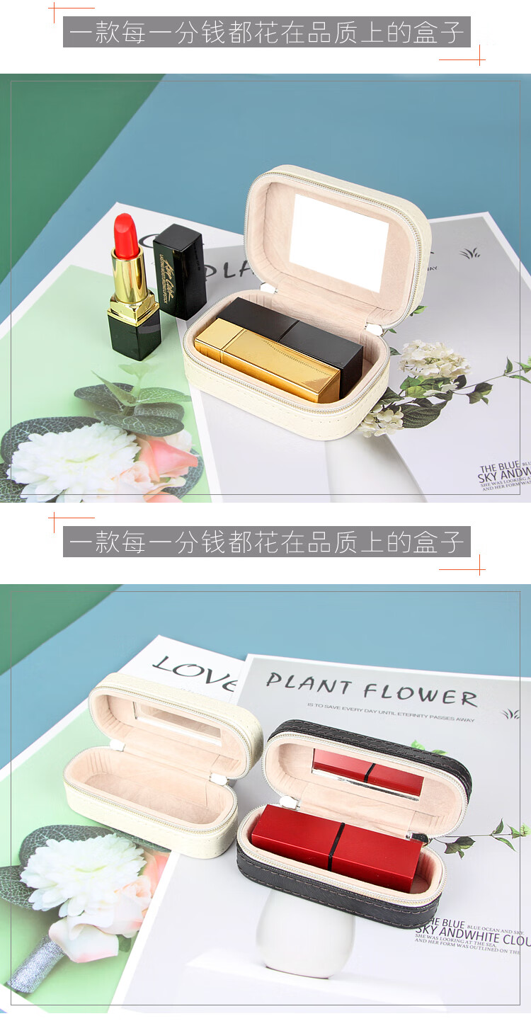 承琉便携口红盒随身口红包小巧精致唇膏唇釉收纳盒旅行化妆包带镜子2 1支装口红盒/黑色
