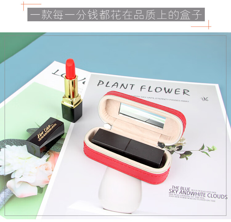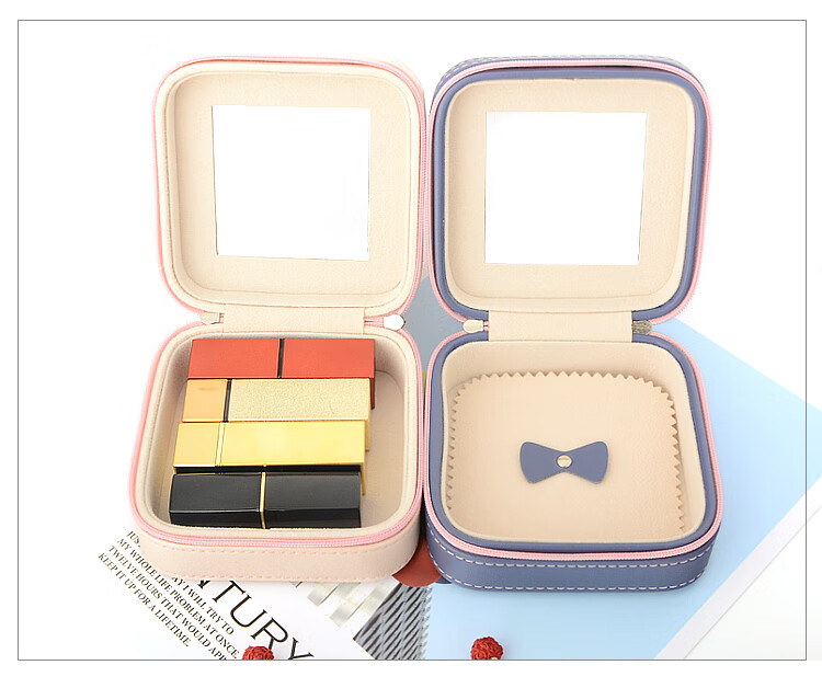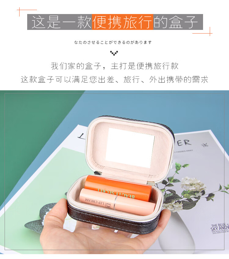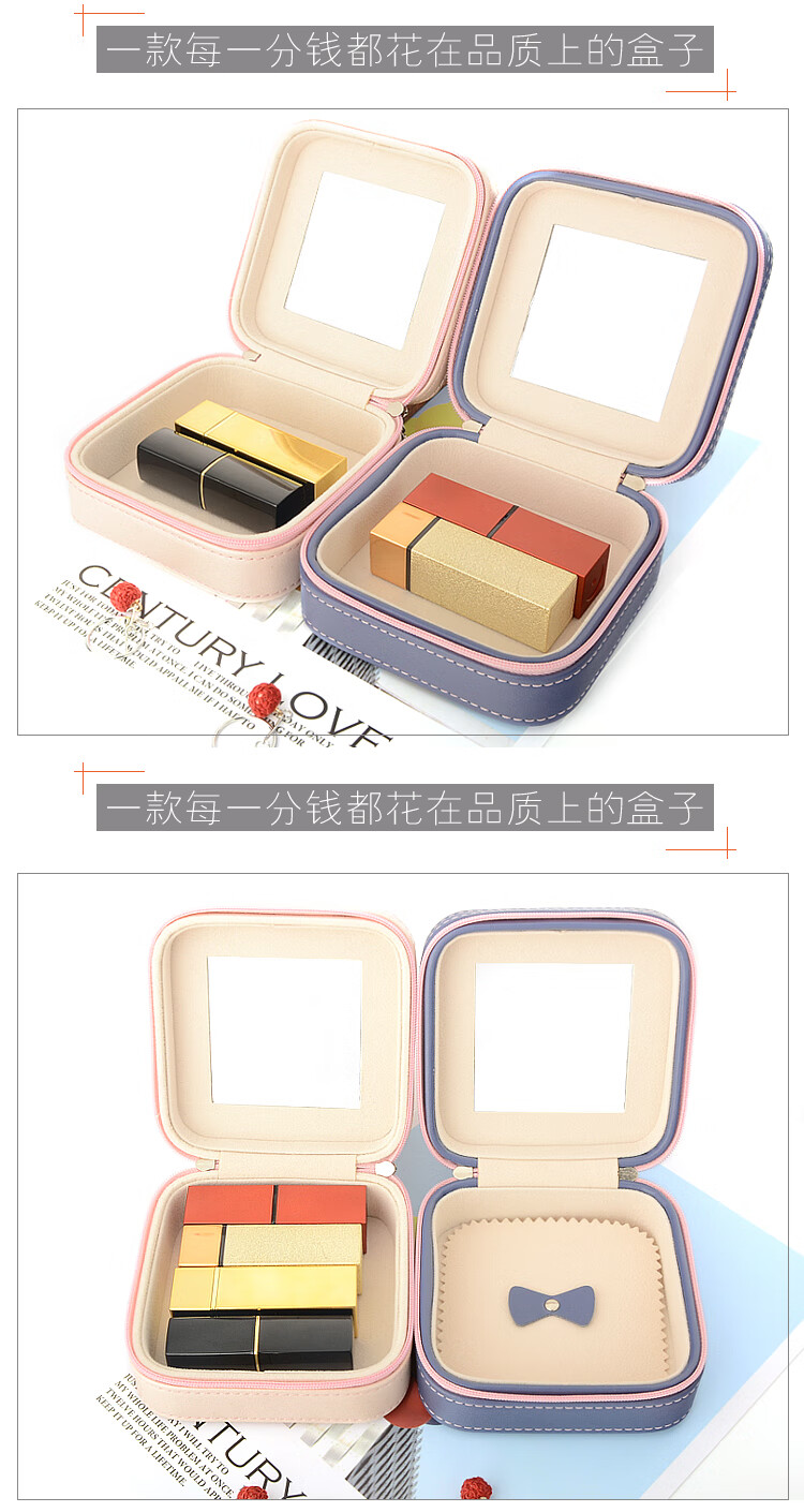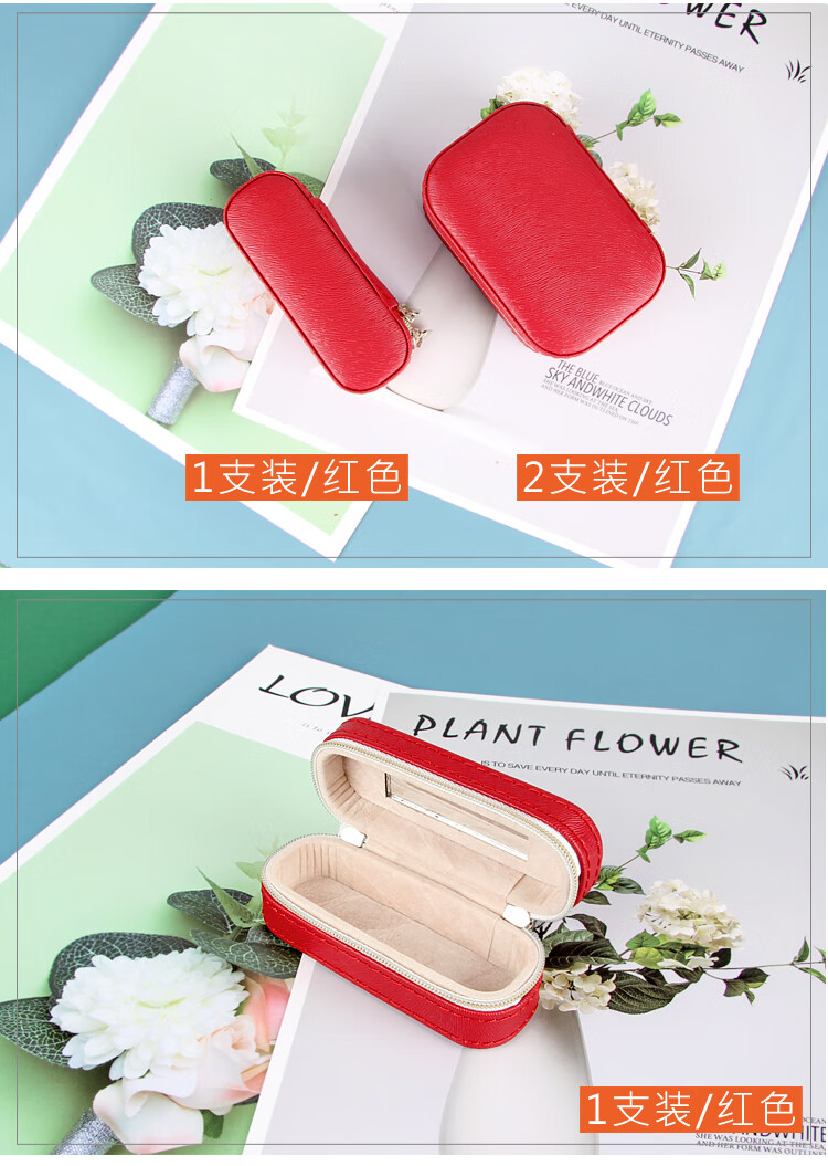 承琉便携口红盒随身口红包小巧精致唇膏唇釉收纳盒旅行化妆包带镜子2 1支装口红盒/黑色