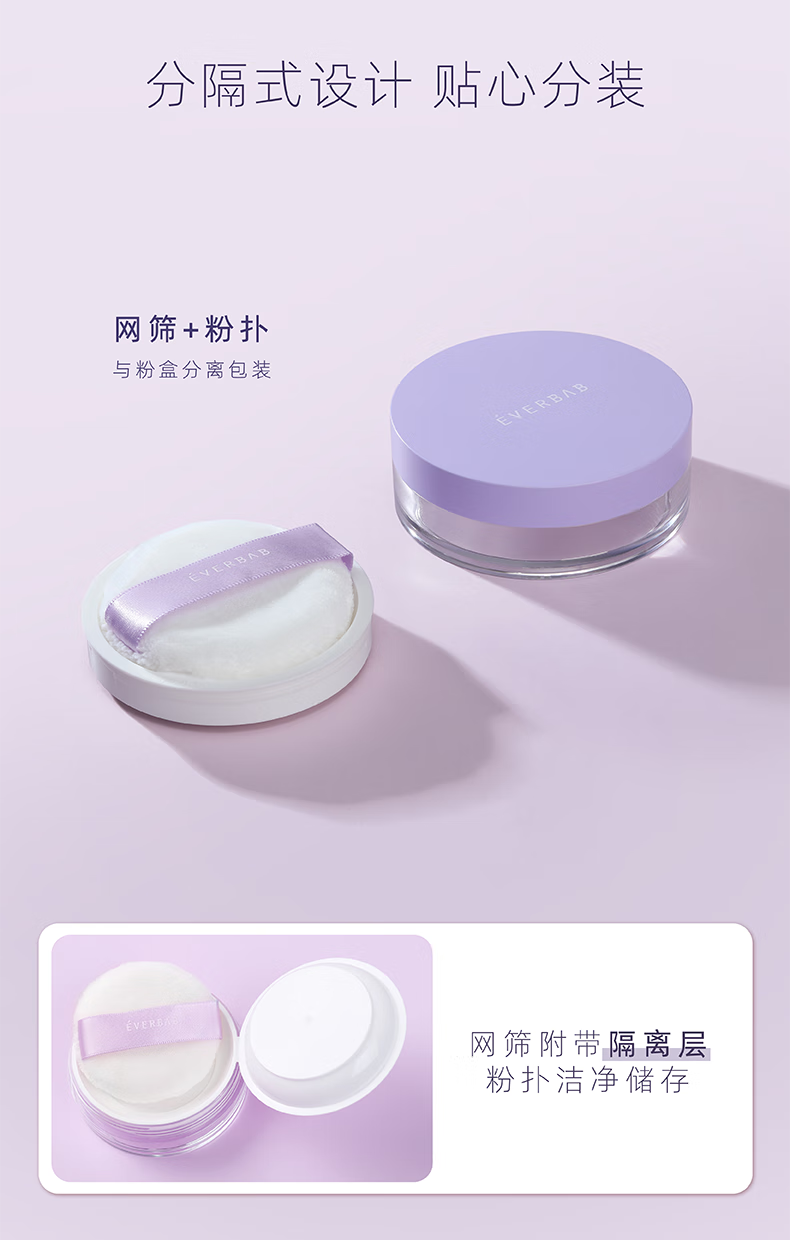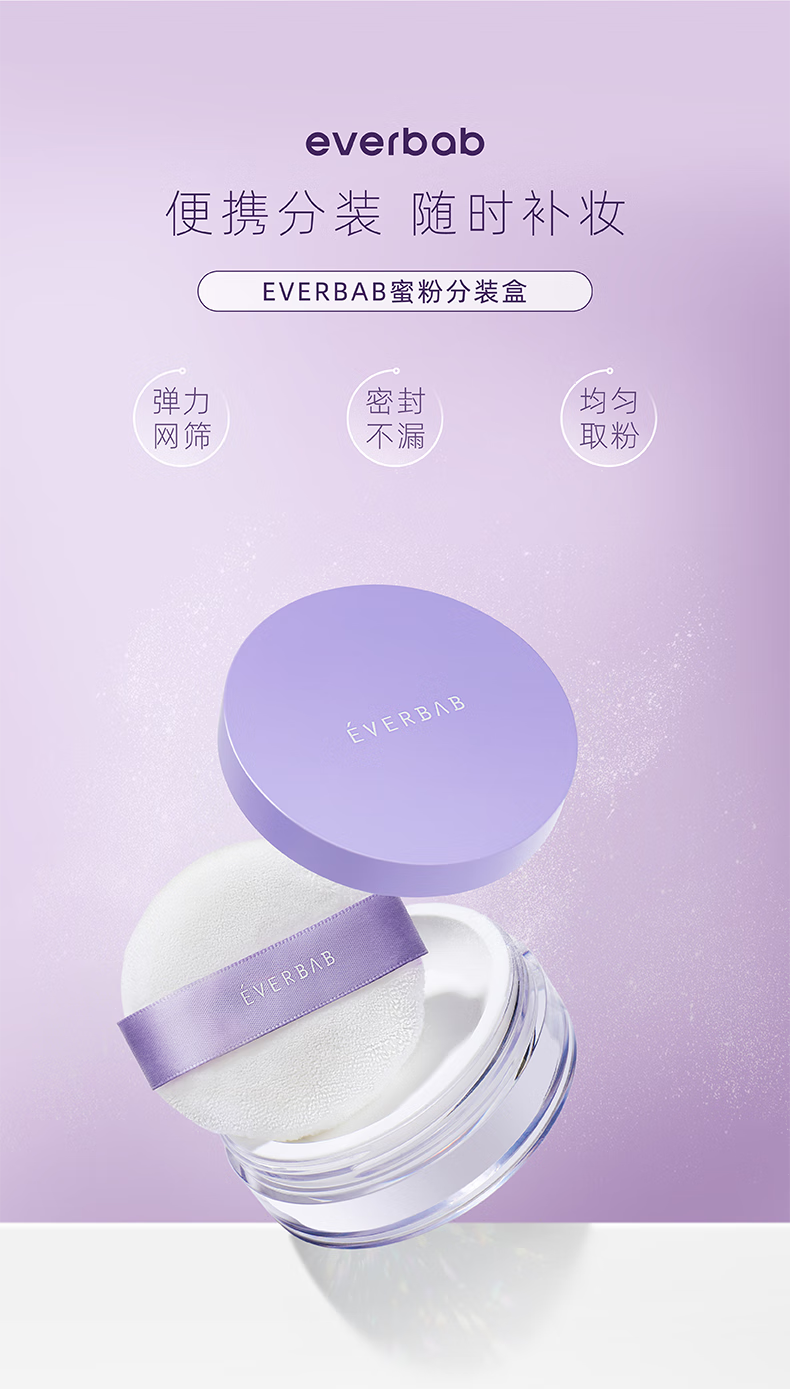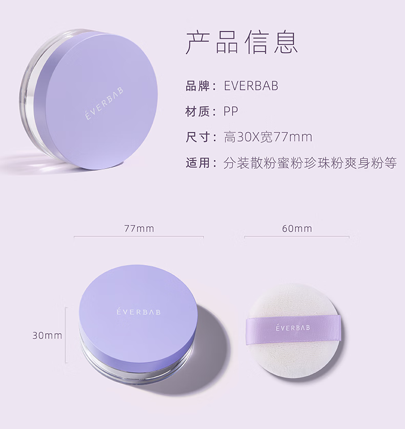 everbab胡椒粉散粉分装盒子空盒带粉扑收纳便携补妆蜜粉女 粉盒 1件