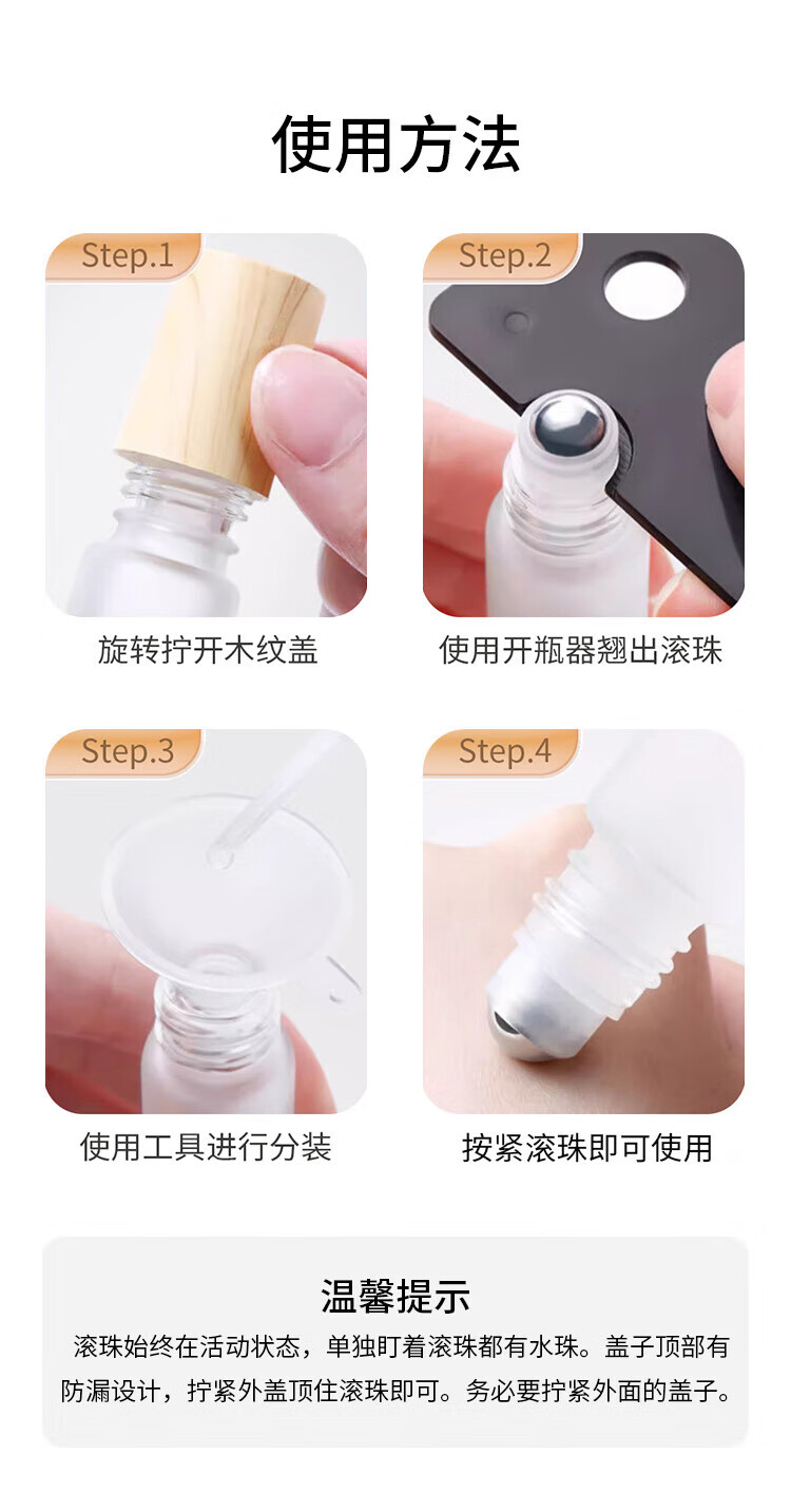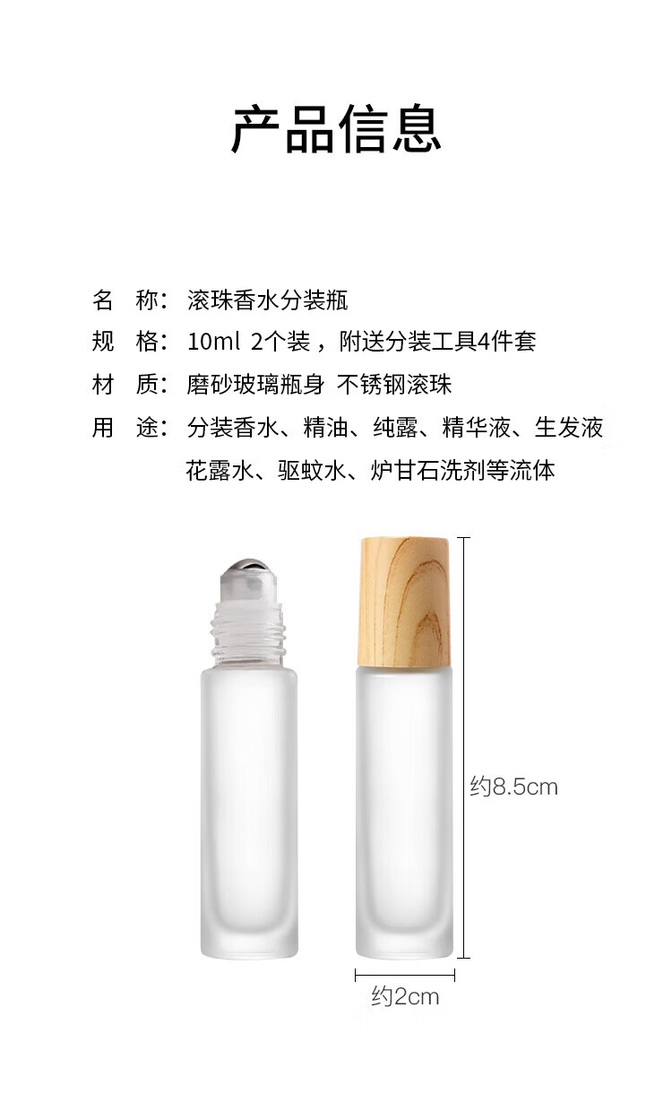 简应舒 滚珠香水分装瓶玻璃10ml*2个 唇油花露水走珠器高档精油空瓶