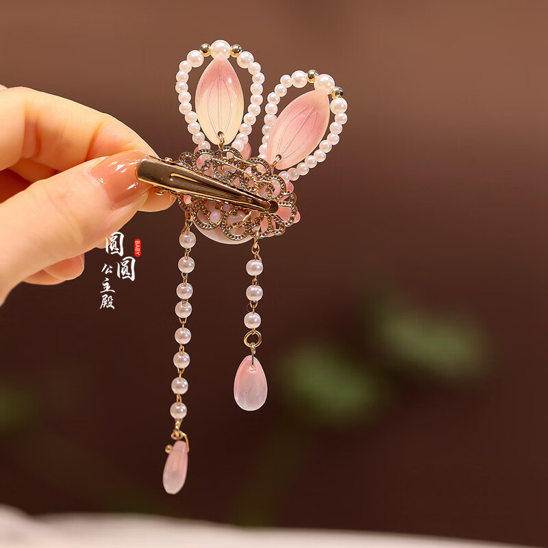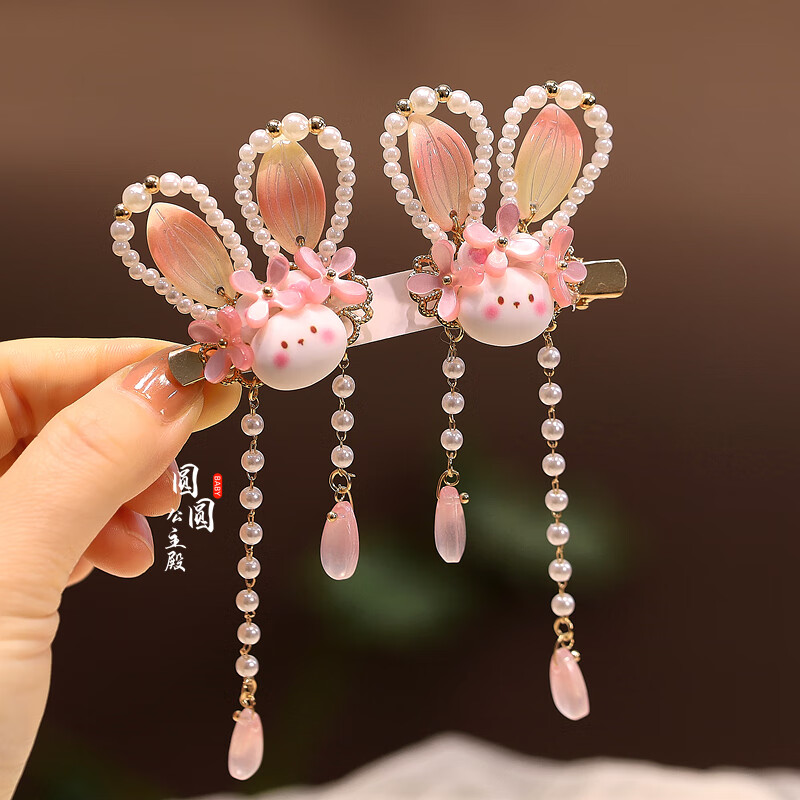NIANFIN儿童古风发饰珍珠兔子国风中式儿童新年发夹宝宝古风流苏头饰