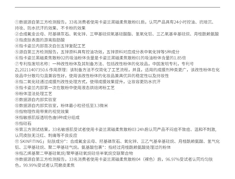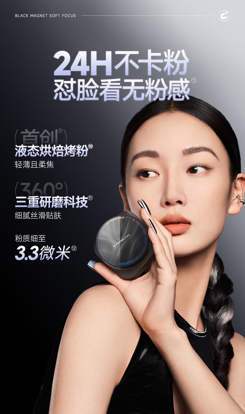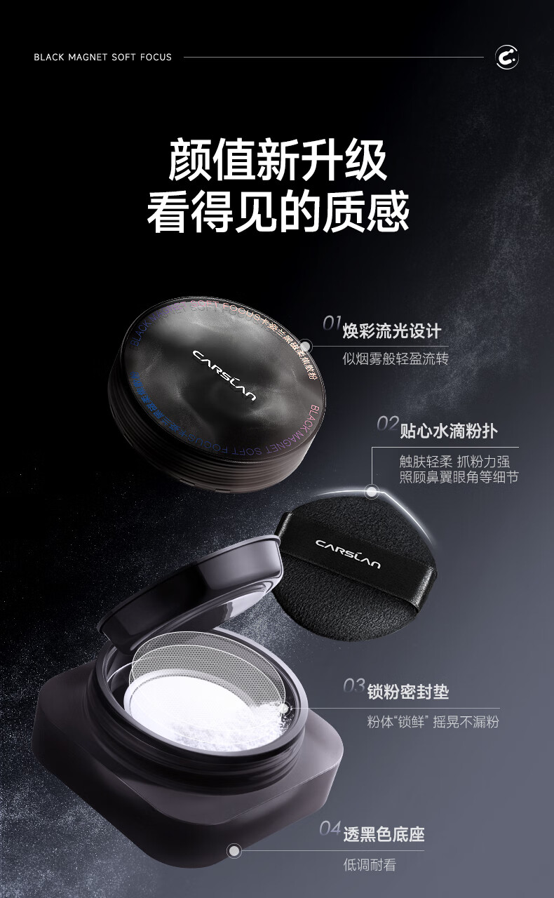 卡姿兰(Carslan)黑磁散粉定妆蜜粉饼(2.0透明色)8g控油遮瑕持久防汗不脱 新年礼物