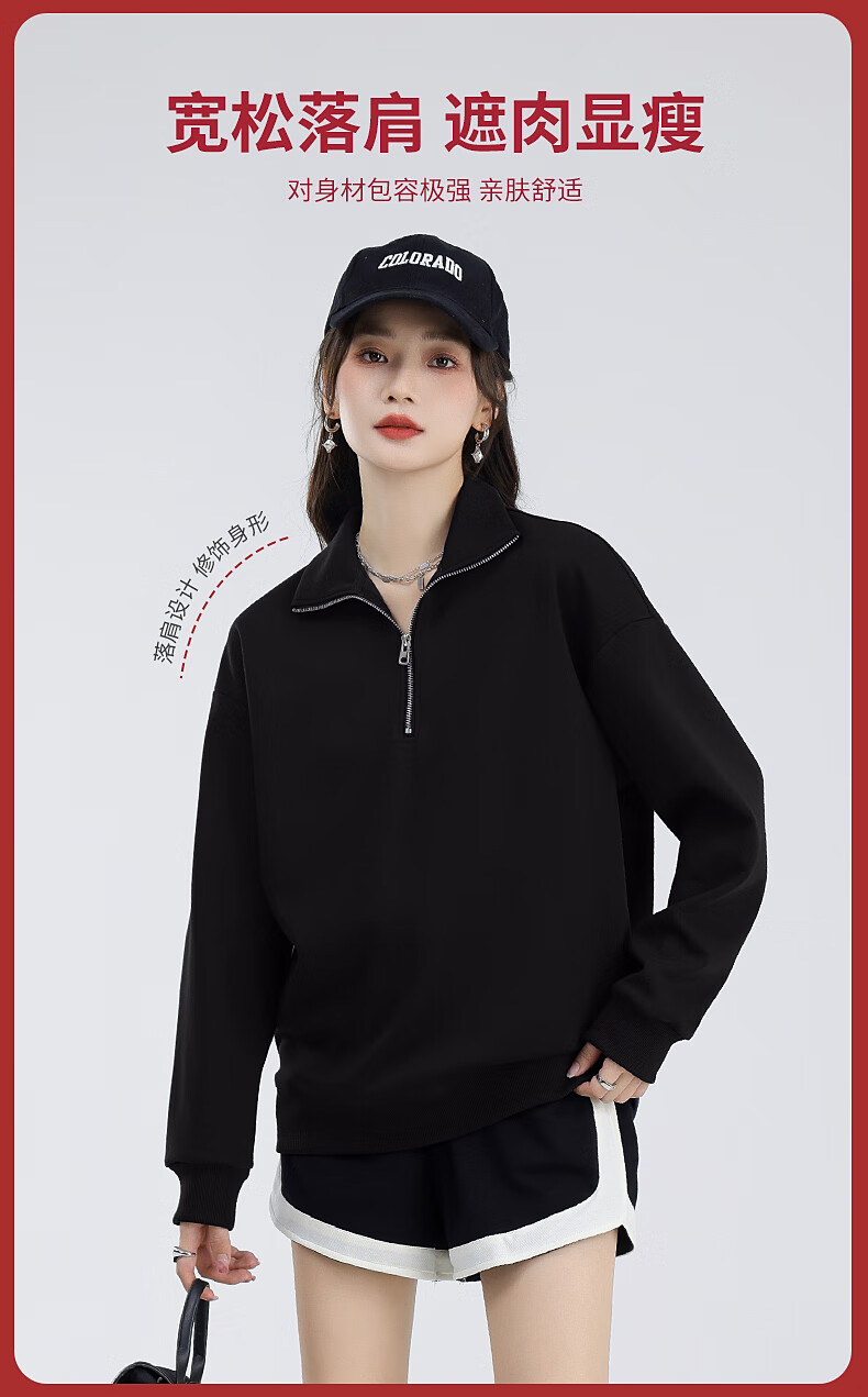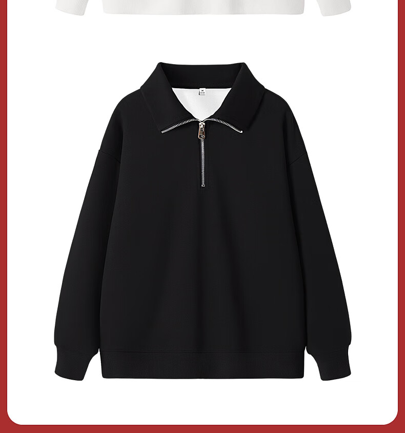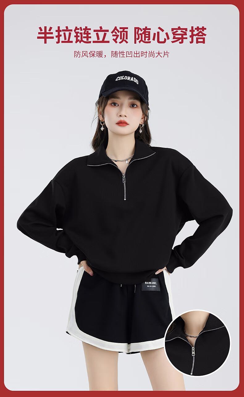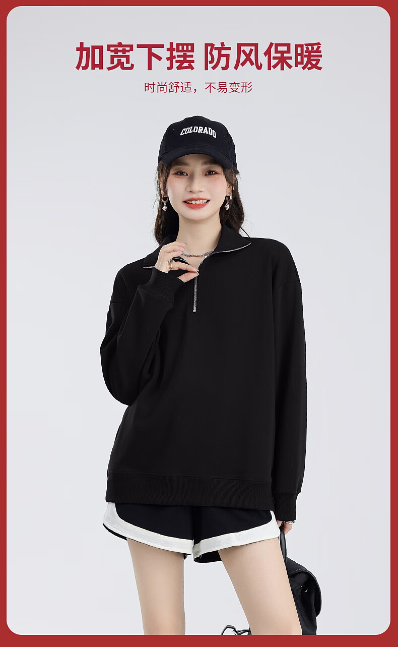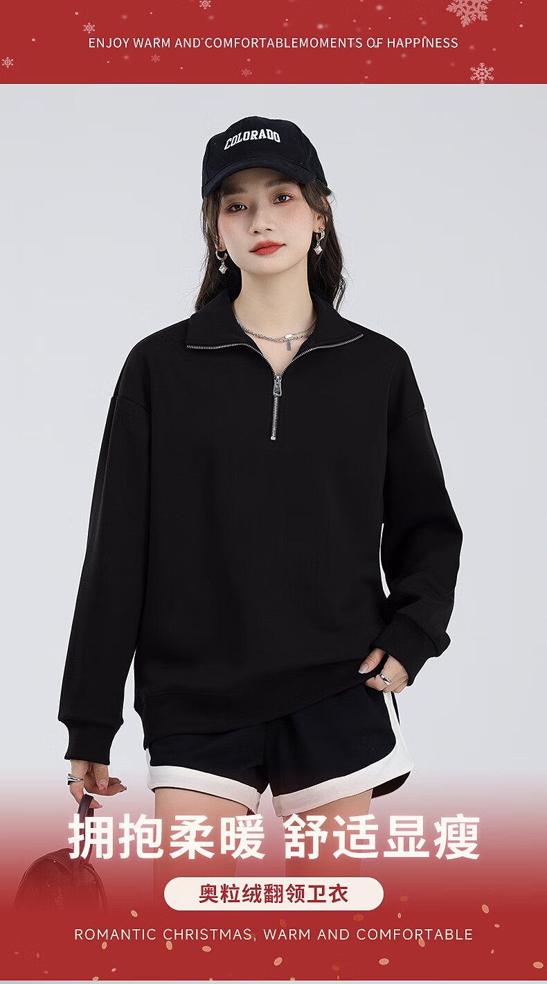 回力(Warrior)加绒翻领卫衣女装加厚保暖重磅奥粒绒半拉链立领防风设计显瘦宽松 黑#WS幸运天使白K L