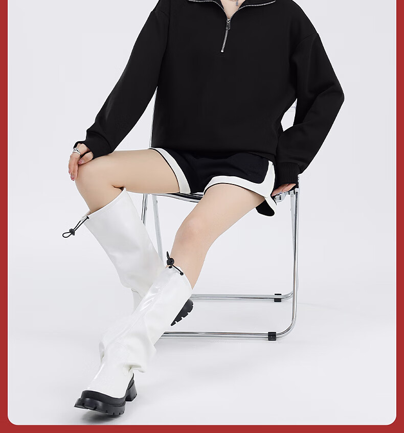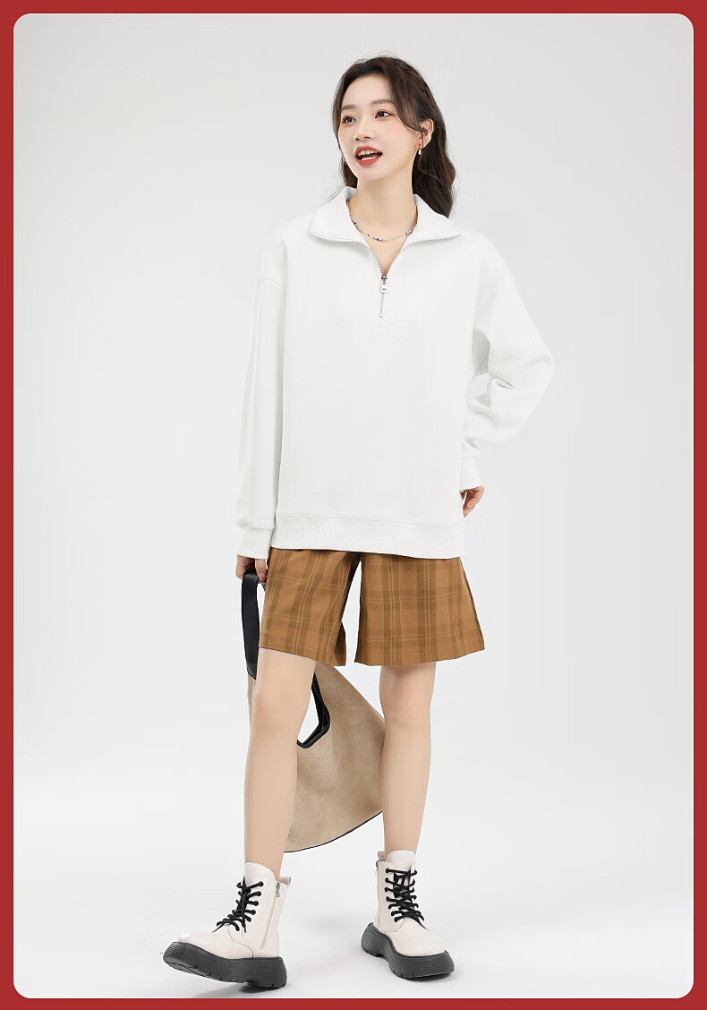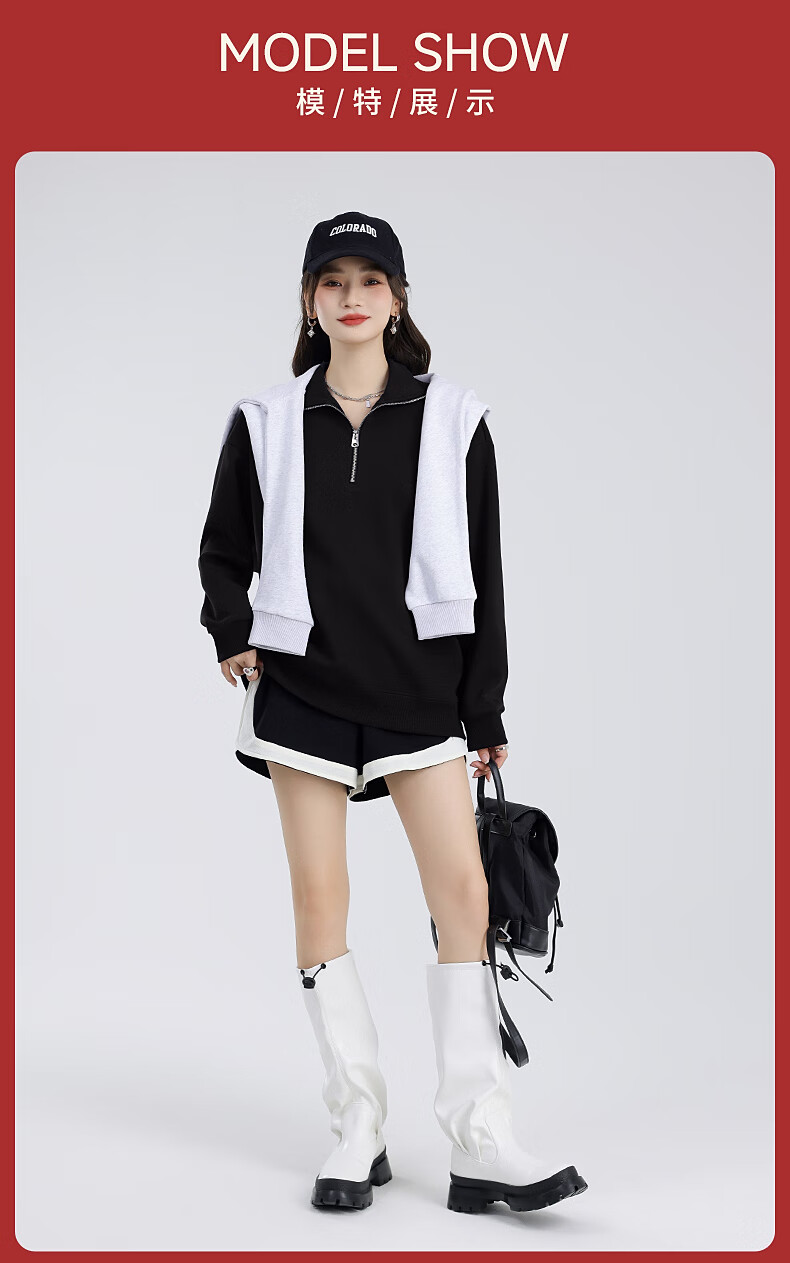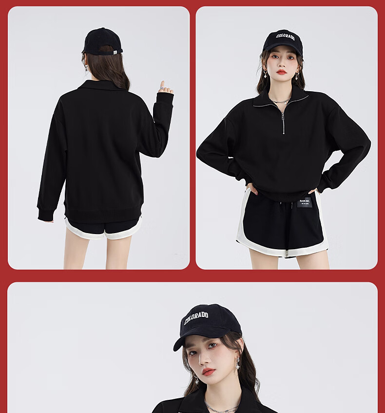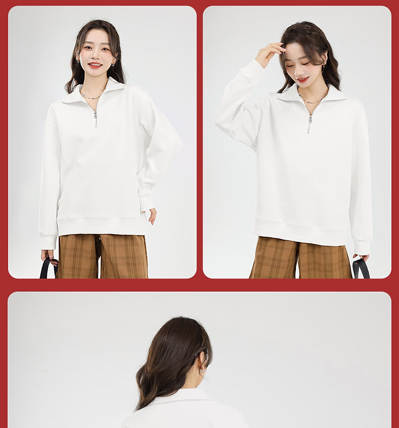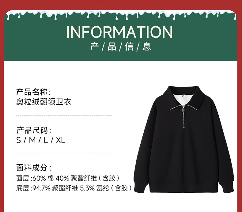 回力(Warrior)加绒翻领卫衣女装加厚保暖重磅奥粒绒半拉链立领防风设计显瘦宽松 黑#WS幸运天使白K L