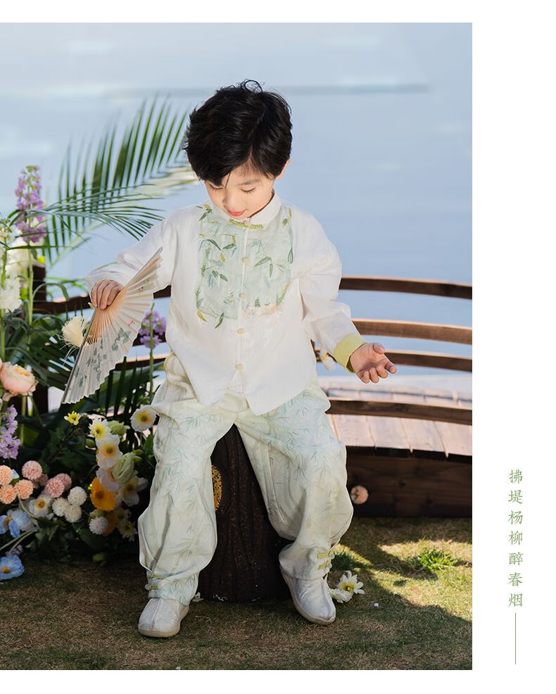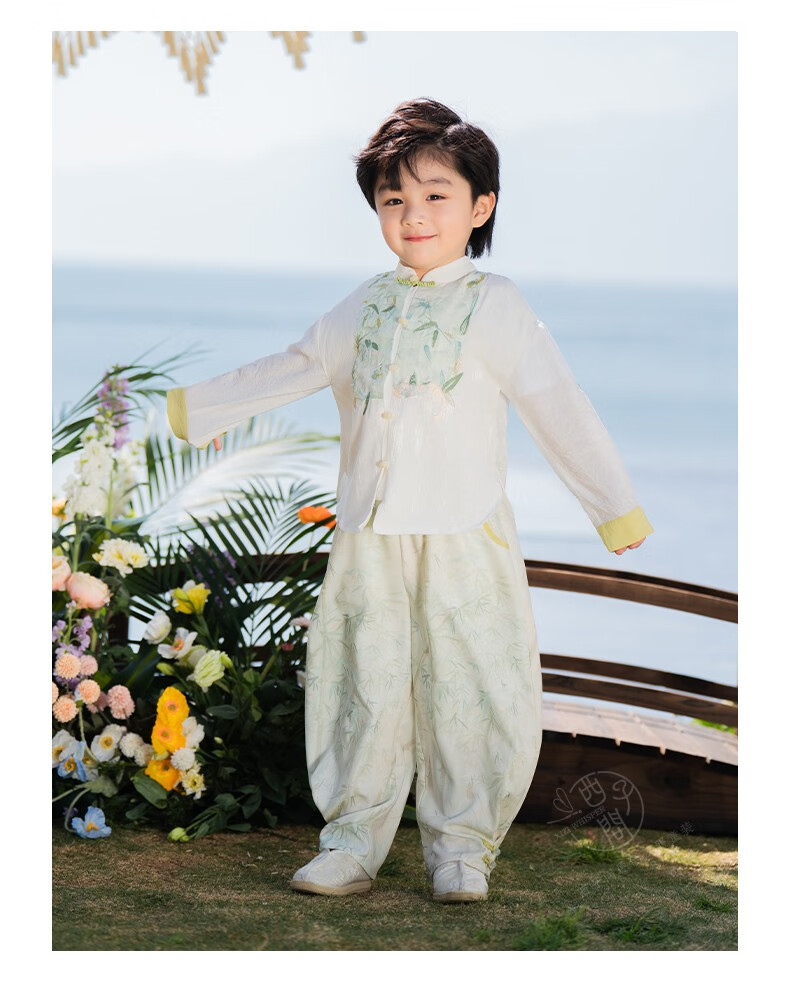 西子问汉服【琅轩】新中式秋季中国风男童改良汉服童装套装 琅轩-套装 90